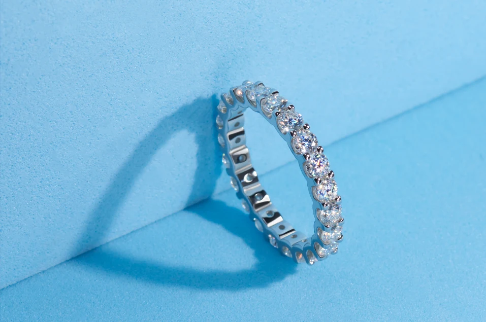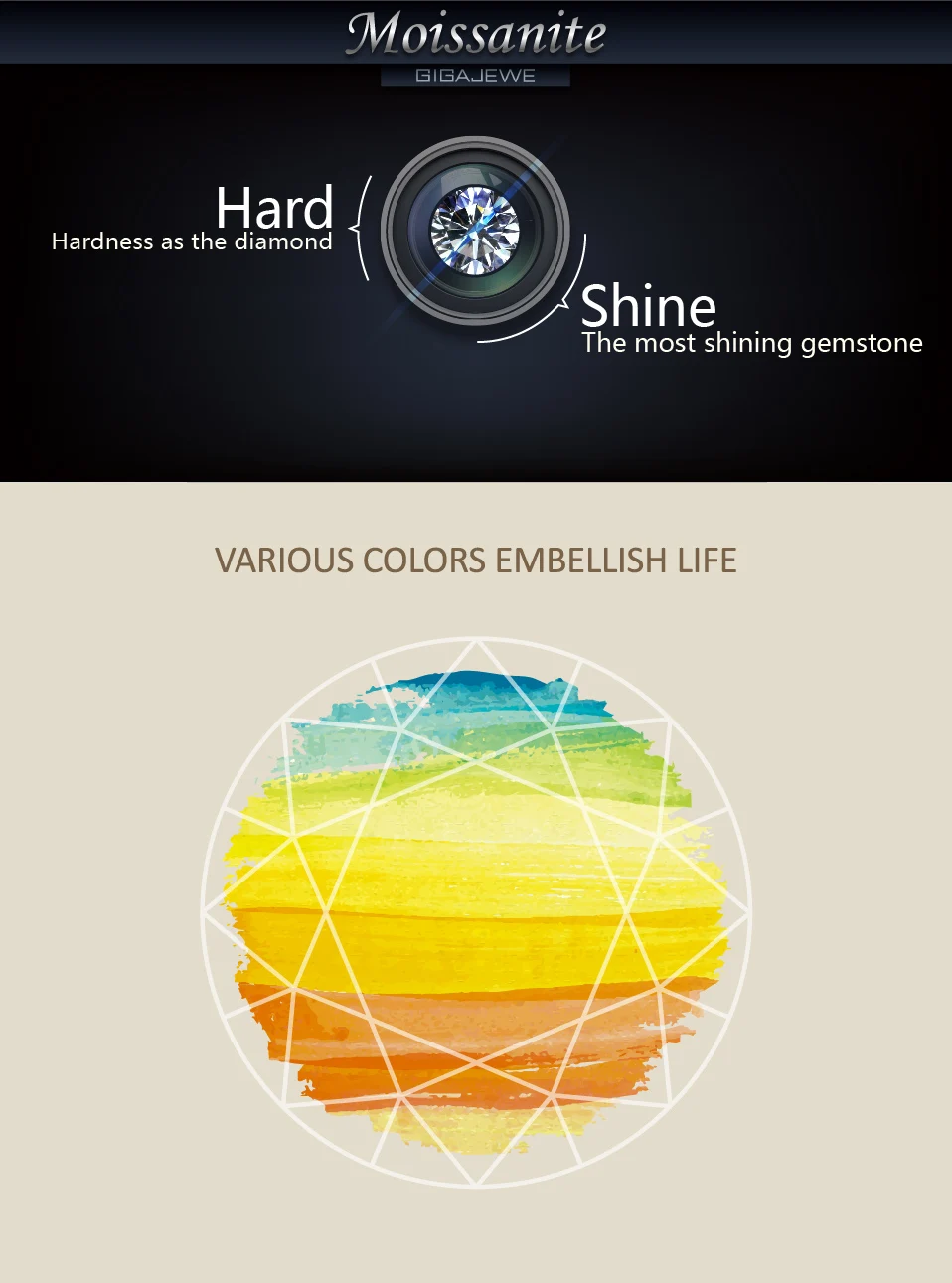 Moissanite is a new type of material, It has a hardness like diamond, is not easy to wear and tear, and shines permanently.