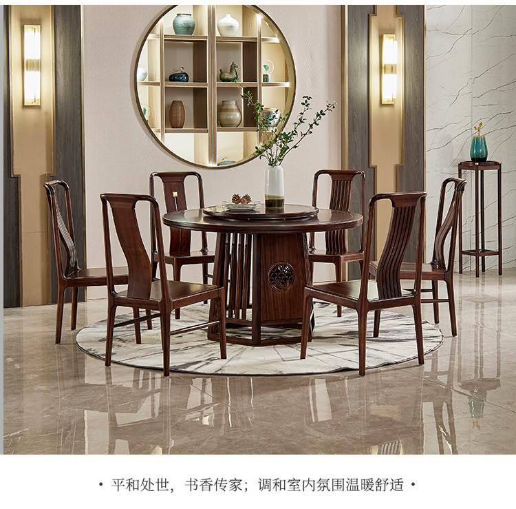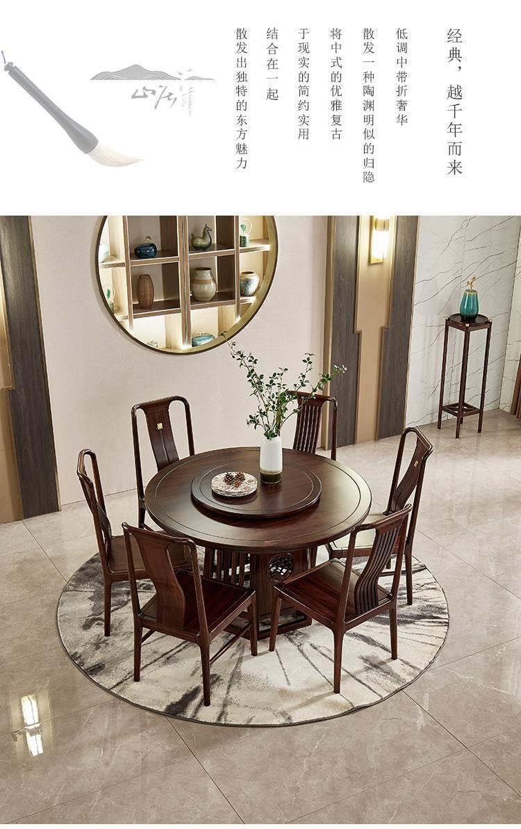 Gió cá quy mô bàn ăn phong cách Trung Quốc mới bằng gỗ mun tròn gỗ mun bàn ăn gia đình một bàn sáu ghế nội thất nhà hàng kết hợp – Bàn ăn nhập khẩu cao cấp