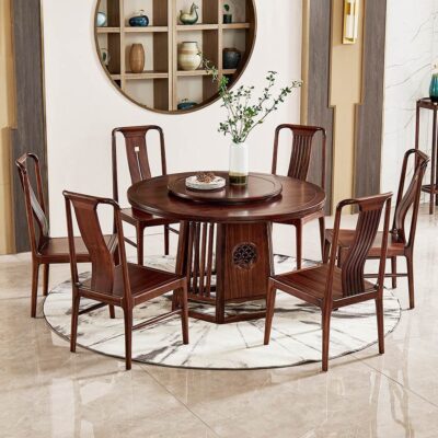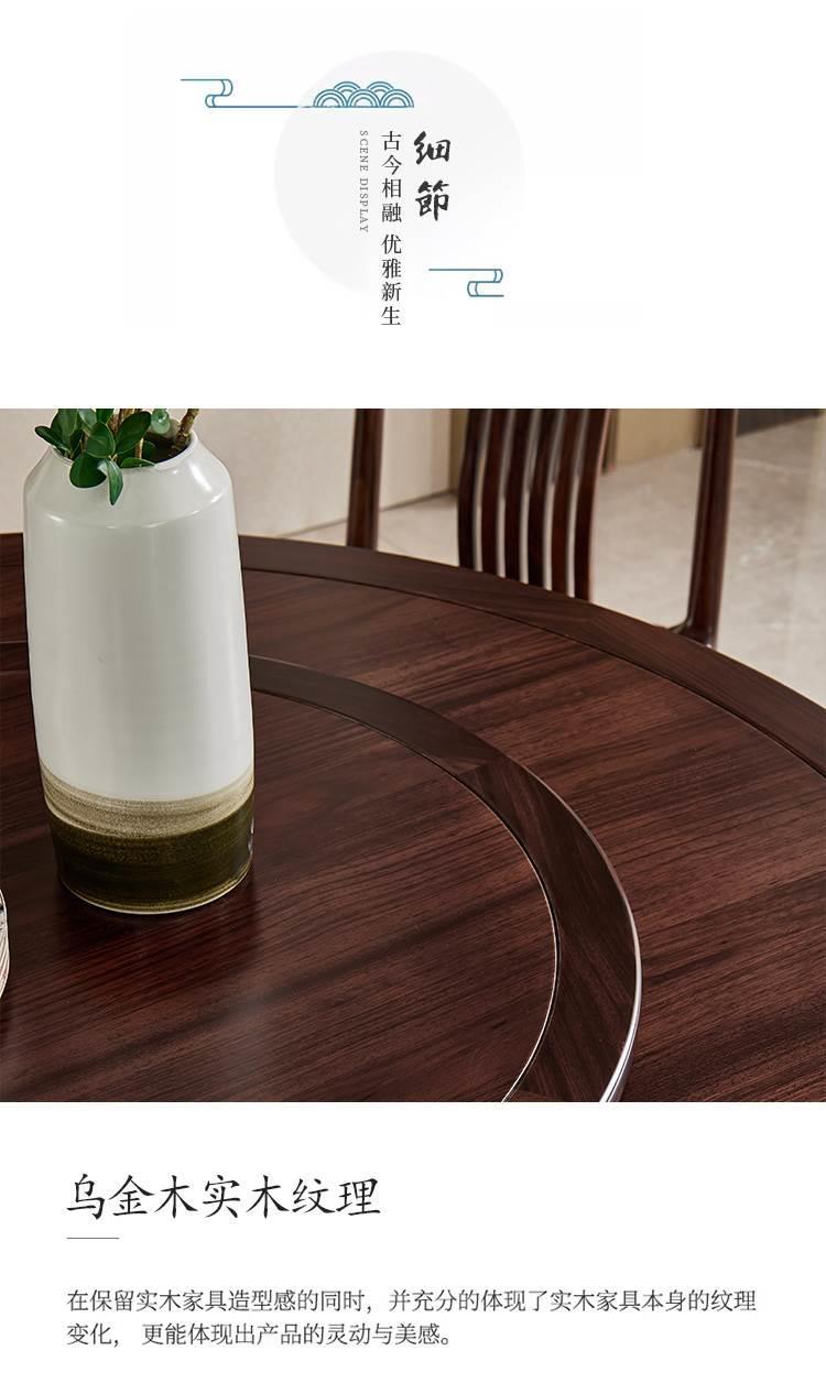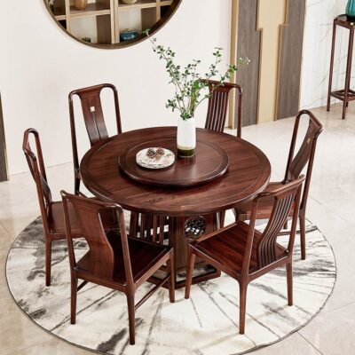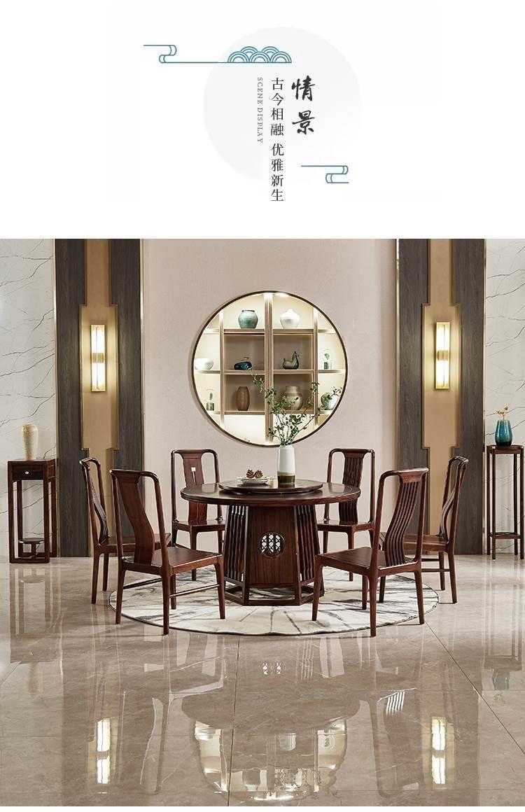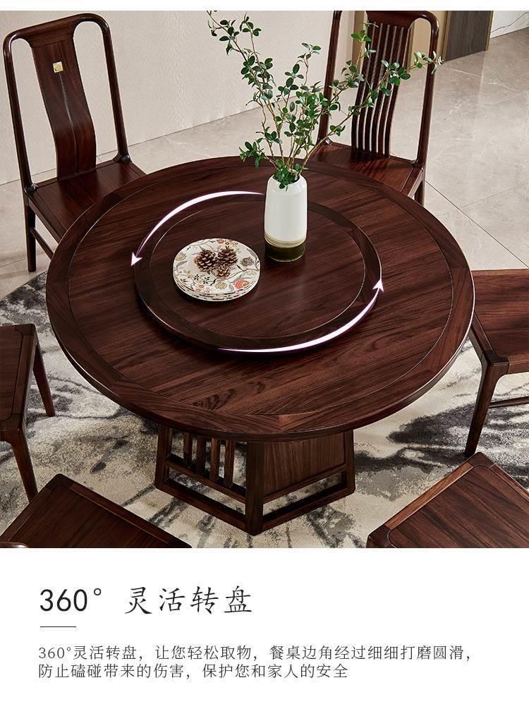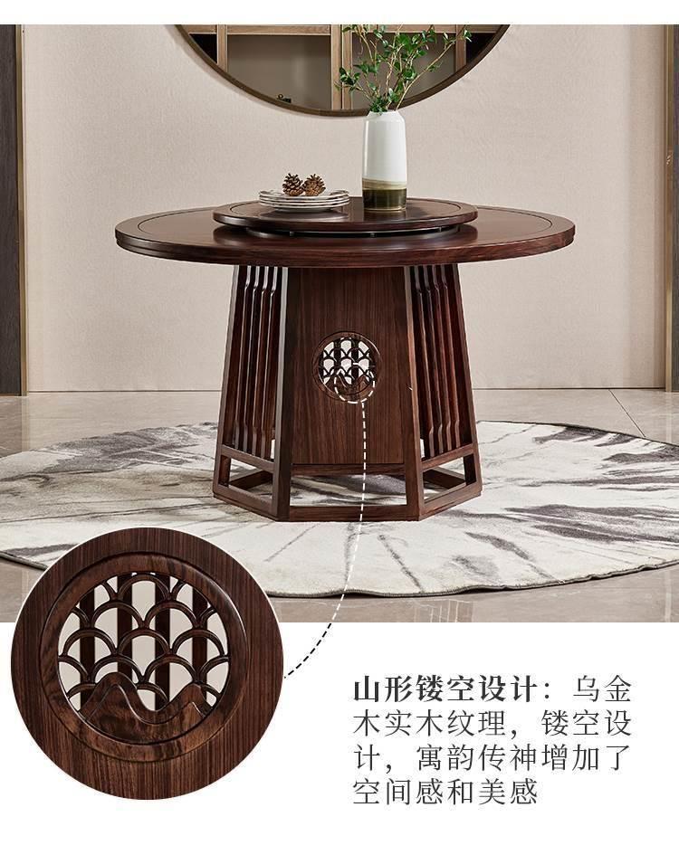 Gió cá quy mô bàn ăn phong cách Trung Quốc mới bằng gỗ mun tròn gỗ mun bàn ăn gia đình một bàn sáu ghế nội thất nhà hàng kết hợp là sản phẩm nổi bật trong dòng bàn ăn nhập khẩu, thiết kế hiện đại và sang trọng, phù hợp với nhiều không gian nội thất cao cấp.