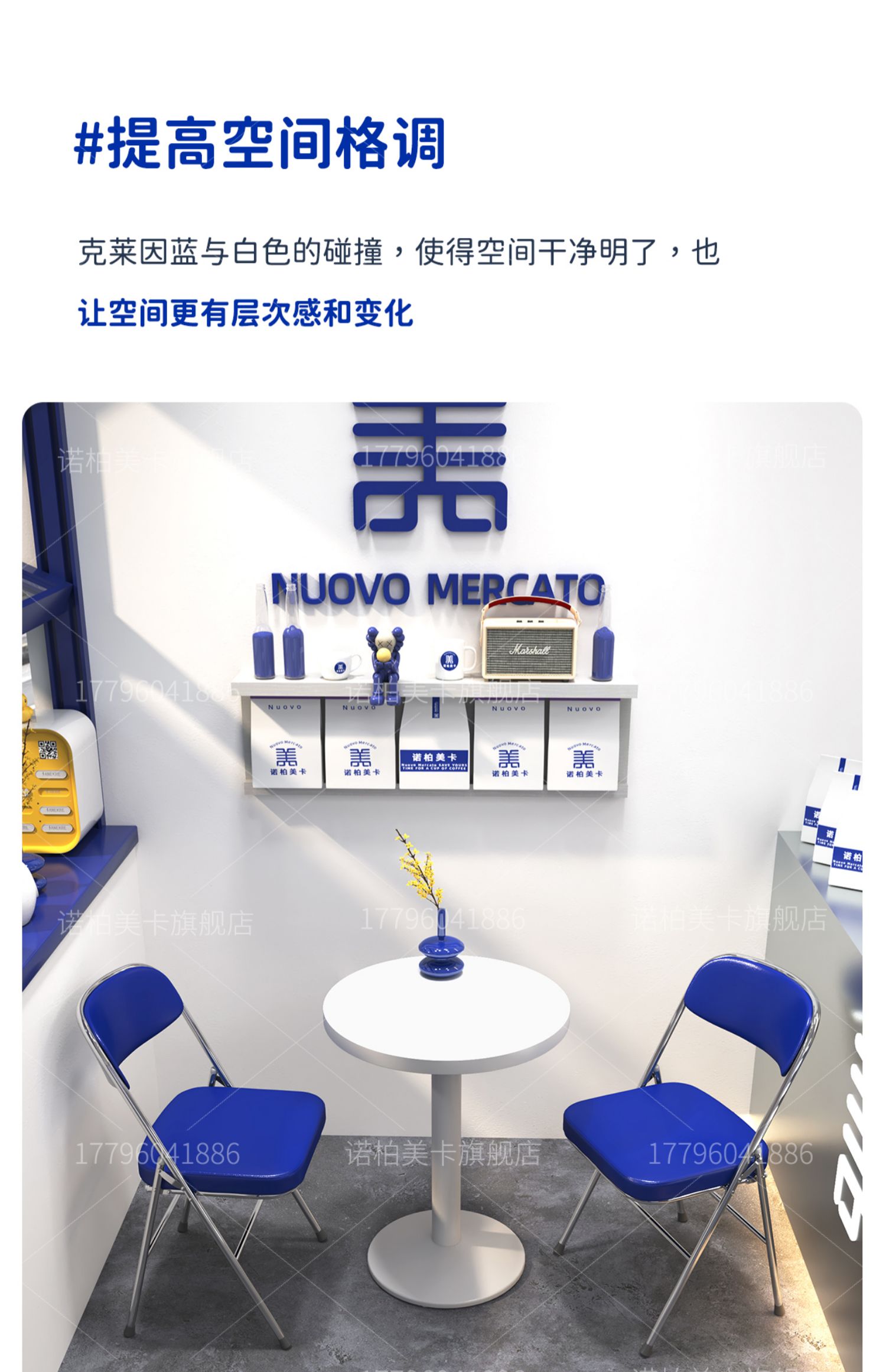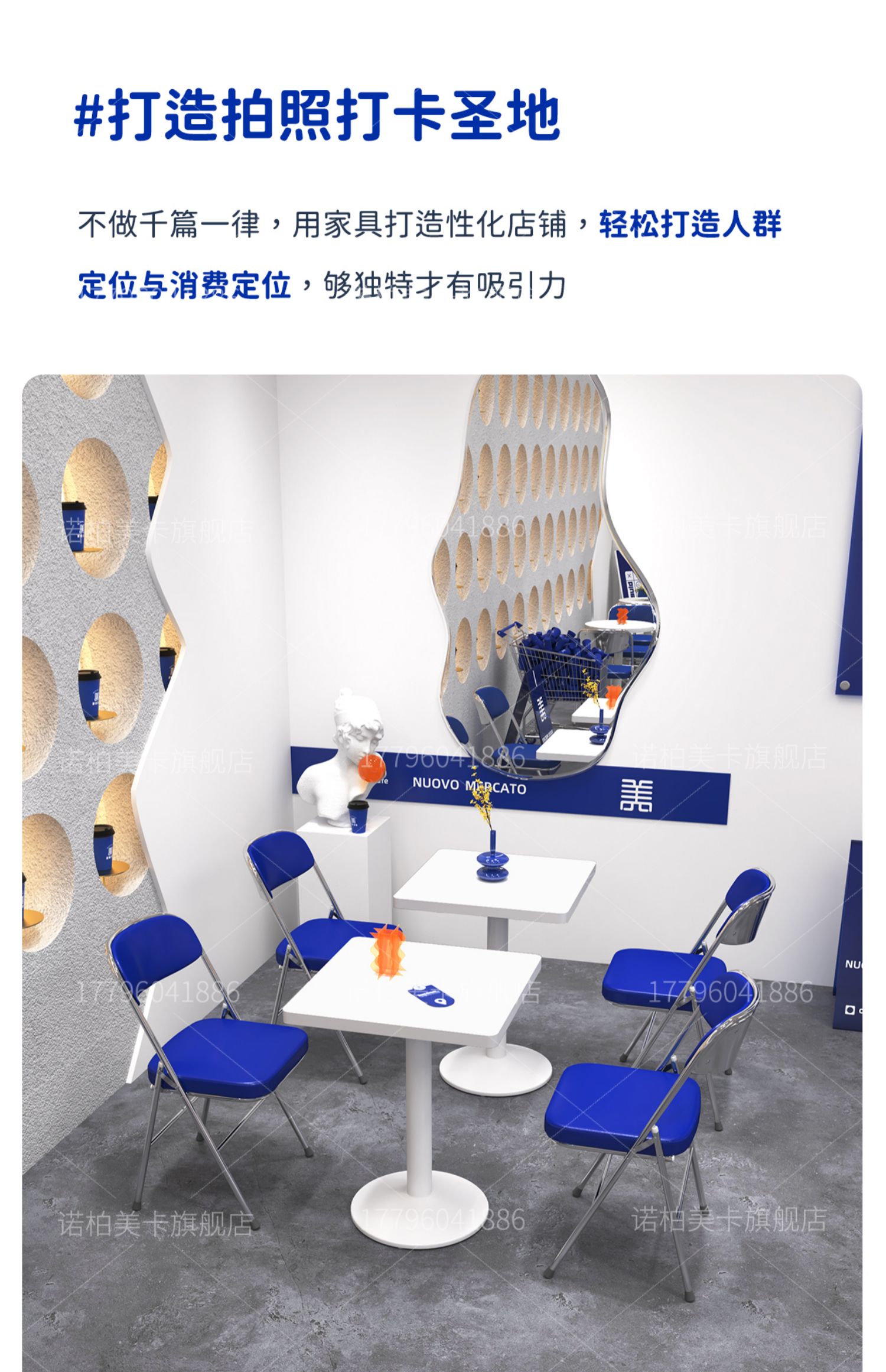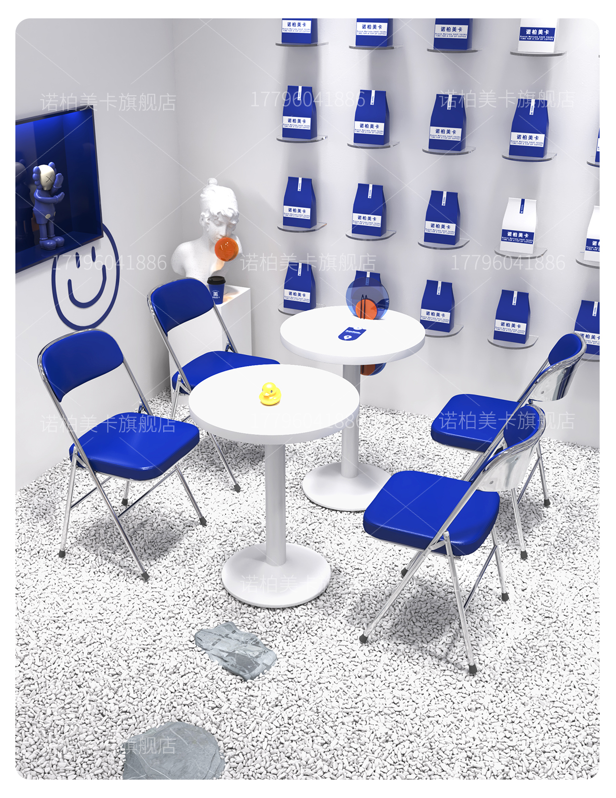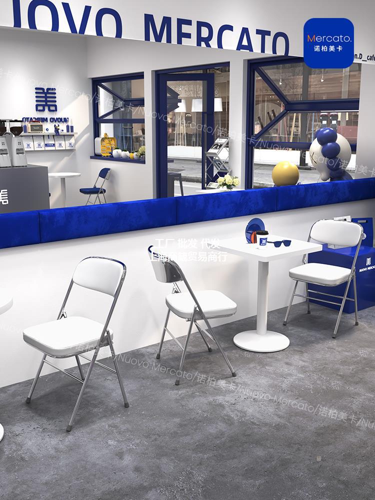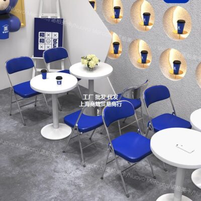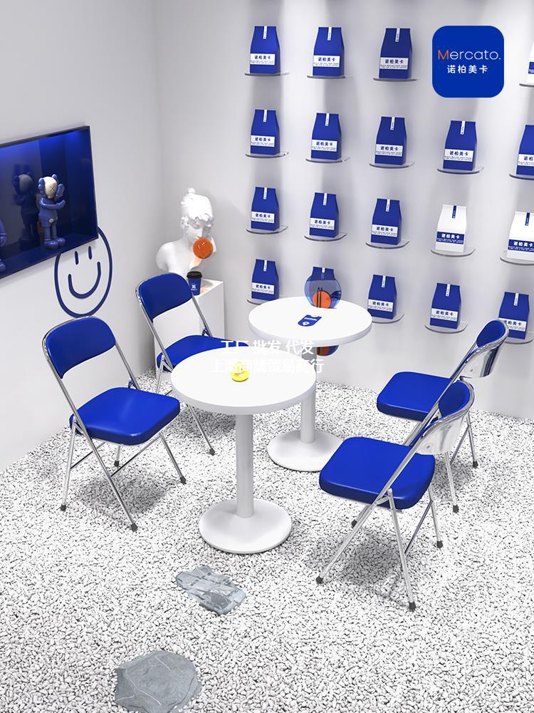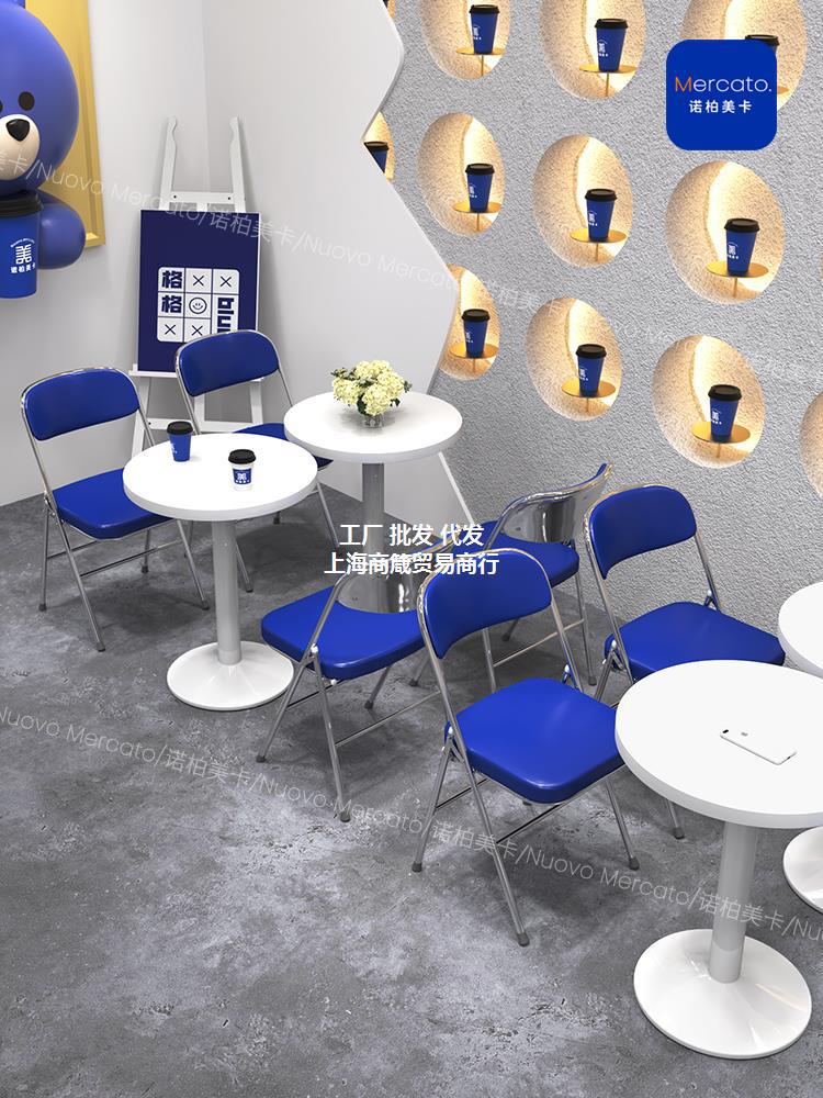 Gió Công Nghiệp Klein Màu Xanh Lưng Ghế Trà Sữa Cửa Hàng Tráng Miệng Màu Trắng Bàn Tròn Nhỏ Cafe Bàn Ghế Kết Hợp Thương Mại