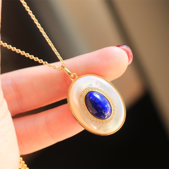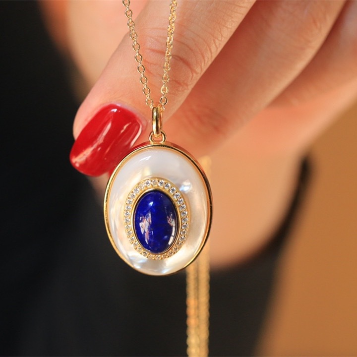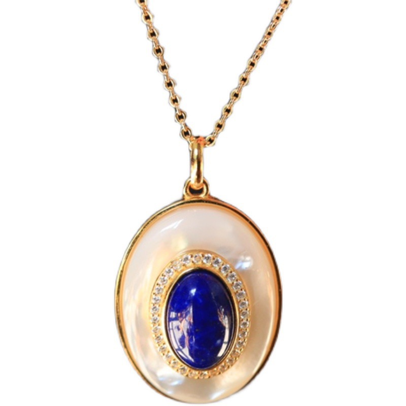 Gió lạnh phù hợp với phong cách cổ điển Pháp khí chất thời trang cá tính thường xuyên chuỗi khảm đá lapis lazuli mặt hình bầu dục vòng cổ nữ