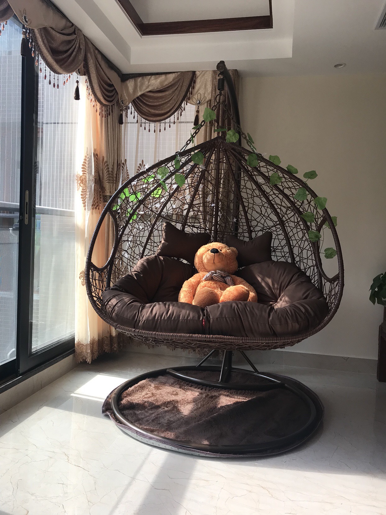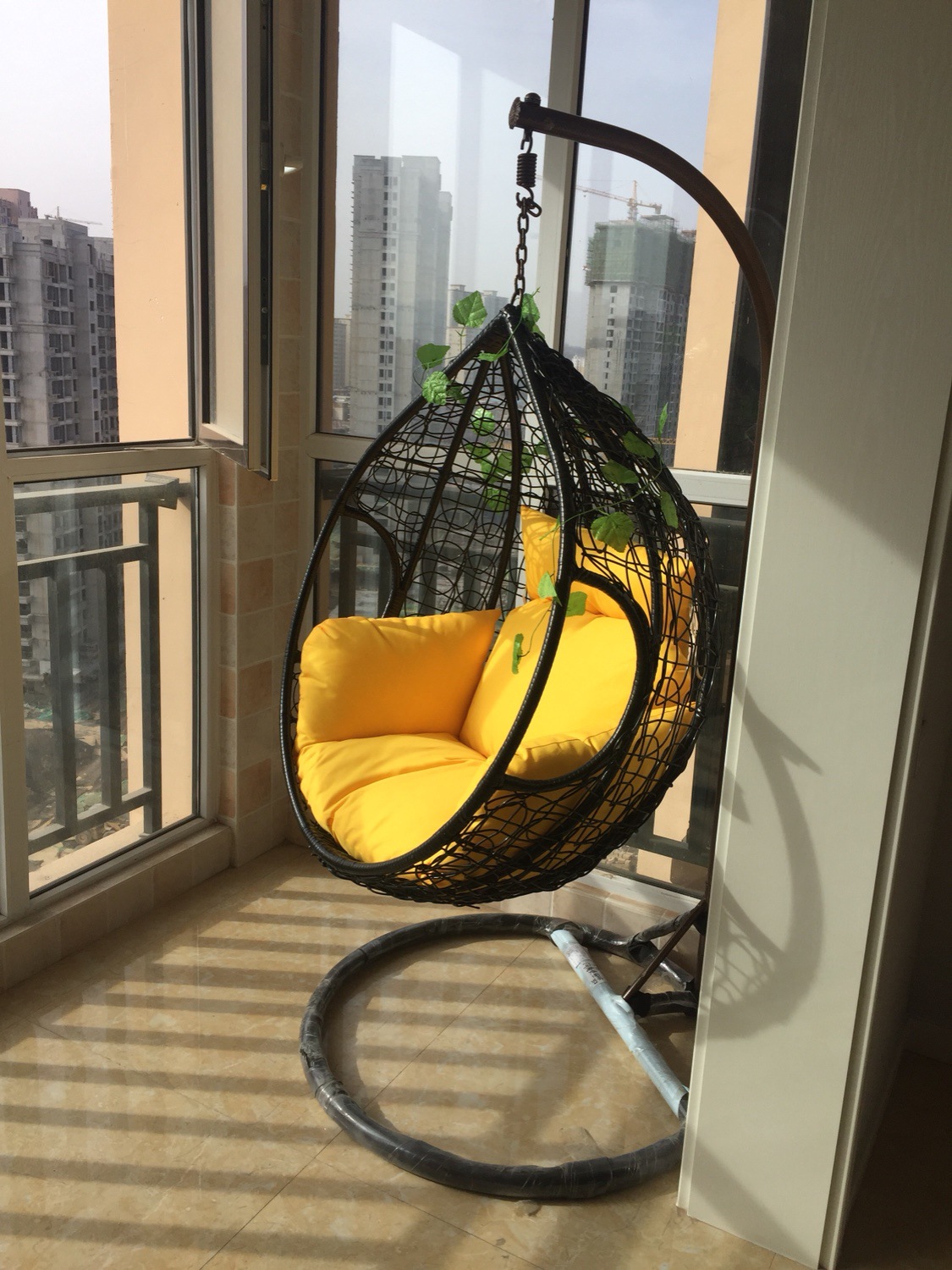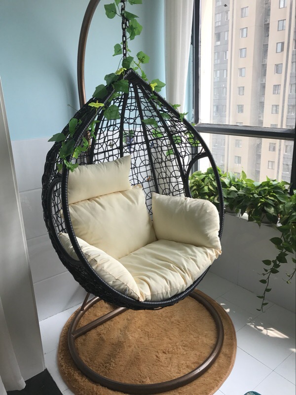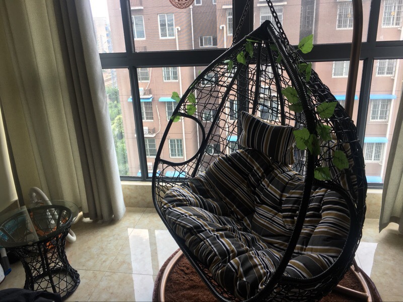 [宝贝用料]吊篮采用PE仿藤制造(非真藤),PE仿藤坚韧饱满,较之天然藤条,具备表面光滑细腻,质感自然手感清爽。而且经久耐用、不易爆裂脱胶,杂色少,防水、防晒、防霉、防蛀,符合人体力学和工程学特点,易于清洗,透气性强,舒适别致,能显示出格调和品味,健康环保.