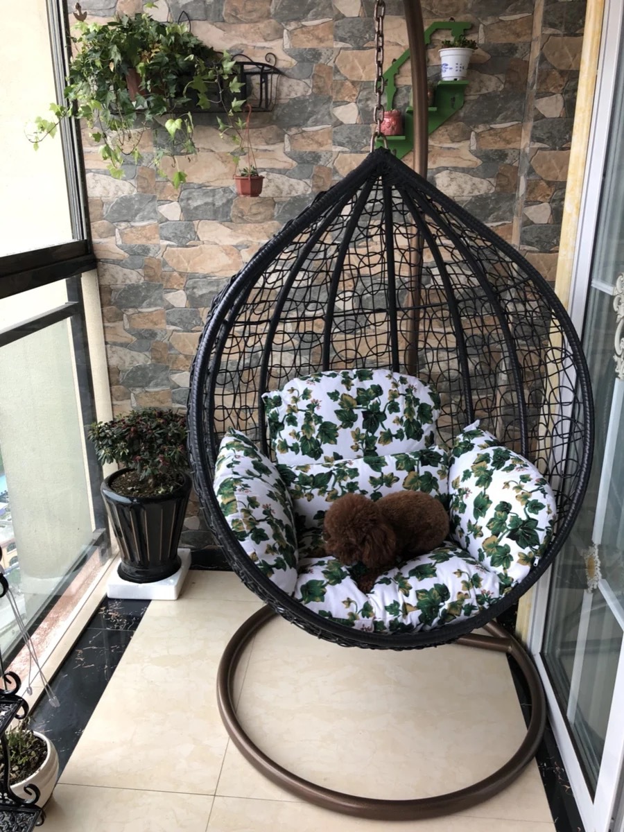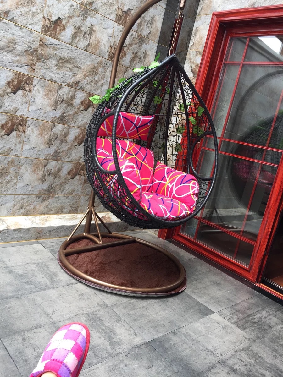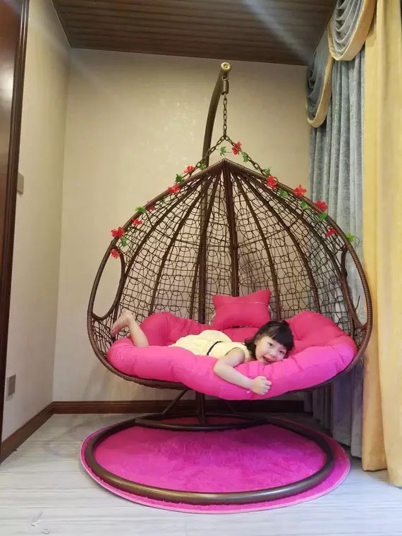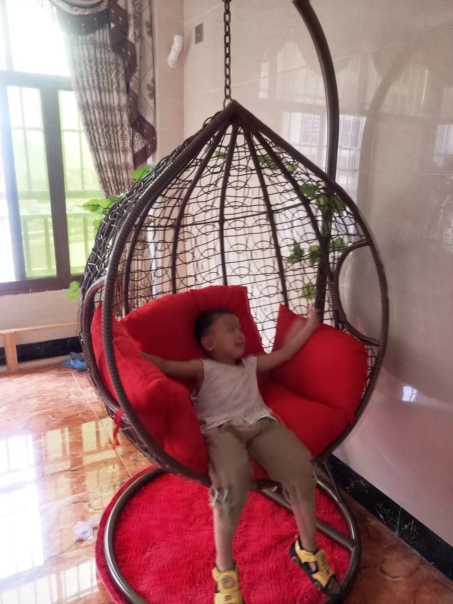 [宝贝用料]吊篮采用PE仿藤制造(非真藤),PE仿藤坚韧饱满,较之天然藤条,具备表面光滑细腻,质感自然手感清爽。而且经久耐用、不易爆裂脱胶,杂色少,防水、防晒、防霉、防蛀,符合人体力学和工程学特点,易于清洗,透气性强,舒适别致,能显示出格调和品味,健康环保.