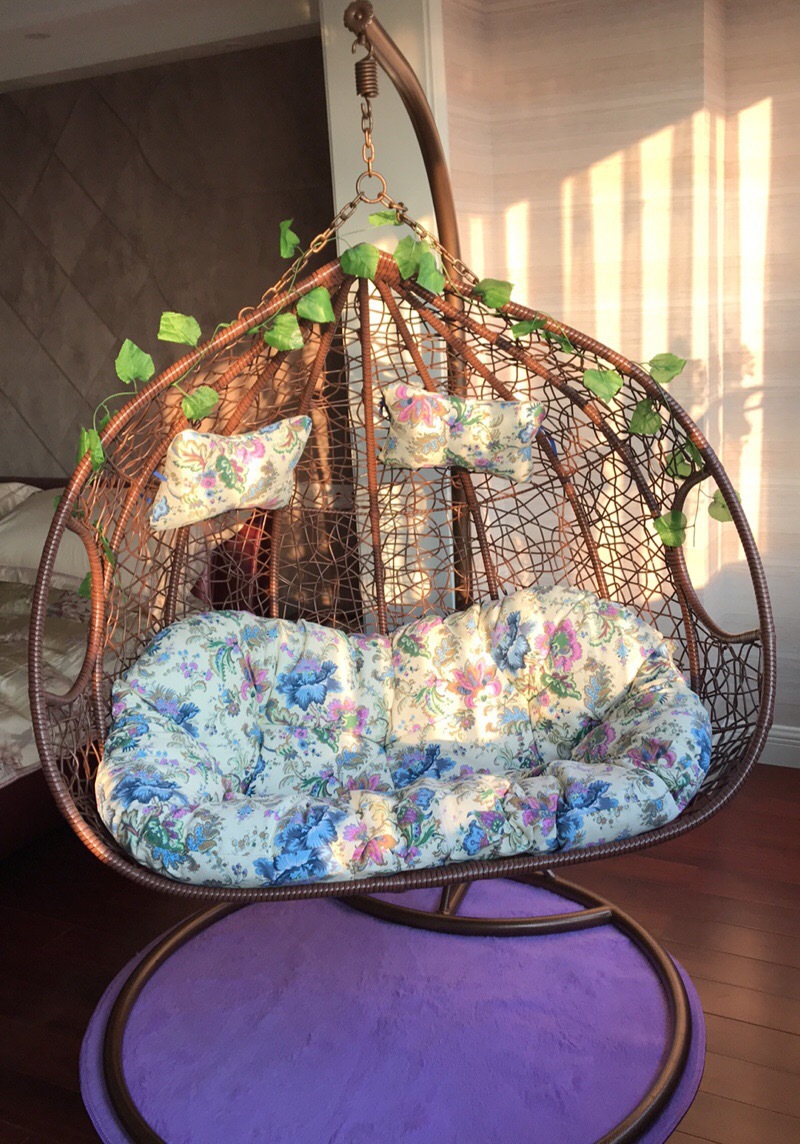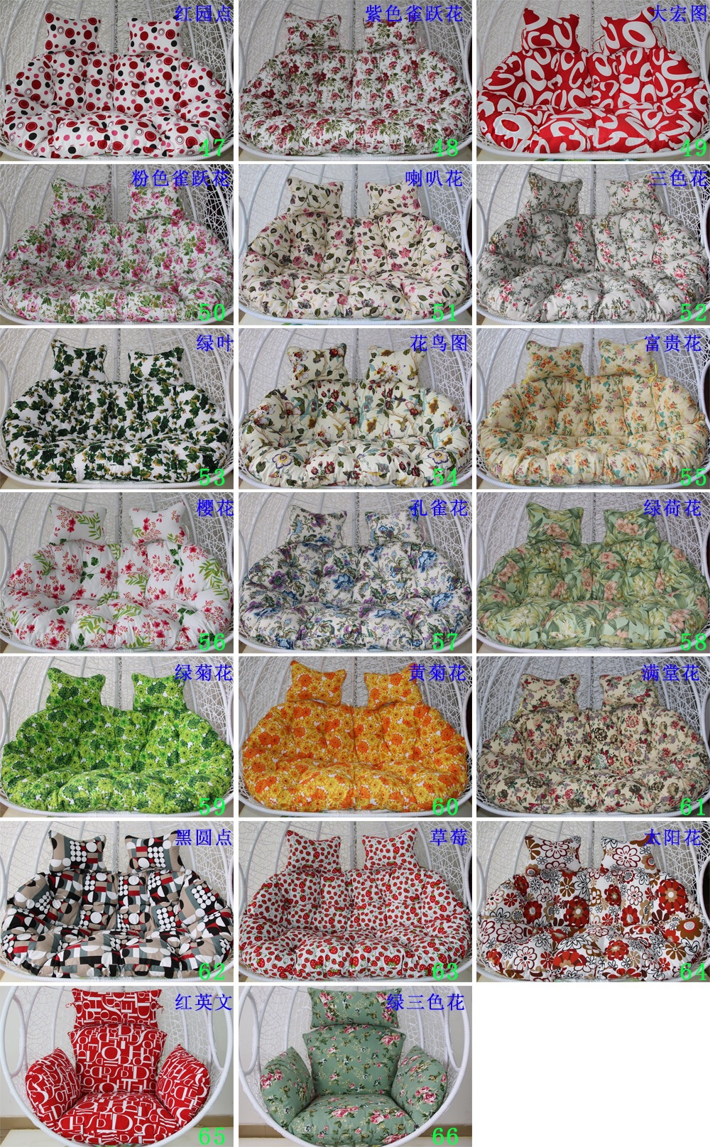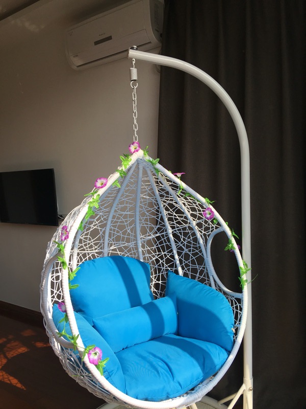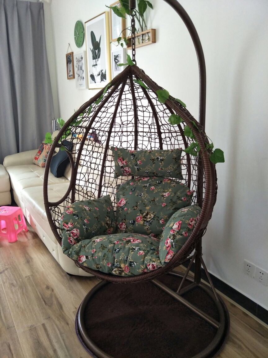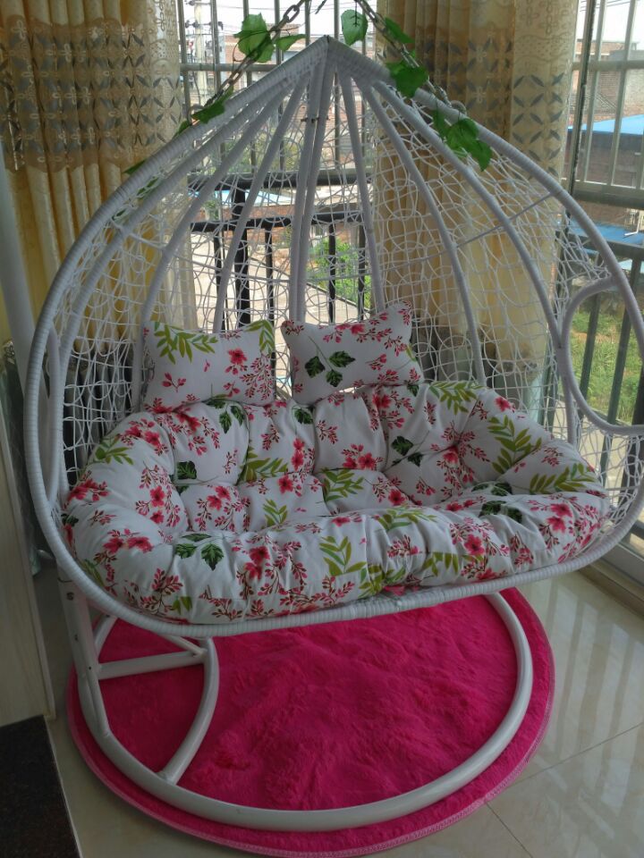 3.下单即送:加厚大坐垫;小枕头;装饰绢叶;白色吊篮送手喷漆;藤条;防噪音器,防滑地毯(坐垫和防滑垫可自由选色,留言备注)