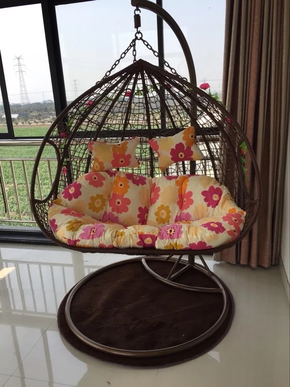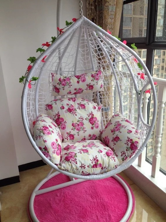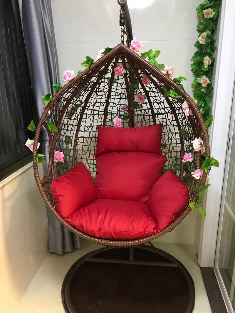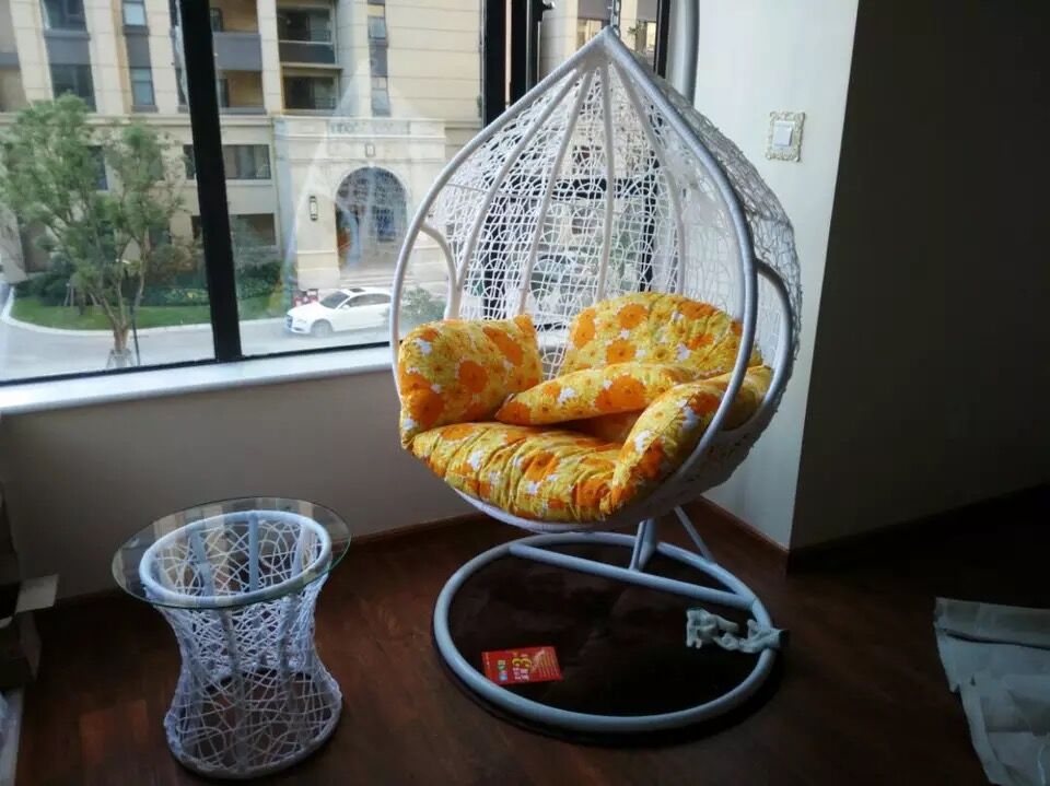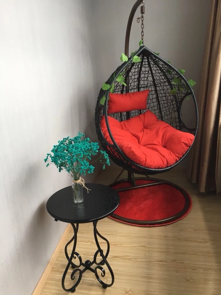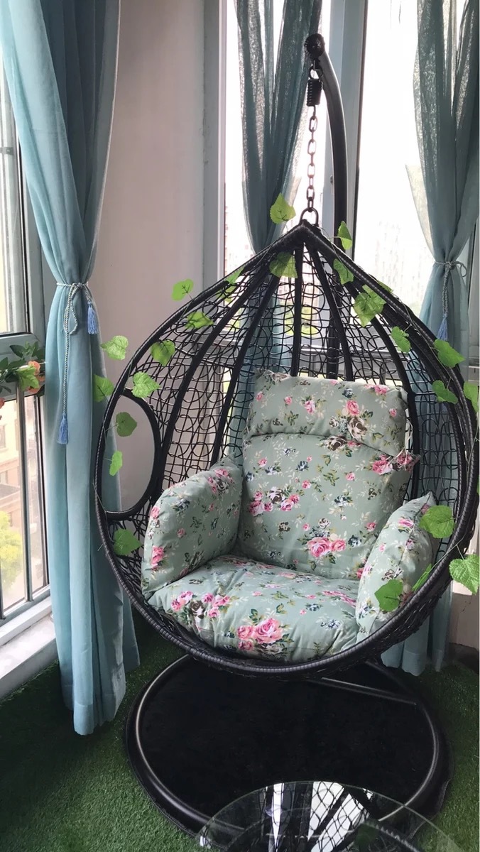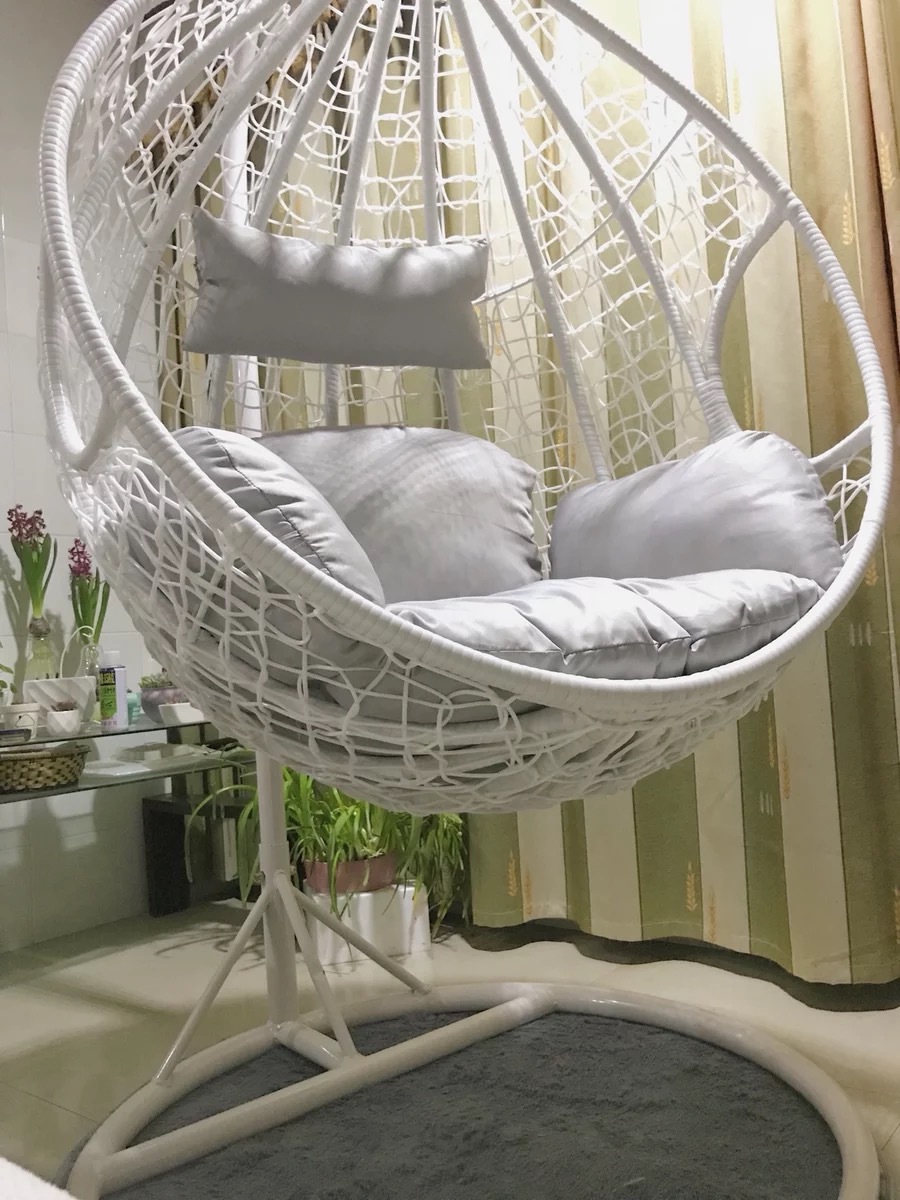 3.下单即送:加厚大坐垫;小枕头;装饰绢叶;白色吊篮送手喷漆;藤条;防噪音器,防滑地毯(坐垫和防滑垫可自由选色,留言备注)