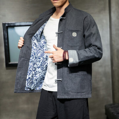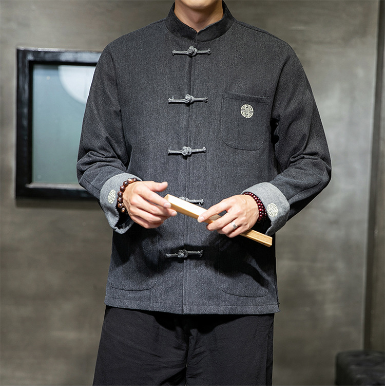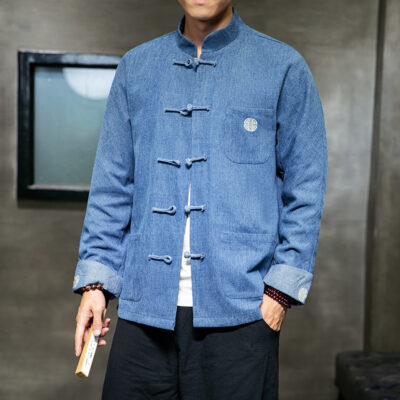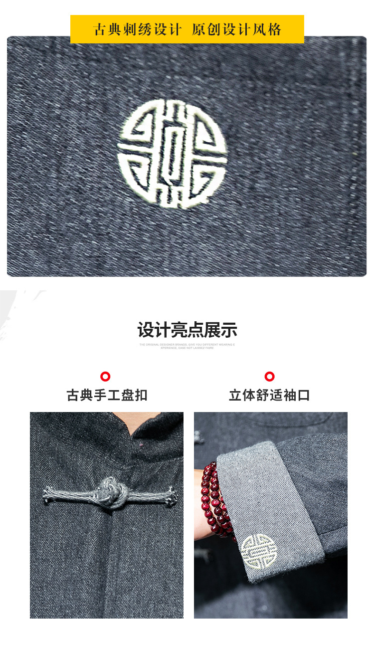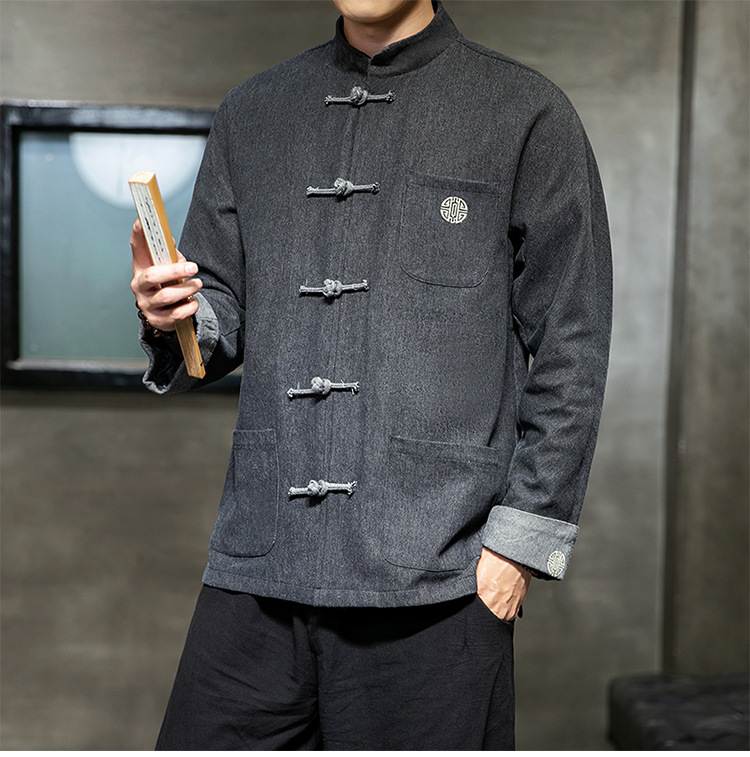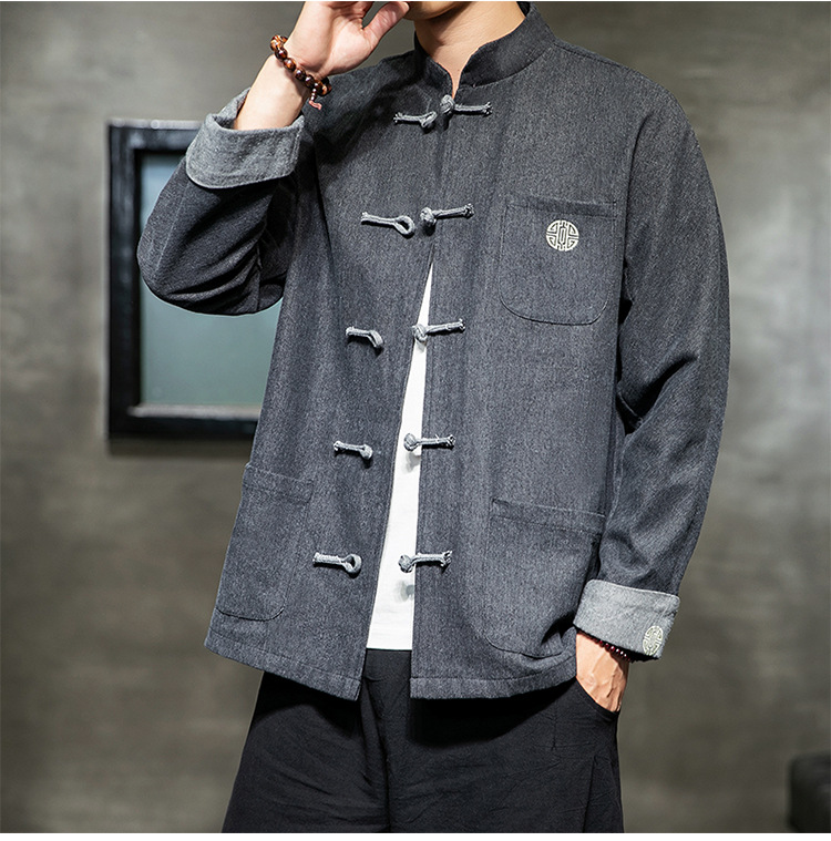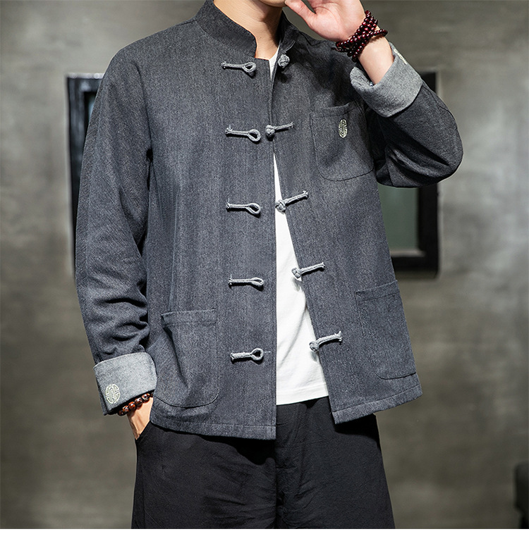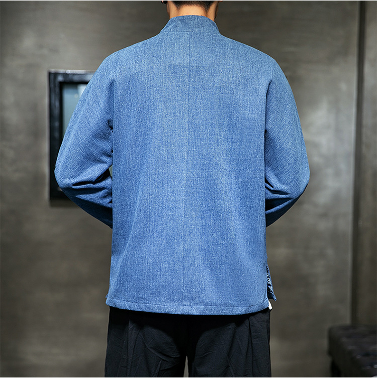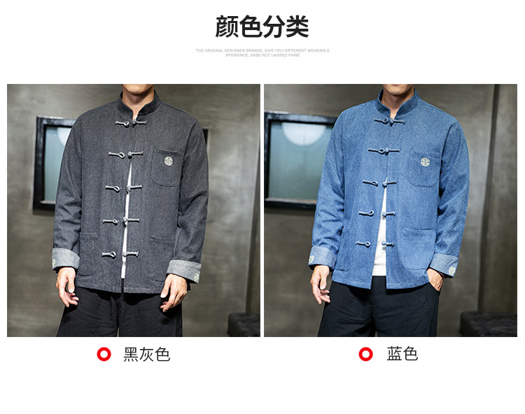 Gió Trung Quốc Mùa Xuân Nam Khóa Cổ Áo Khoác Áo Khoác Thanh Niên Size Lớn Dân Tộc Denim Thêu Áo Khoác Cao Cấp