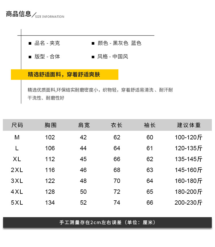 Hoa văn: màu trơn Nguồn Danh mục: Túi quần áo Spot Phong cách: Dòng Ming Chất liệu túi vá Chức năng: Khác Danh mục sản phẩm: Trang phục thường ngày Màu sắc: Đen/Xanh dương/Xanh dương: Trẻ trung Kích thước: M/L/XL/2XL/3XL/4XL/5XL /Phiên bản 5XL: Loại rộng Mua sắm Danh mục: Thời trang trẻ (18-24 tuổi) Loại cổ áo: Cổ áo đứng Cổ áo: Kiểu dáng mỏng Mã sản phẩm: A032/NY22/ Tên vải: Denim Trường hợp sử dụng: Túi đeo chéo: Hàng cúc đơn Kiểu tay áo : tay áo rộng Thành phần vải chính: Cotton Các nền tảng hạ nguồn chính: ebay/Amazon/wish/AliExpress/Independent station /LAZADA/LAZADA Giới tính áp dụng: Nam Độ tuổi áp dụng: Người lớn Năm/Mùa niêm yết: Mùa xuân 2023 Có trùm đầu hay không: Trùm đầu Phong cách mặc: Áo khoác ngoài Thích hợp Mùa: Mùa xuân Chiều dài tay áo: Tay áo dài Chi tiết phong cách: Quần áo thêu Thiết kế viền: Kiểu viền vải: Phong cách Trung Quốc Khu vực bán hàng chính: Châu Phi/Châu Âu/Nam Mỹ/Đông Nam Á/Bắc Mỹ/Đông Bắc Á/Trung Đông/Trung Đông Thiết kế ban đầu Nguồn : Có Quy trình: Giặt