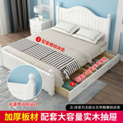 Giường cao cấp 2021 giường mới Giường đôi gia đình 1,5m gỗ đặc Phòng ngủ 1,8m giường đơn đơn giản 1.