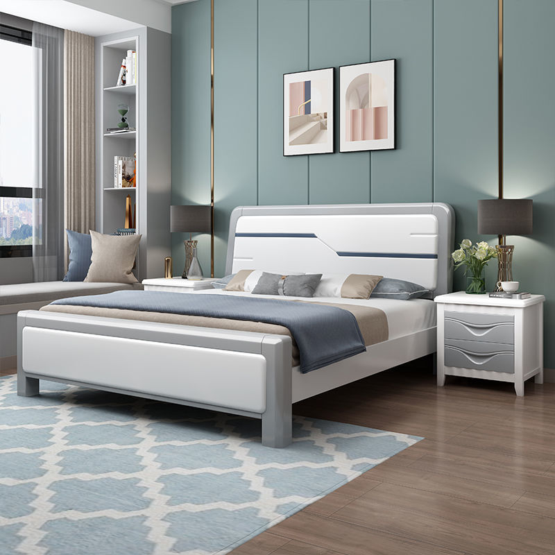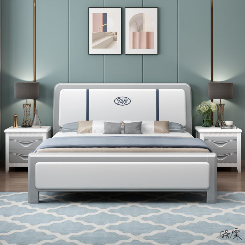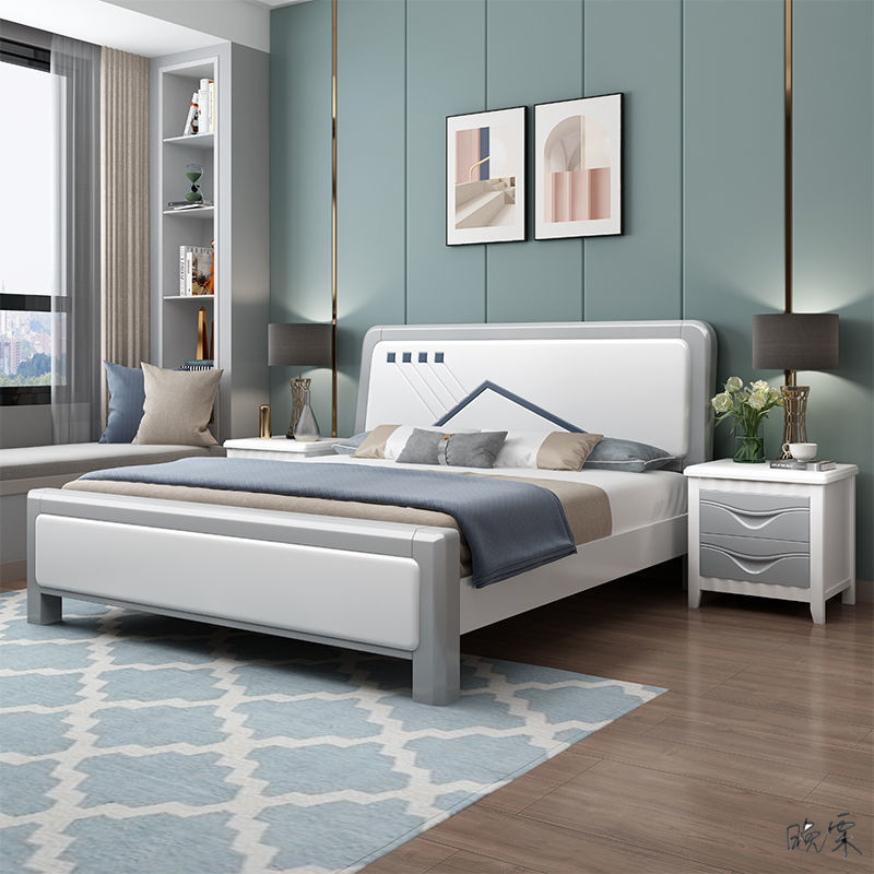 Giường cao cấp 2021 nhà mới gỗ nguyên khối nội thất căn hộ nhỏ phòng ngủ giường đôi áp suất không khí hiện đại kết hợp giường hôn nhân