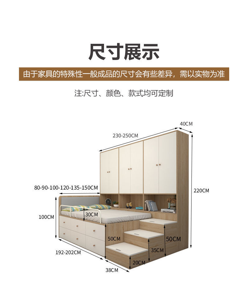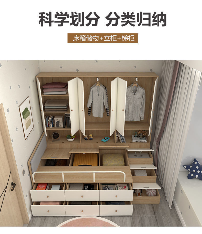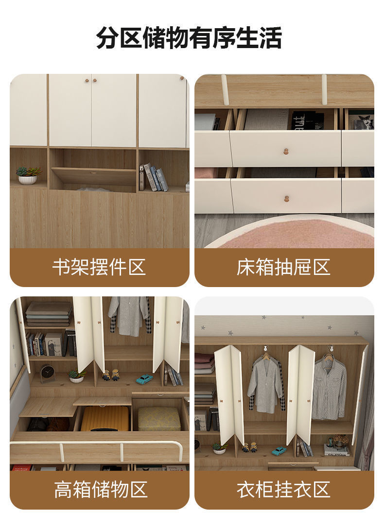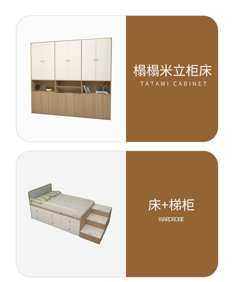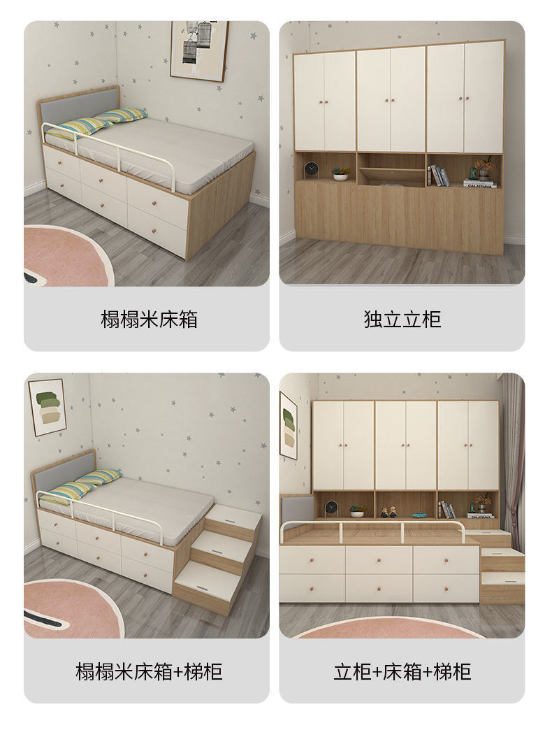 Giường chiếu tatami tích hợp giường ngủ chung cư nhỏ Tủ giường trẻ em kết hợp đa năng có giá sách lưu trữ giường ngủ nửa giường