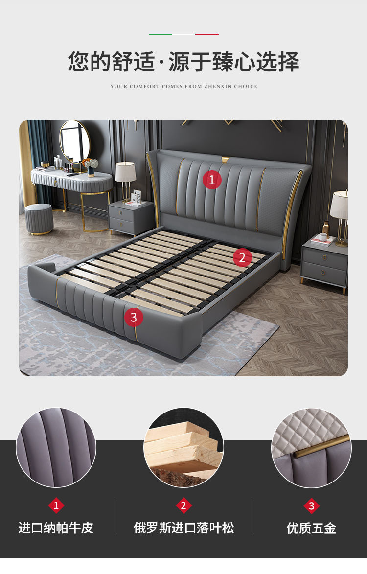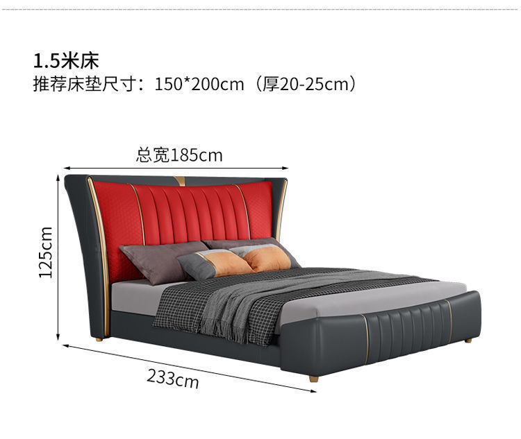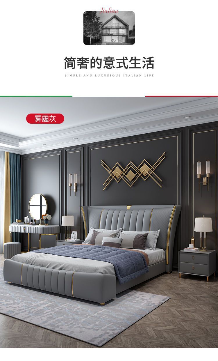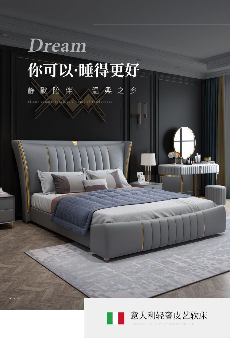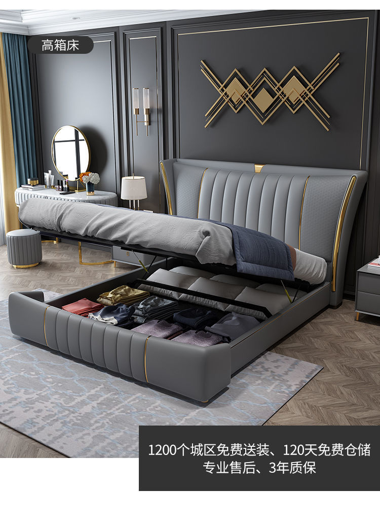 Giường da giường da phòng ngủ master giường đôi lưu trữ phong cách ý giường cưới 1,8m đơn giản tối giản 1,5m giường ngủ sang trọng nhẹ nhàng