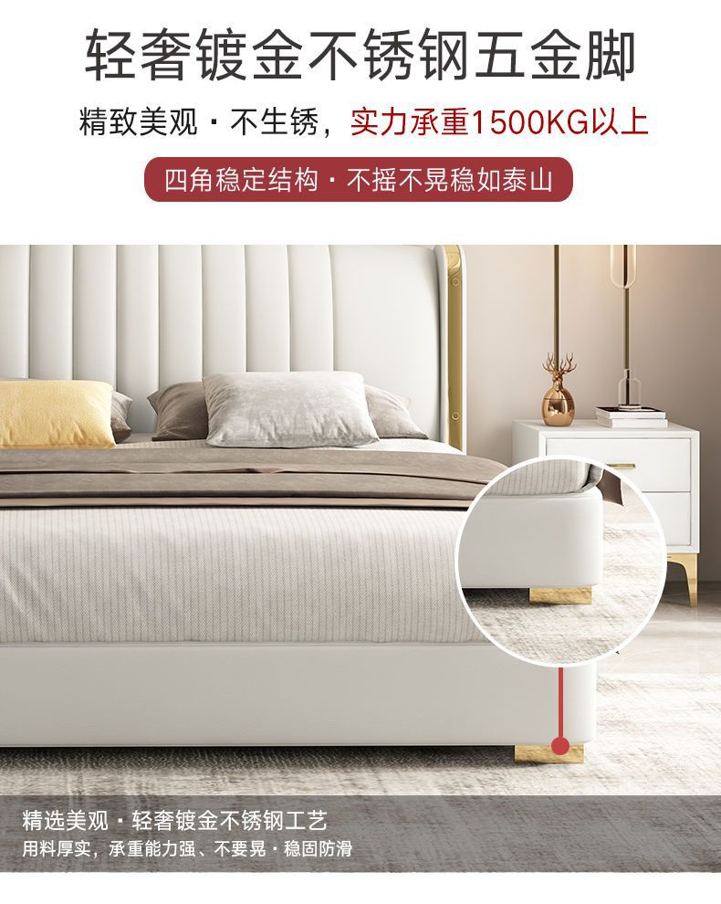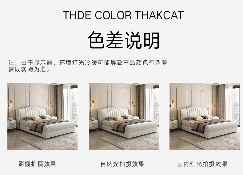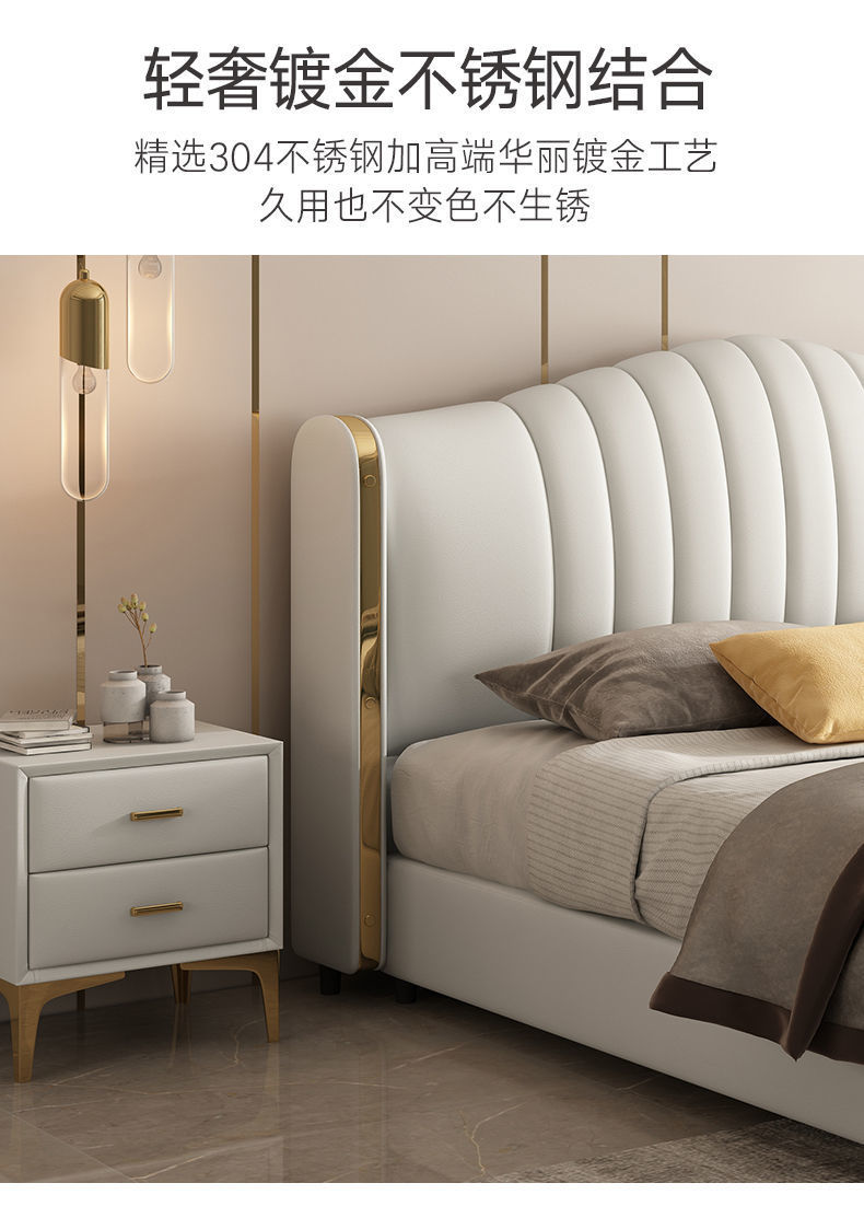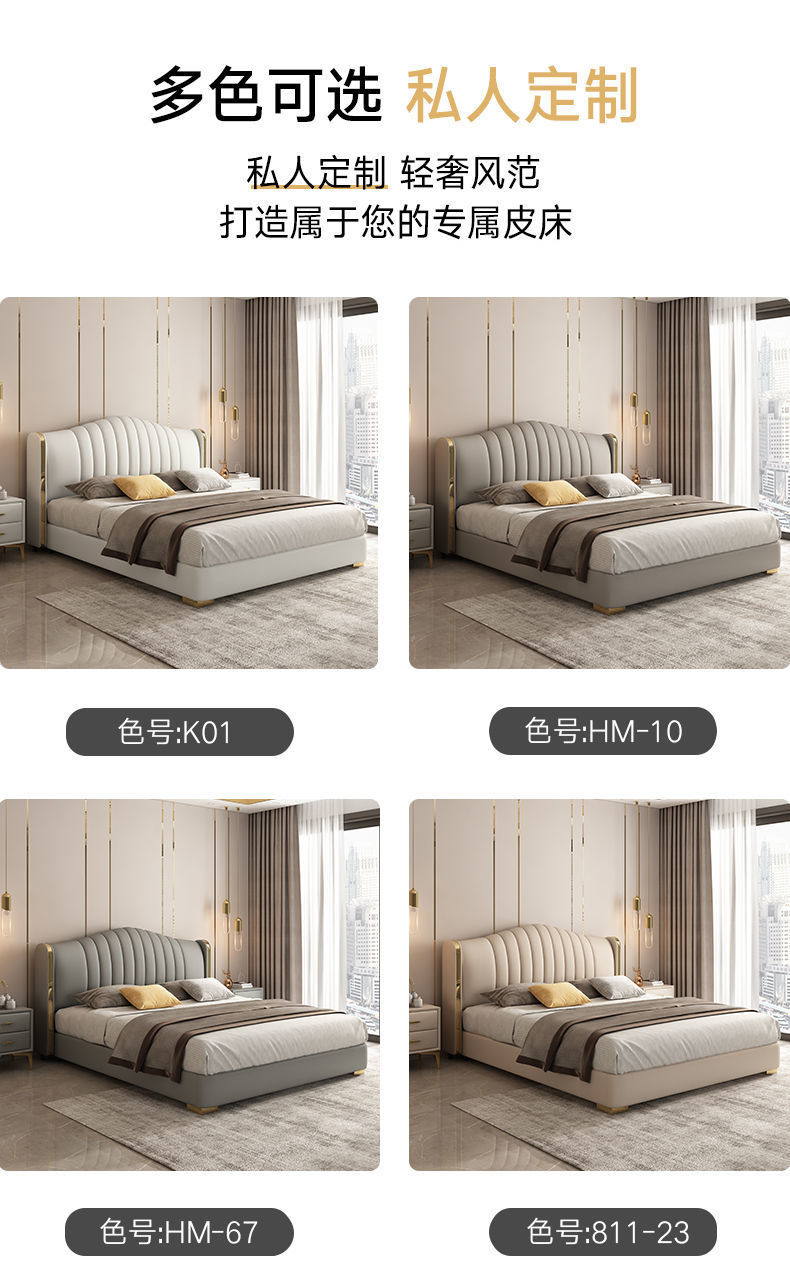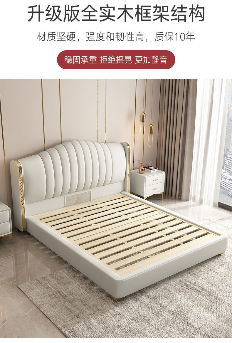 Giường da sang trọng nhẹ Phòng ngủ giường cưới giường sang trọng giường biệt thự giường đôi gia đình giường gió nhẹ sang trọng Giường mềm 1,5m nhà sản xuất
