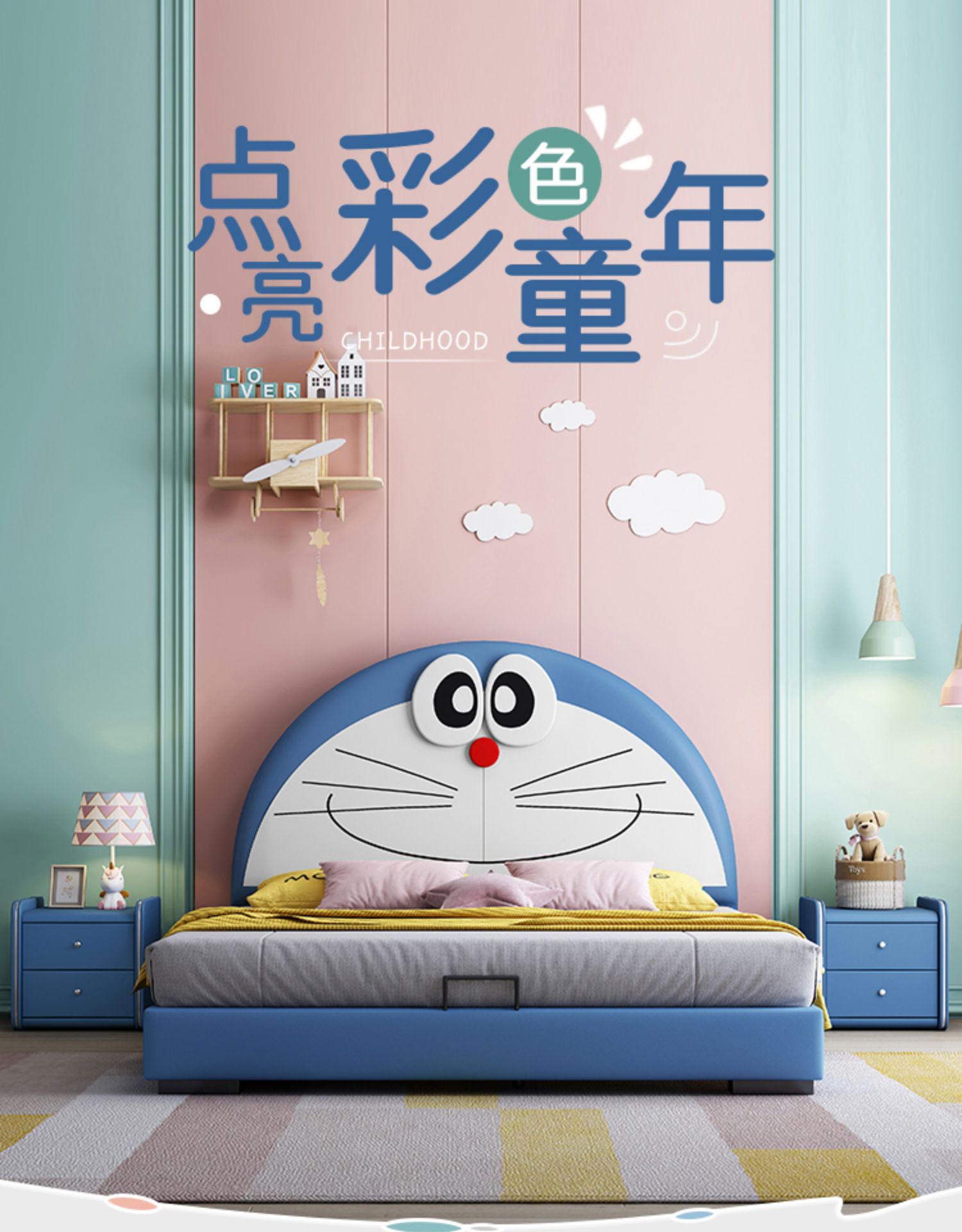 Giường da trẻ em công nghệ vải phần mềm nội thất phòng ngủ phim hoạt hình dễ thương bé trai và bé gái lưu trữ giường 1,8m 1,5m