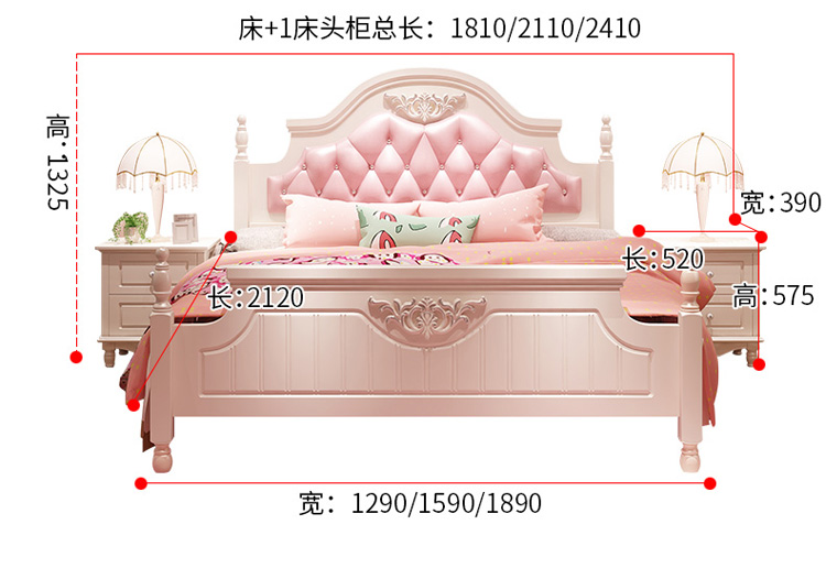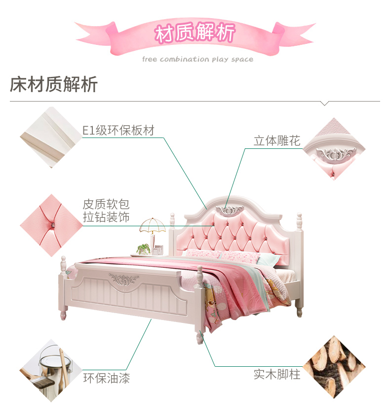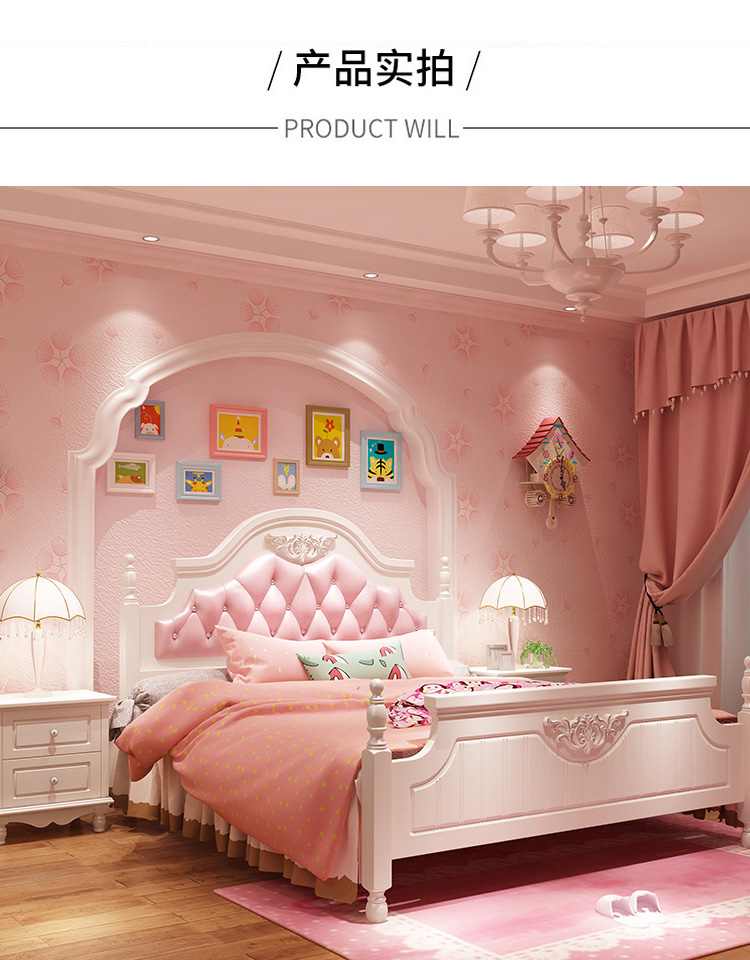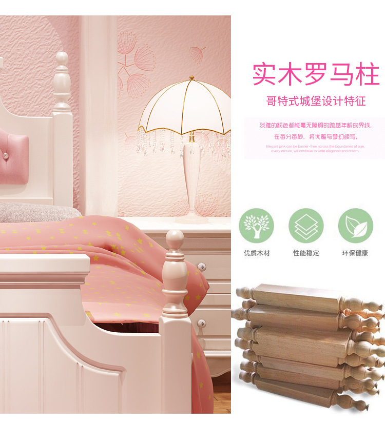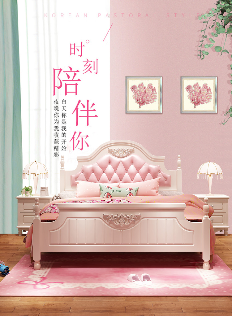 Giường đơn trẻ em kiểu Hàn Quốc giường đơn 1,2m đơn giản hiện đại màu hồng công chúa Phòng ngủ phong cách Châu Âu kết hợp nội thất trọn gói