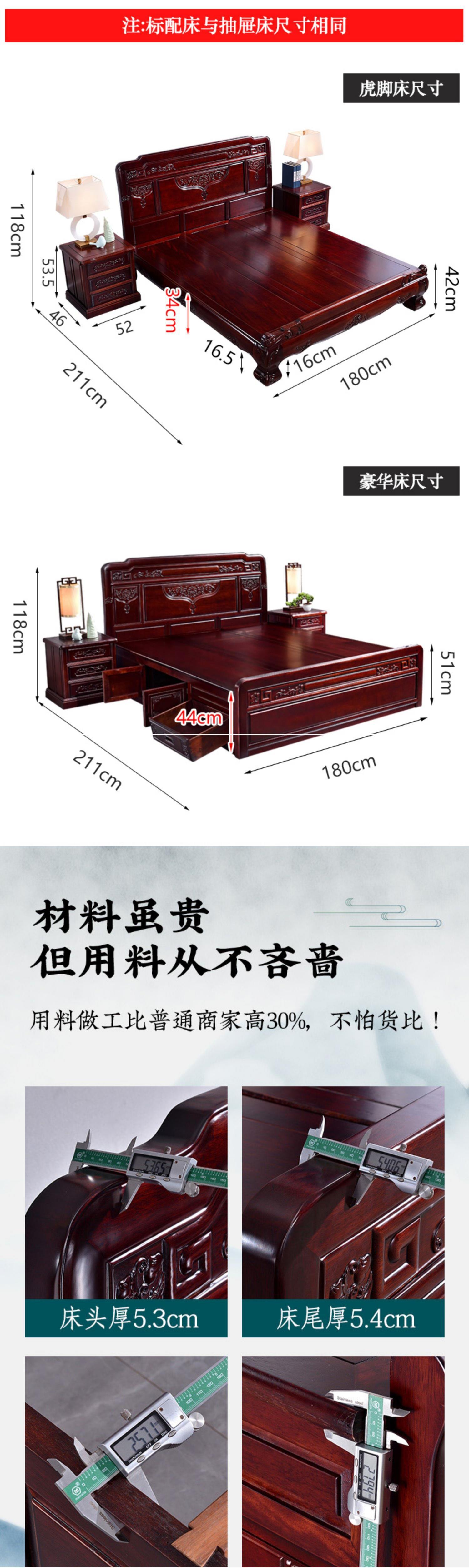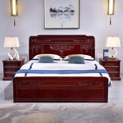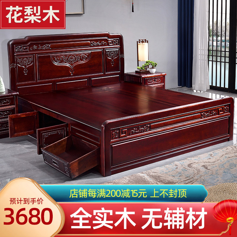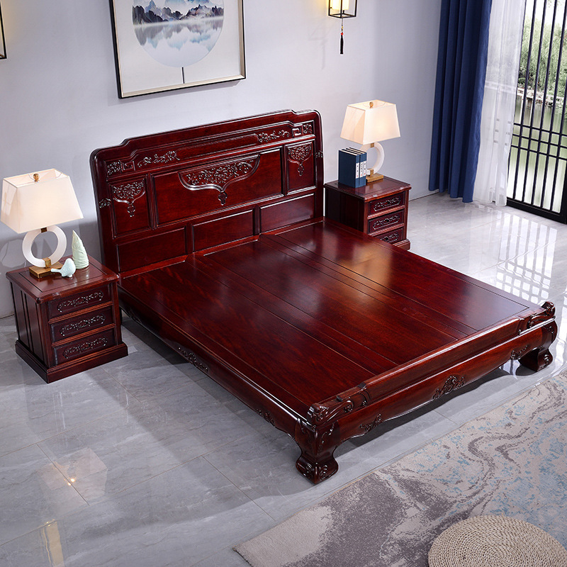 Giường gỗ cẩm lai giường lớn phong cách trung quốc giường đôi 1,8m 1,5m hoàn toàn bằng gỗ xoan đào nội thất gỗ gụ mắt lưới
