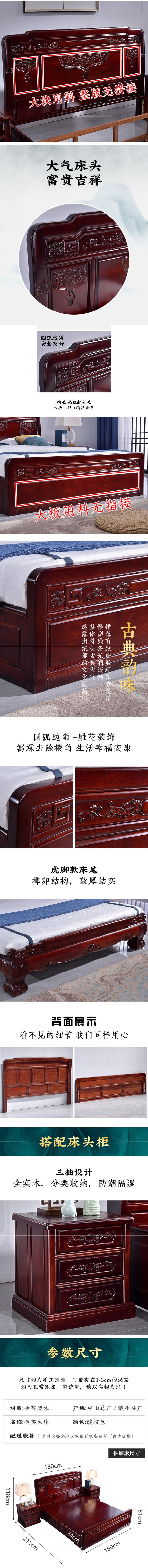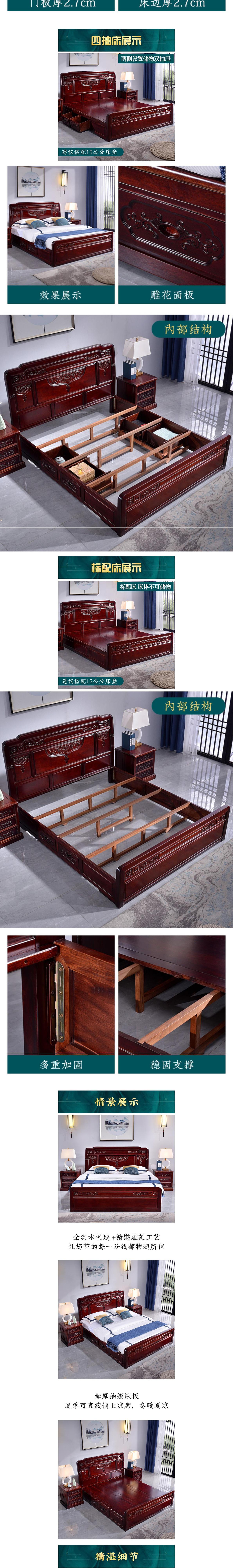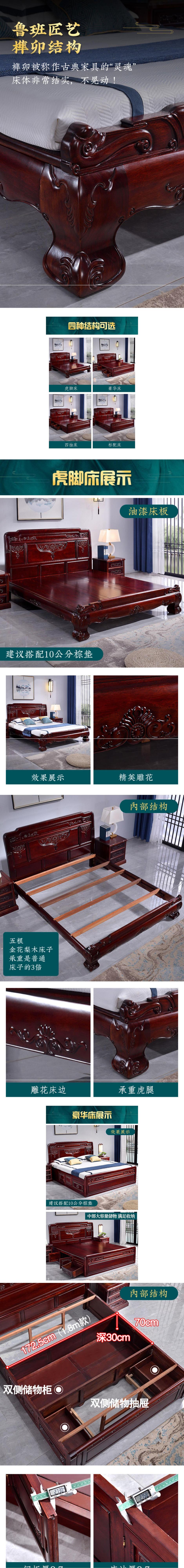 Giường gỗ cẩm lai giường lớn phong cách trung quốc giường đôi 1,8m 1,5m hoàn toàn bằng gỗ xoan đào nội thất gỗ gụ mắt lưới