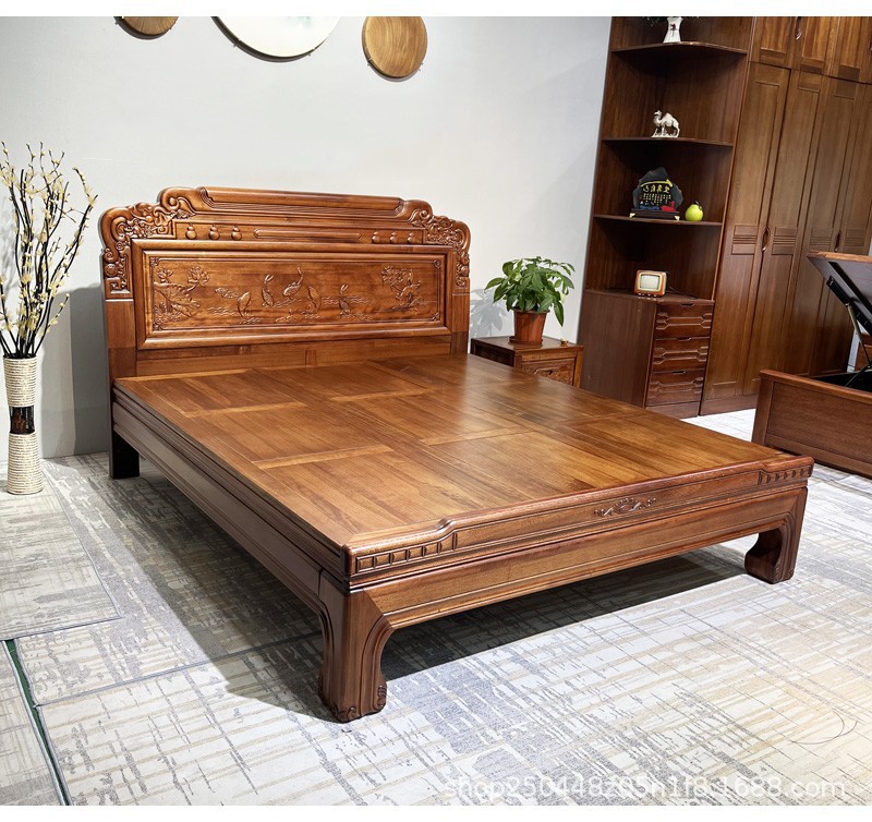 Giường gỗ cẩm lai vàng Indonesia đầy đủ giường gỗ nguyên khối 1,8 mét gỗ dứa đôi giường gỗ gụ cổ điển 1,5 chân hổ