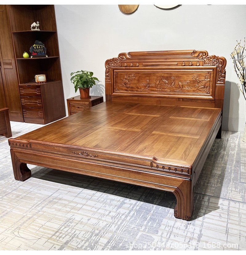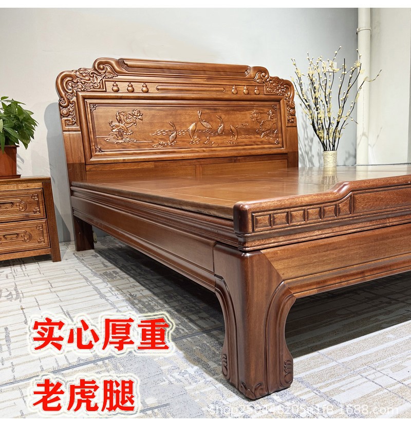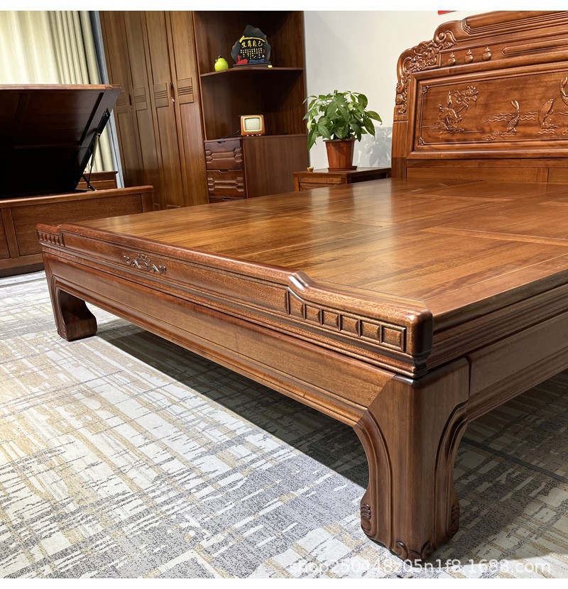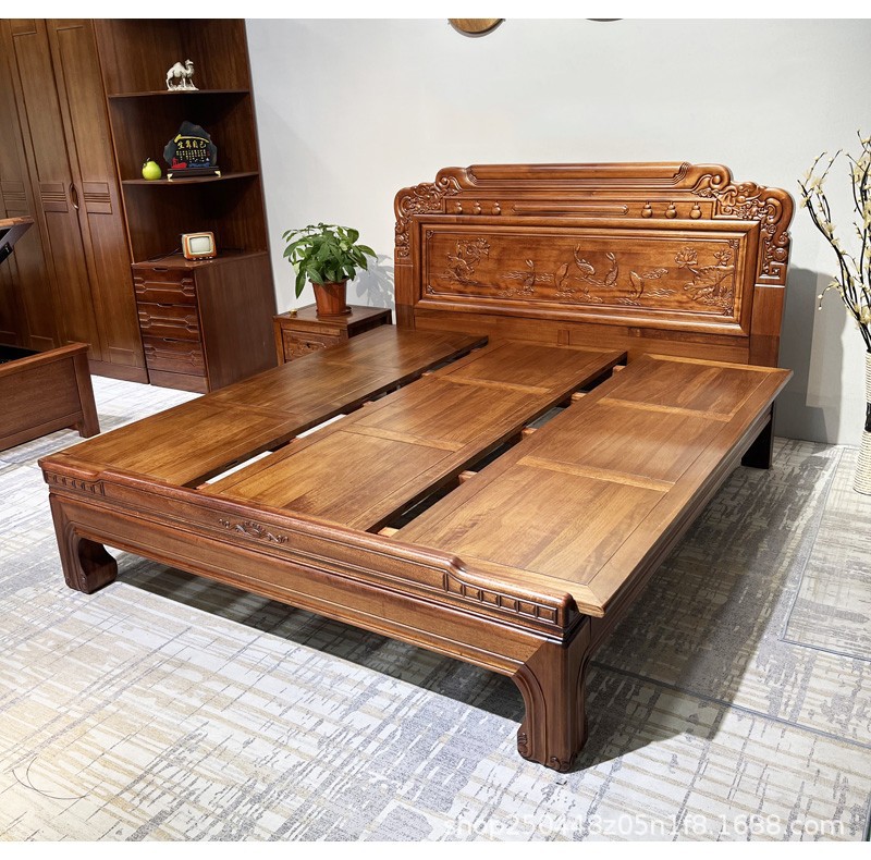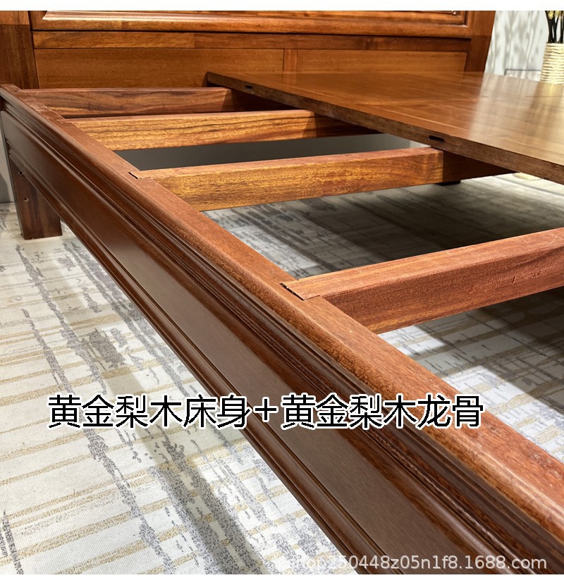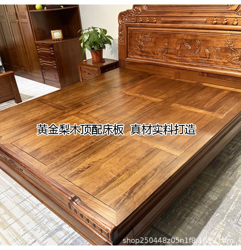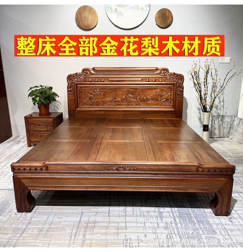 Giường gỗ cẩm lai vàng Indonesia đầy đủ giường gỗ nguyên khối 1,8 mét gỗ dứa đôi giường gỗ gụ cổ điển 1,5 chân hổ