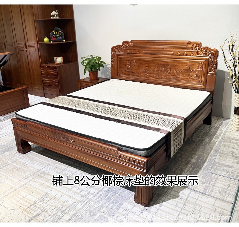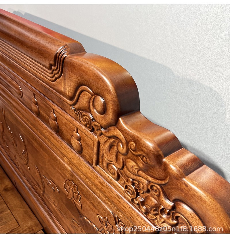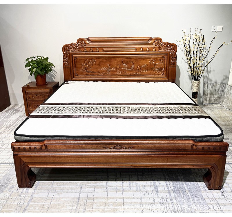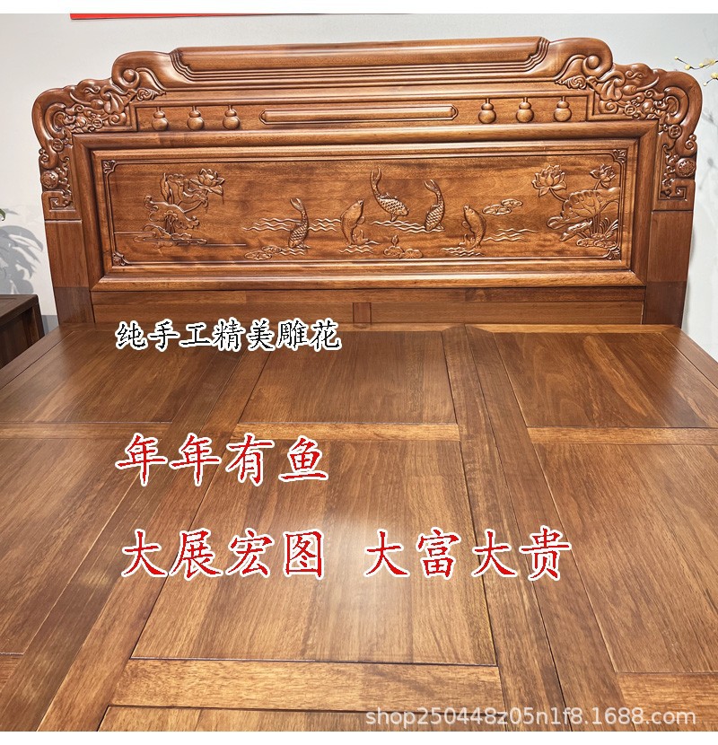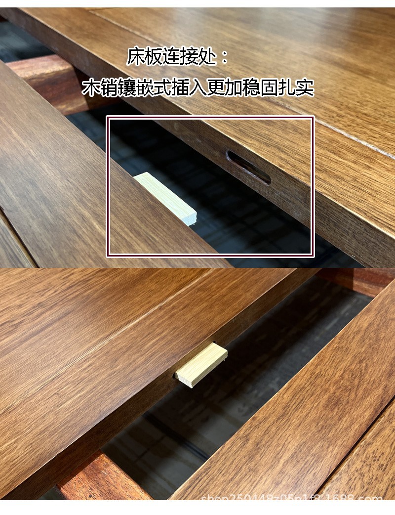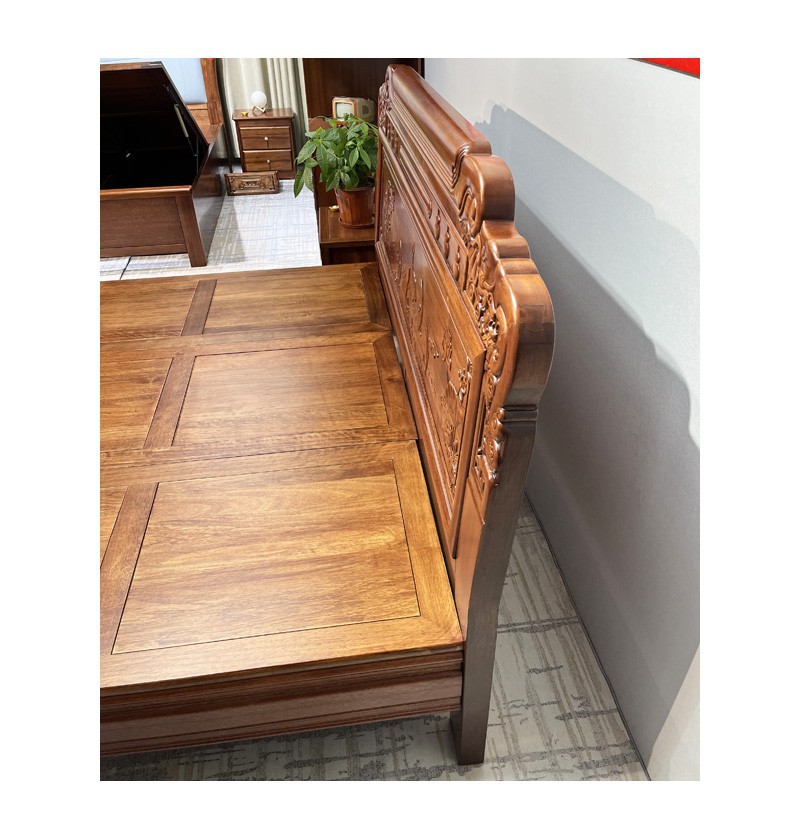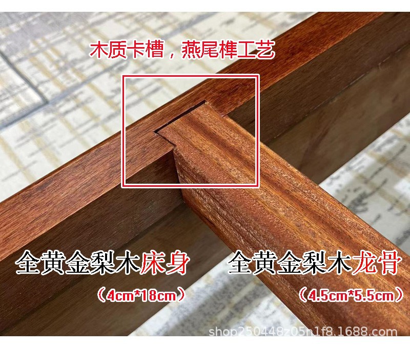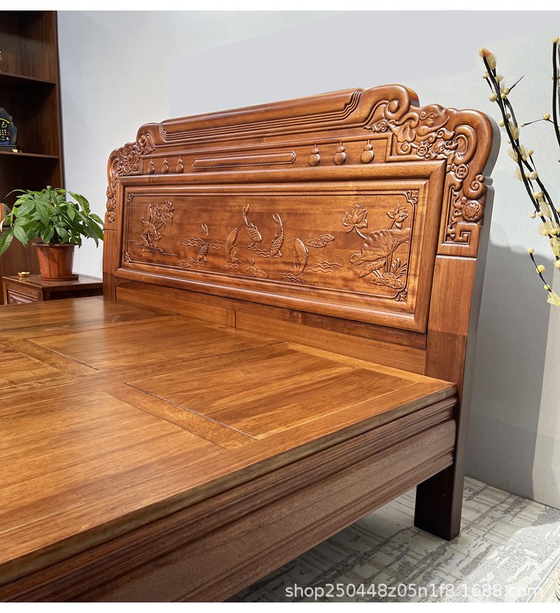 Giường gỗ cẩm lai vàng Indonesia đầy đủ giường gỗ nguyên khối 1,8 mét gỗ dứa đôi giường gỗ gụ cổ điển 1,5 chân hổ
