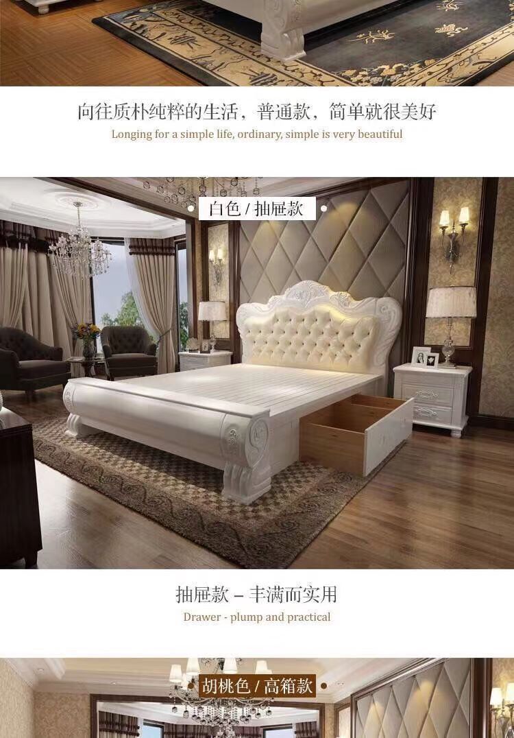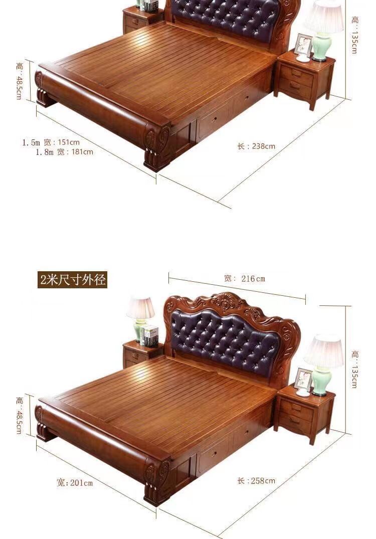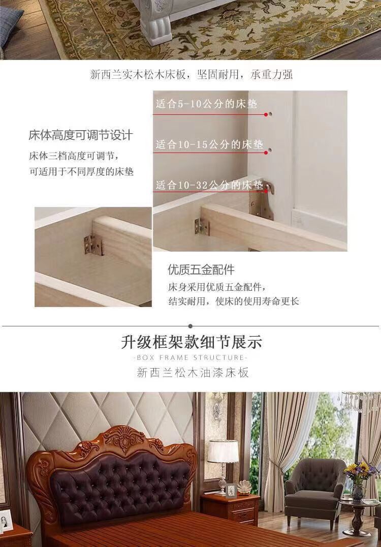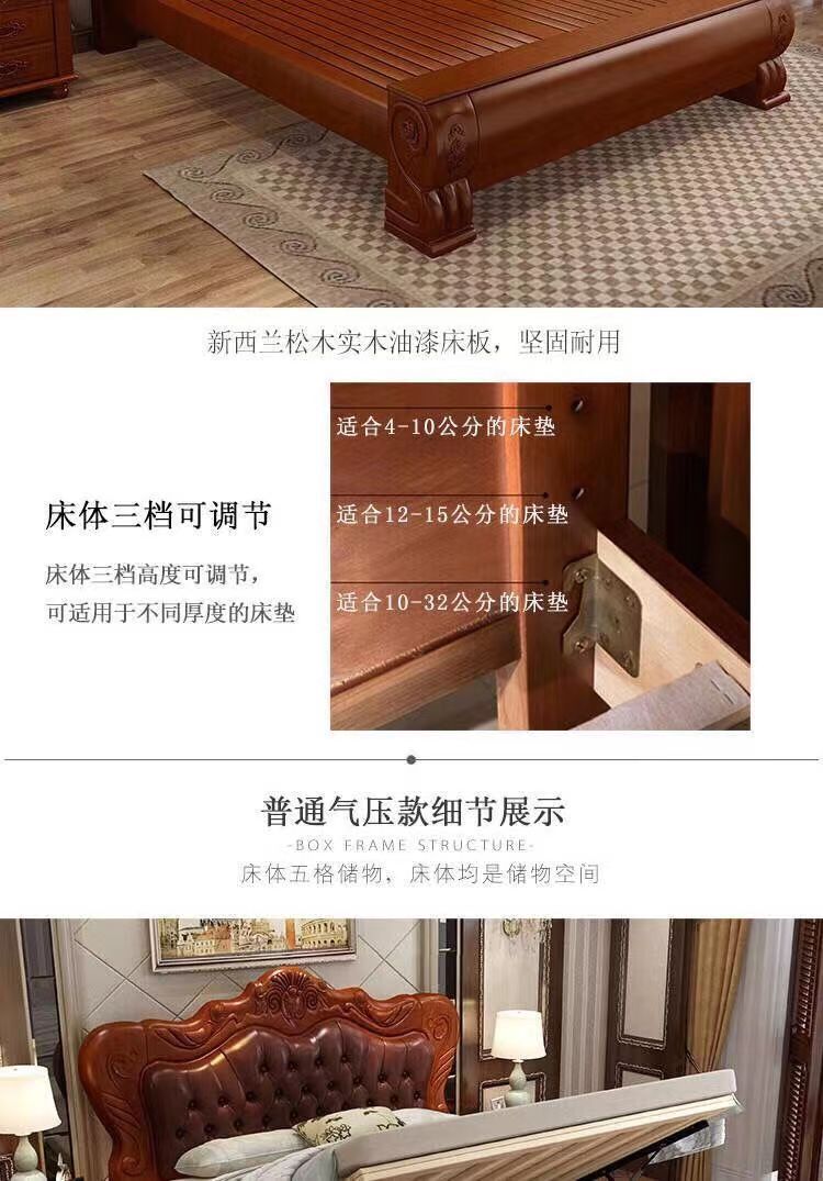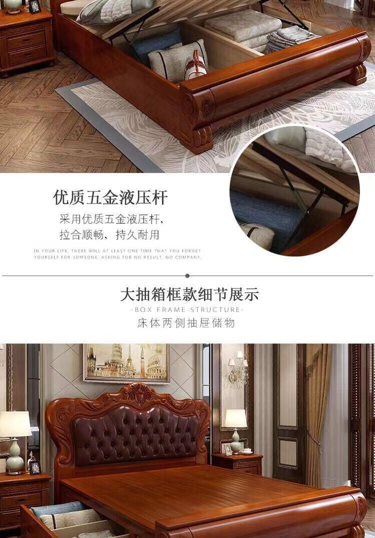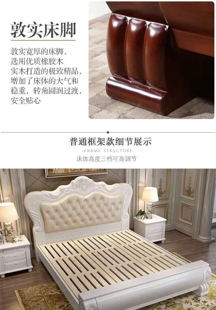 Giường gỗ đặc kiểu Mỹ phong cách châu Âu giường đôi 1,8m phòng ngủ chính gia đình giường lớn 1,5m giường công chúa hiện đại nhà máy bán hàng trực tiếp