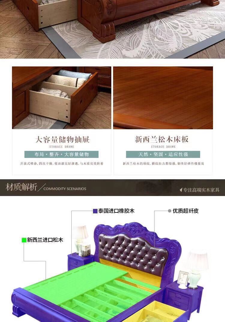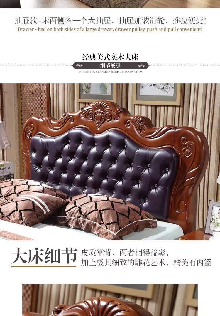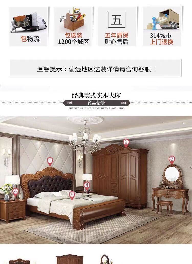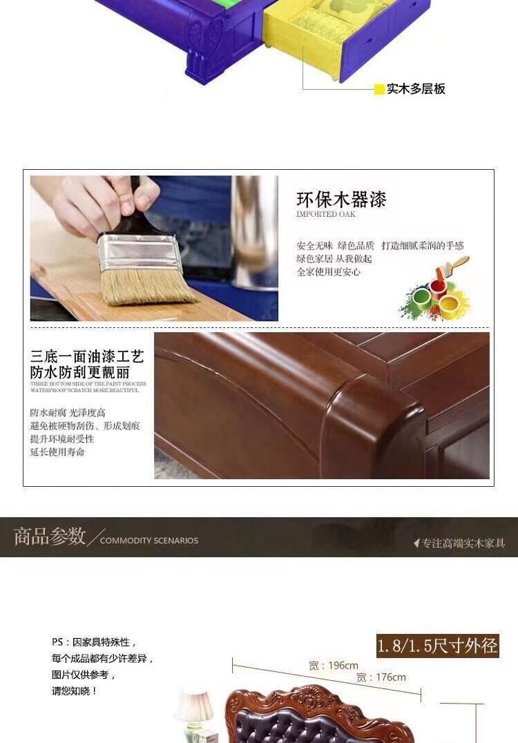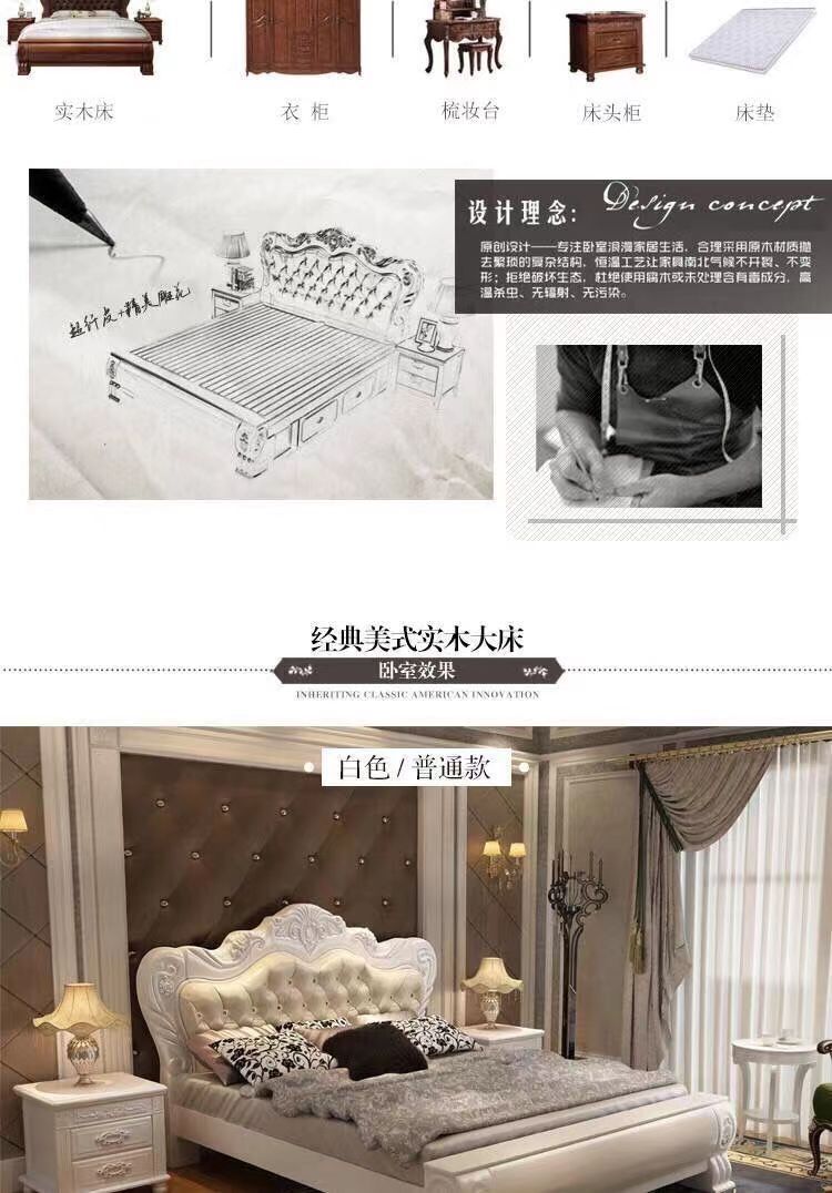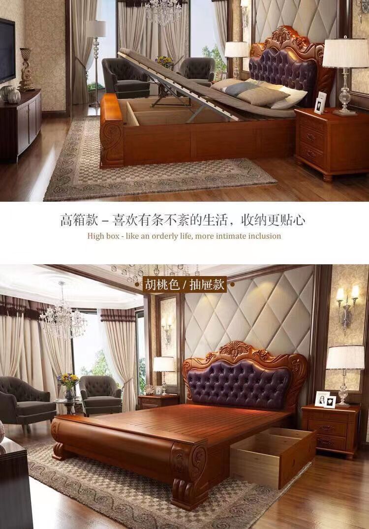 Giường gỗ đặc kiểu Mỹ phong cách châu Âu giường đôi 1,8m phòng ngủ chính gia đình giường lớn 1,5m giường công chúa hiện đại nhà máy bán hàng trực tiếp