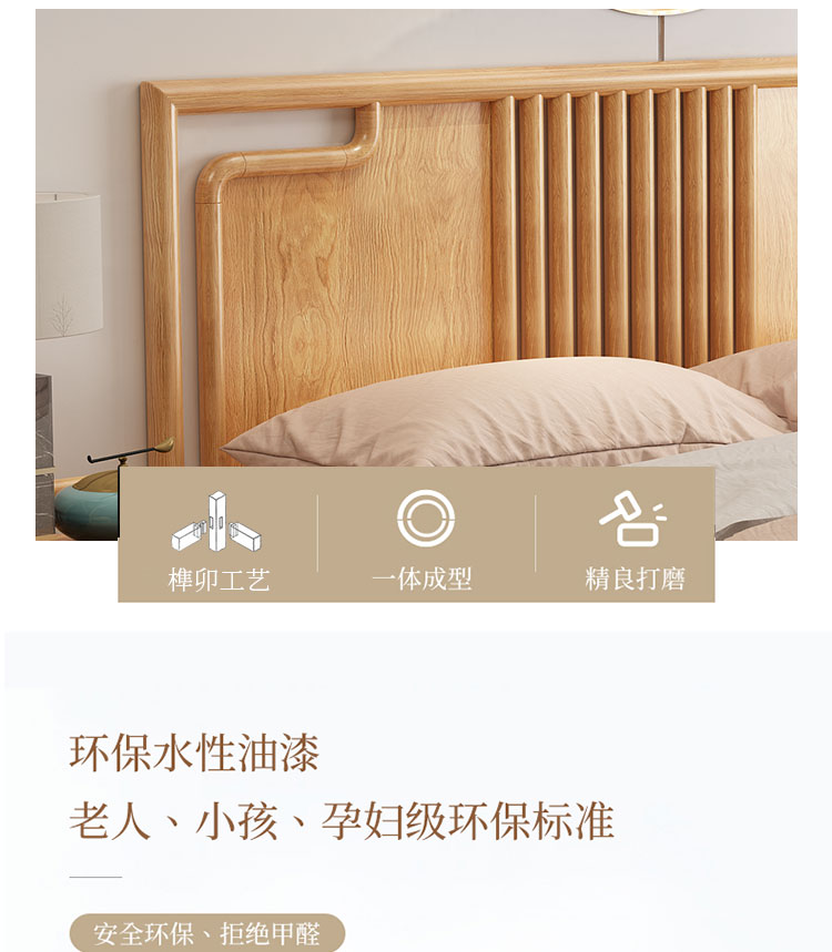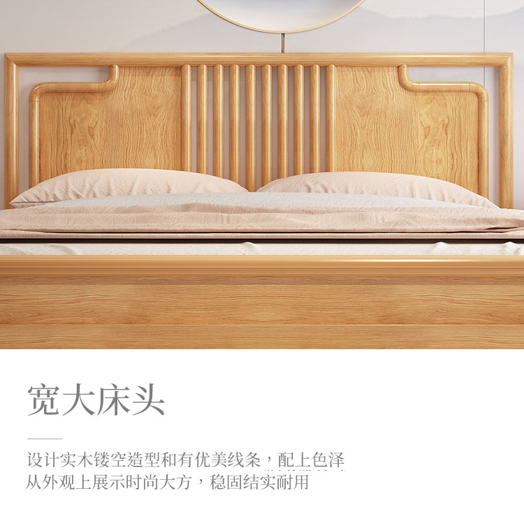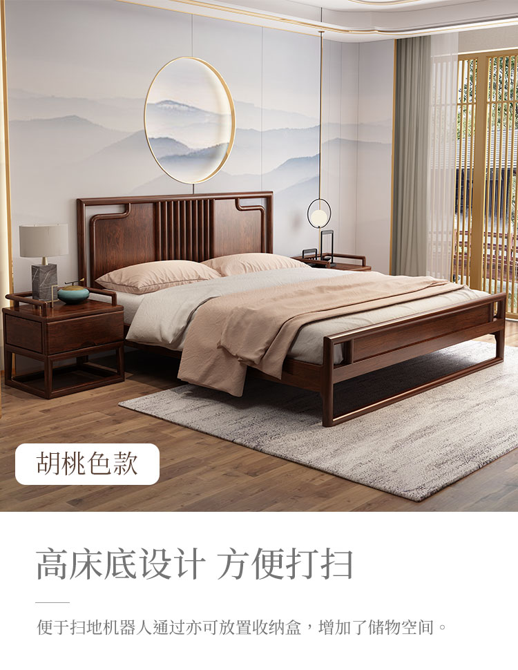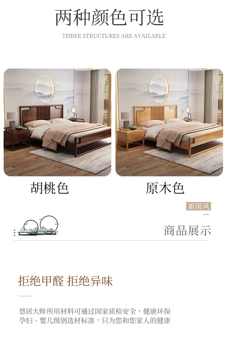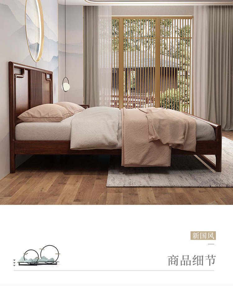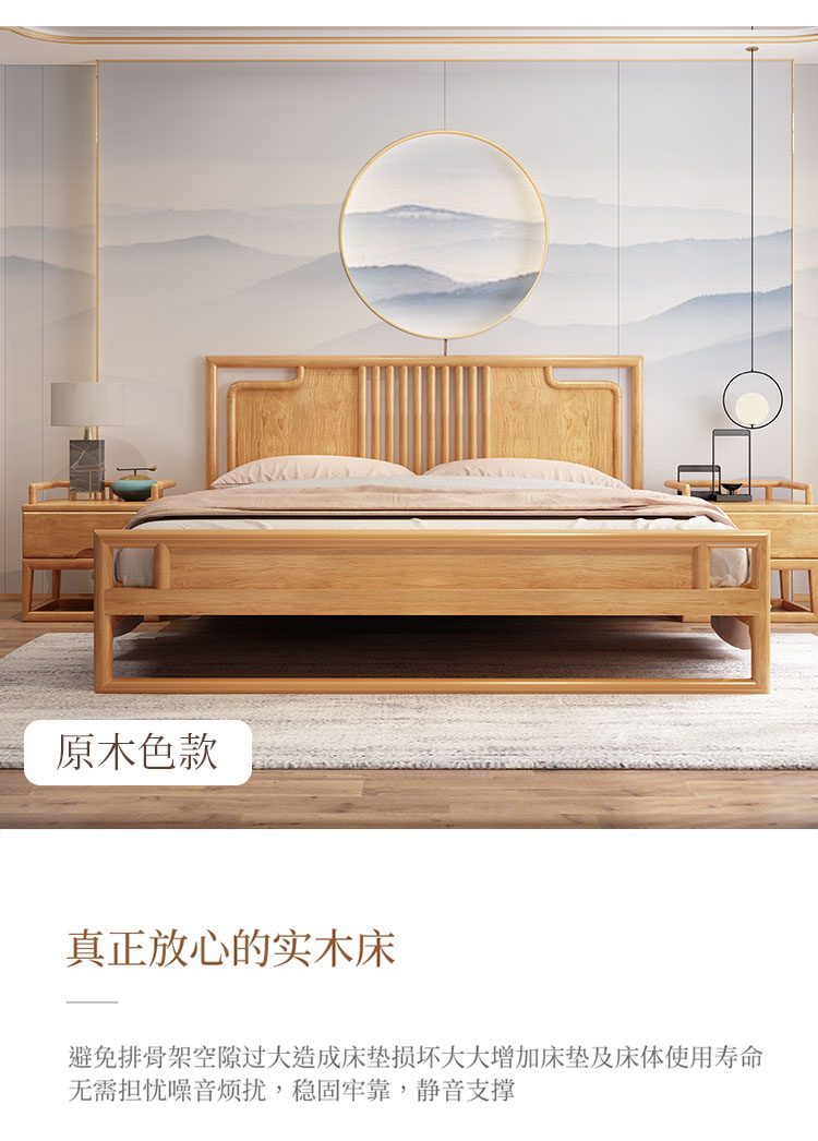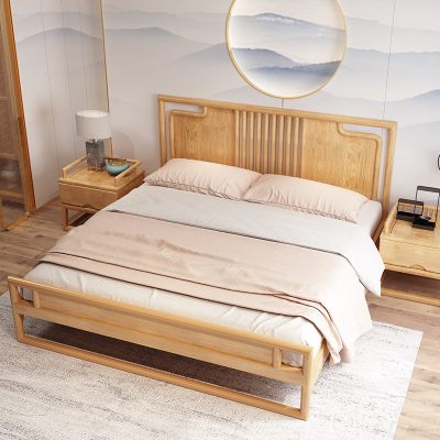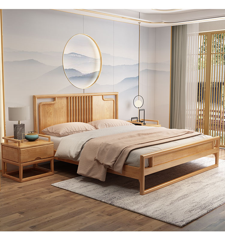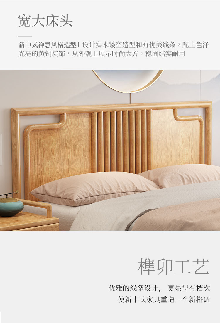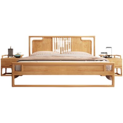 Giường gỗ đặc kiểu Trung Quốc mới Zen đơn giản đôi 1,8m1,5 phòng ngủ bằng gỗ tần bì màu gỗ nội thất kiểu homestay