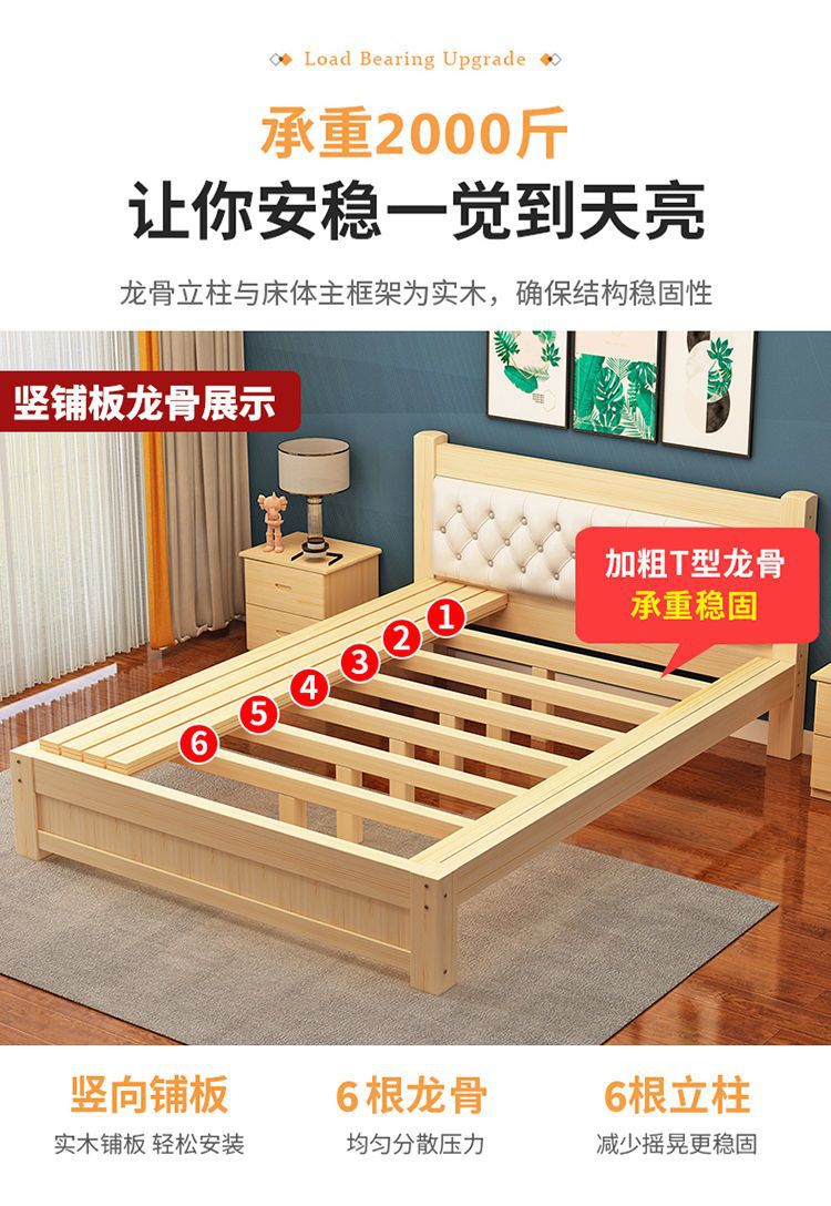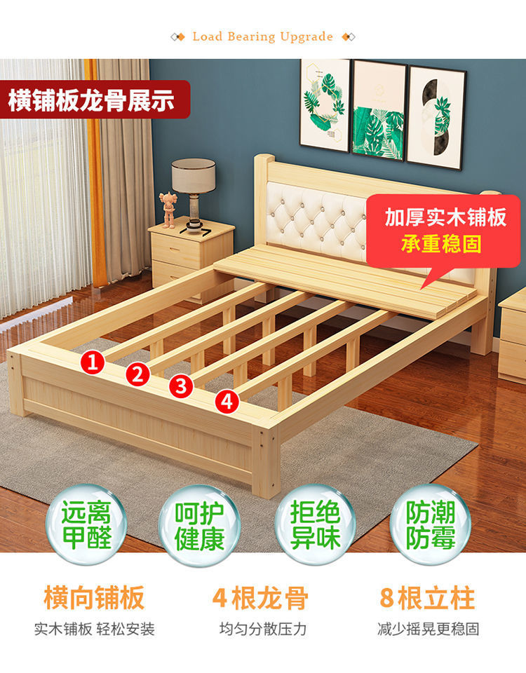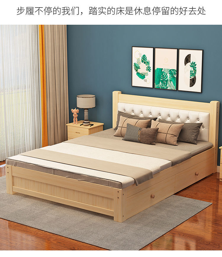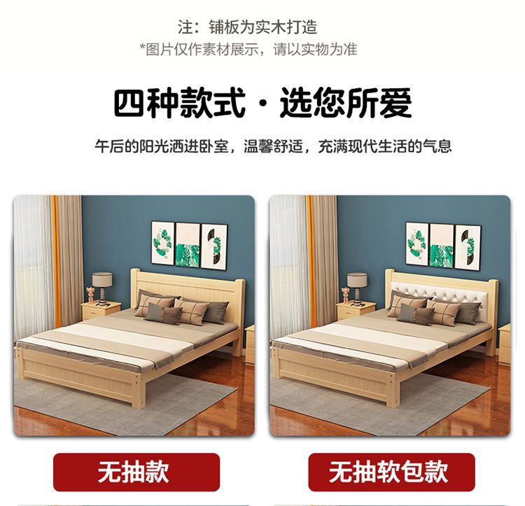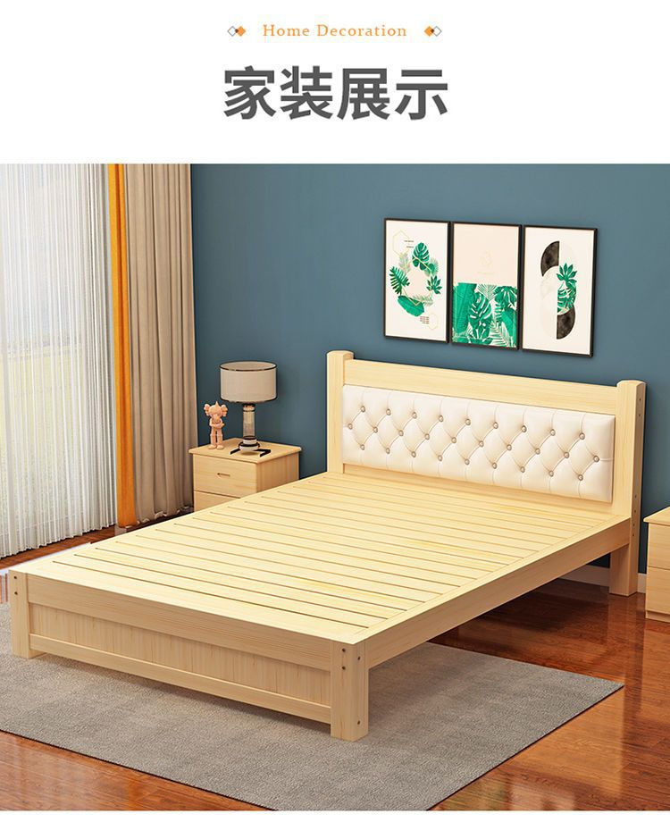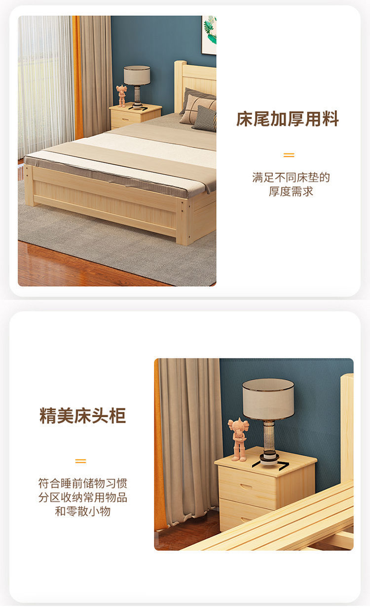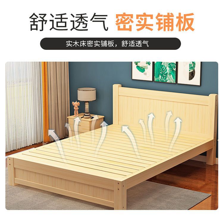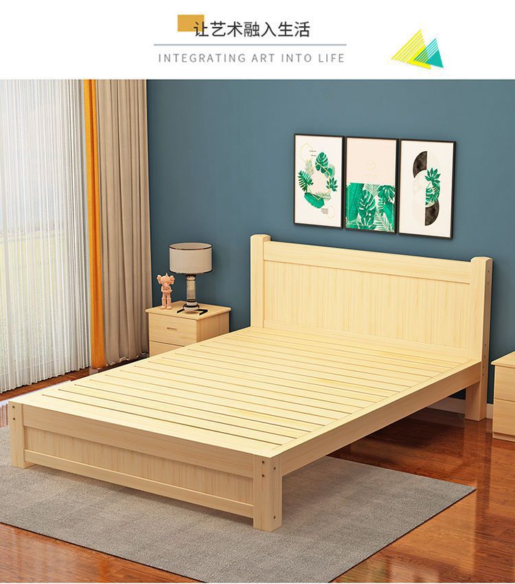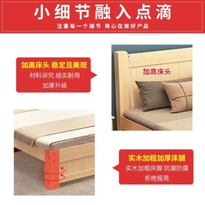 Giường gỗ đặc phòng cho thuê đơn giản hiện đại giường đơn giường đôi tiết kiệm đơn giản giường gỗ thông giường đơn tiết kiệm