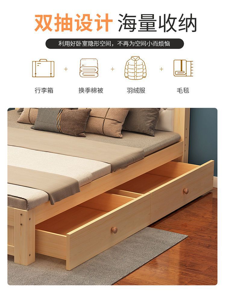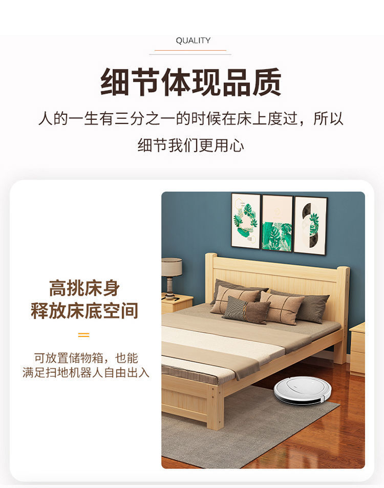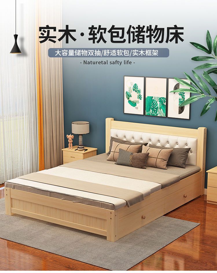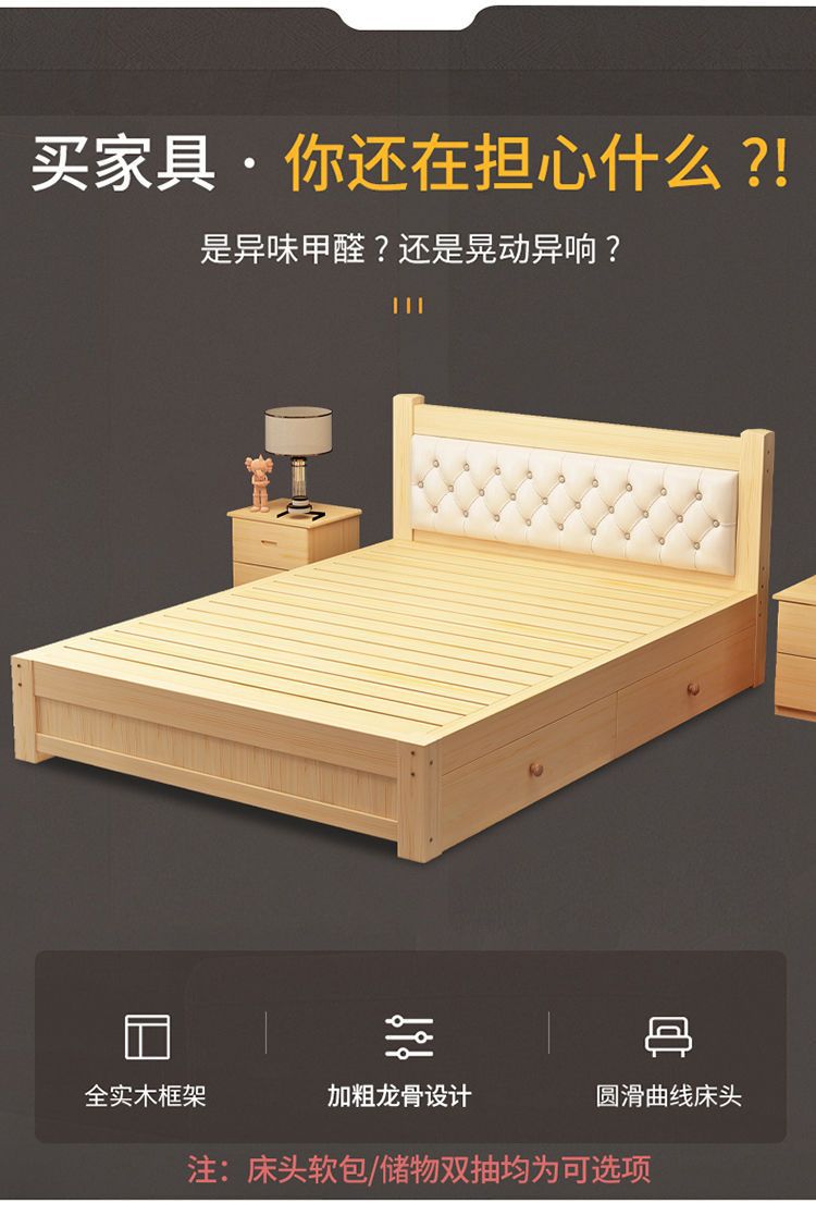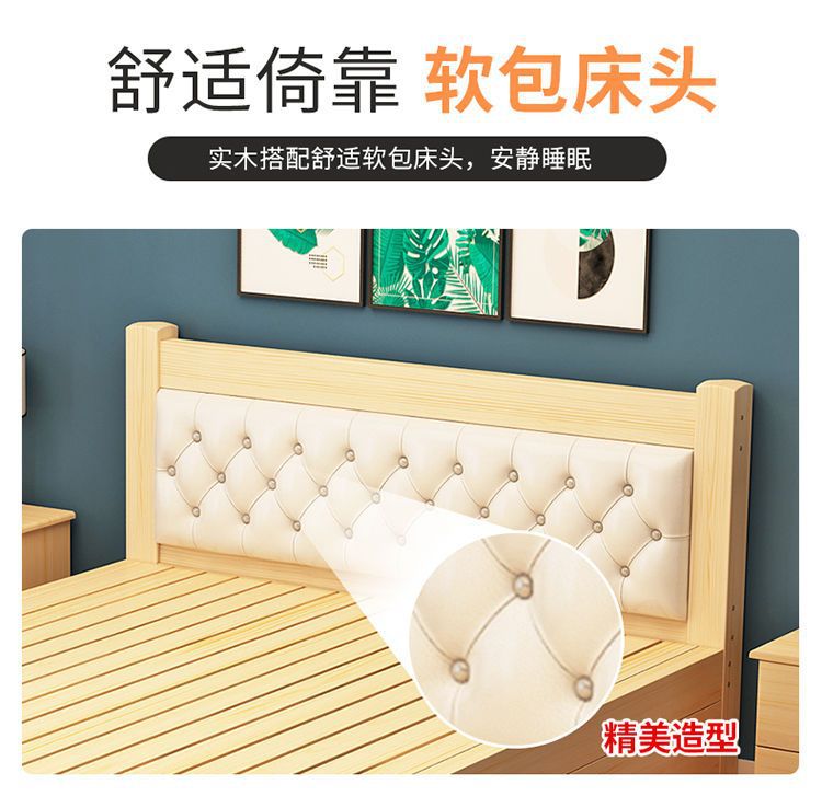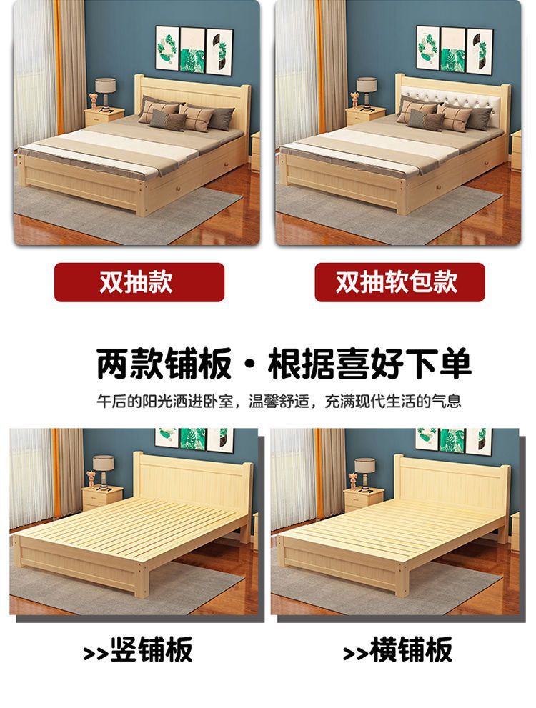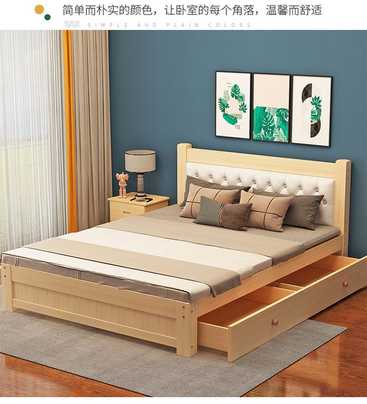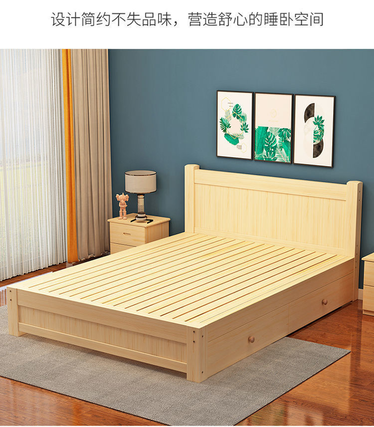 Giường gỗ đặc phòng cho thuê đơn giản hiện đại giường đơn giường đôi tiết kiệm đơn giản giường gỗ thông giường đơn tiết kiệm