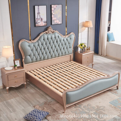 Giường gỗ mỹ nghệ giường đôi phòng ngủ master giường cưới đơn giản hiện đại giường ngủ công chúa cao cấp 1.8m giường ngủ cao cấp Châu Âu