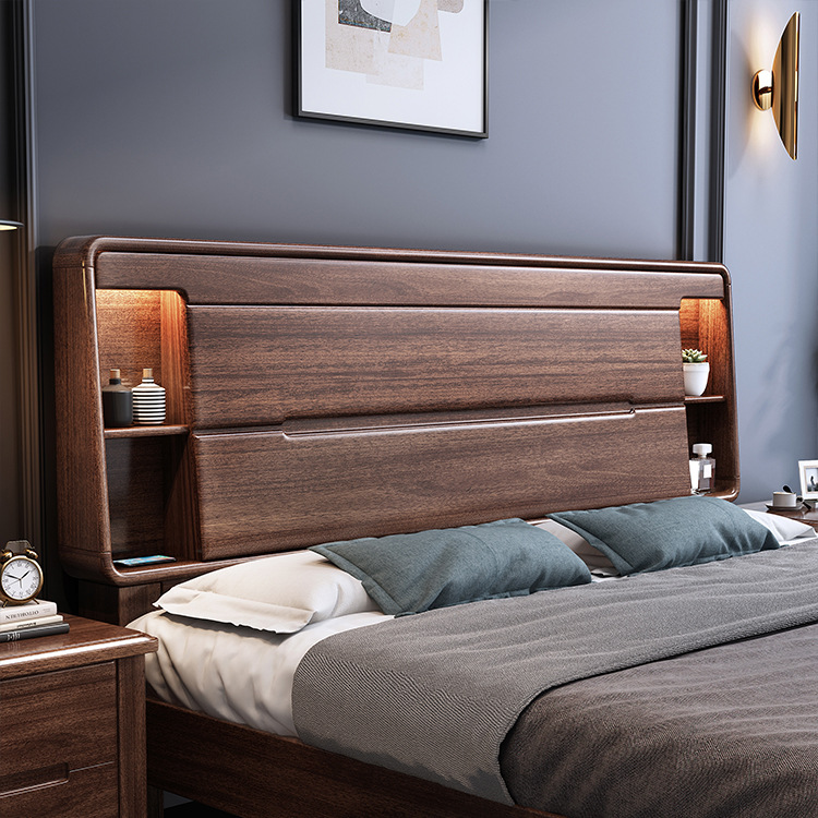 Giường gỗ nguyên khối 1,8m hiện đại tối giản tại nhà đôi phòng ngủ chính giường lớn 2*2,2m căn hộ nhỏ lưu trữ 1,5m giường cưới