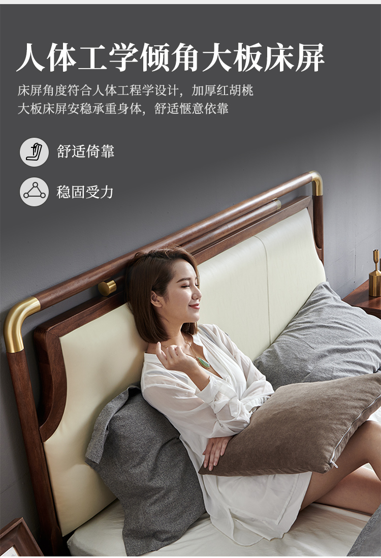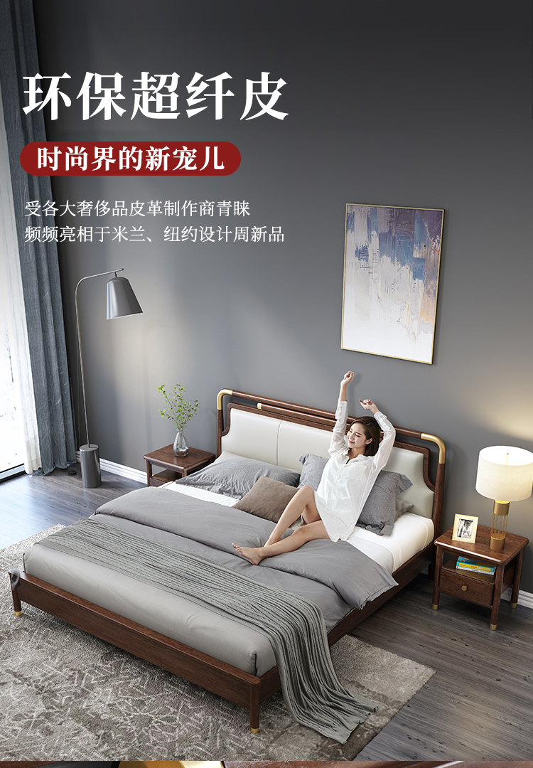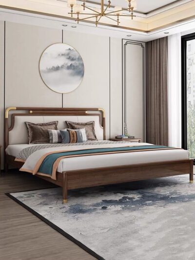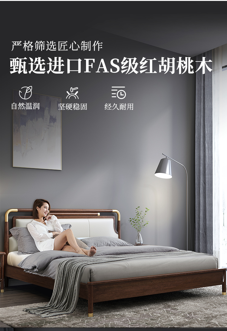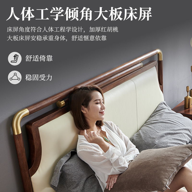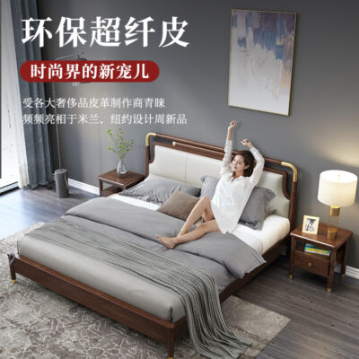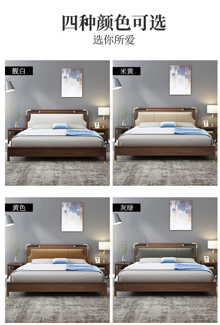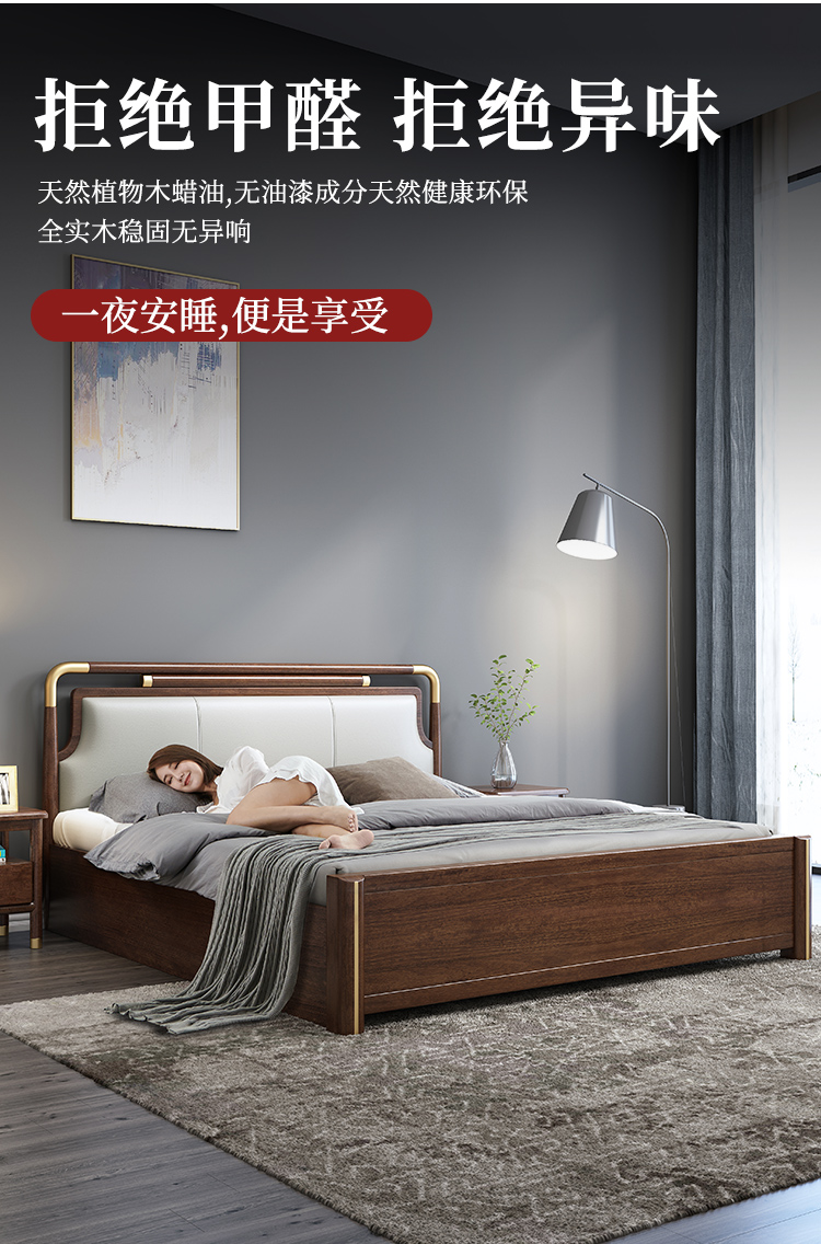 Giường gỗ nguyên khối Bắc Âu Giường cưới 1,8m mới phong cách Trung Quốc nhẹ nhàng sang trọng 1.5 quả óc chó nhà máy bán hàng trực tiếp giường giường đôi giường mới