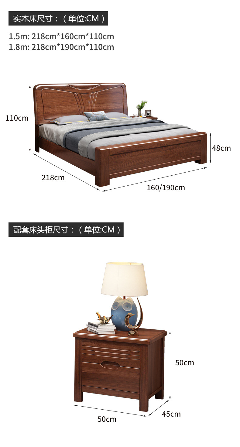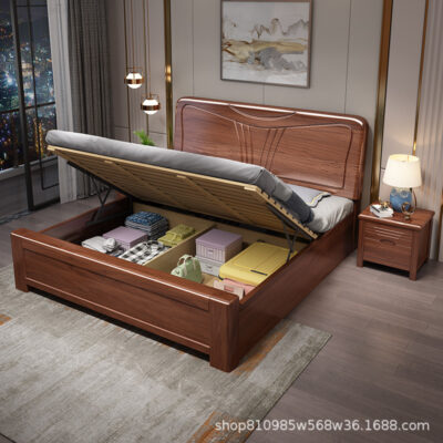 Giường gỗ nguyên khối kiểu Trung Quốc Giường đôi 1,8m hiện đại kiểu Trung Quốc 1,5m có ngăn kéo hộp đựng đồ giường chính nhà máy bán hàng trực tiếp