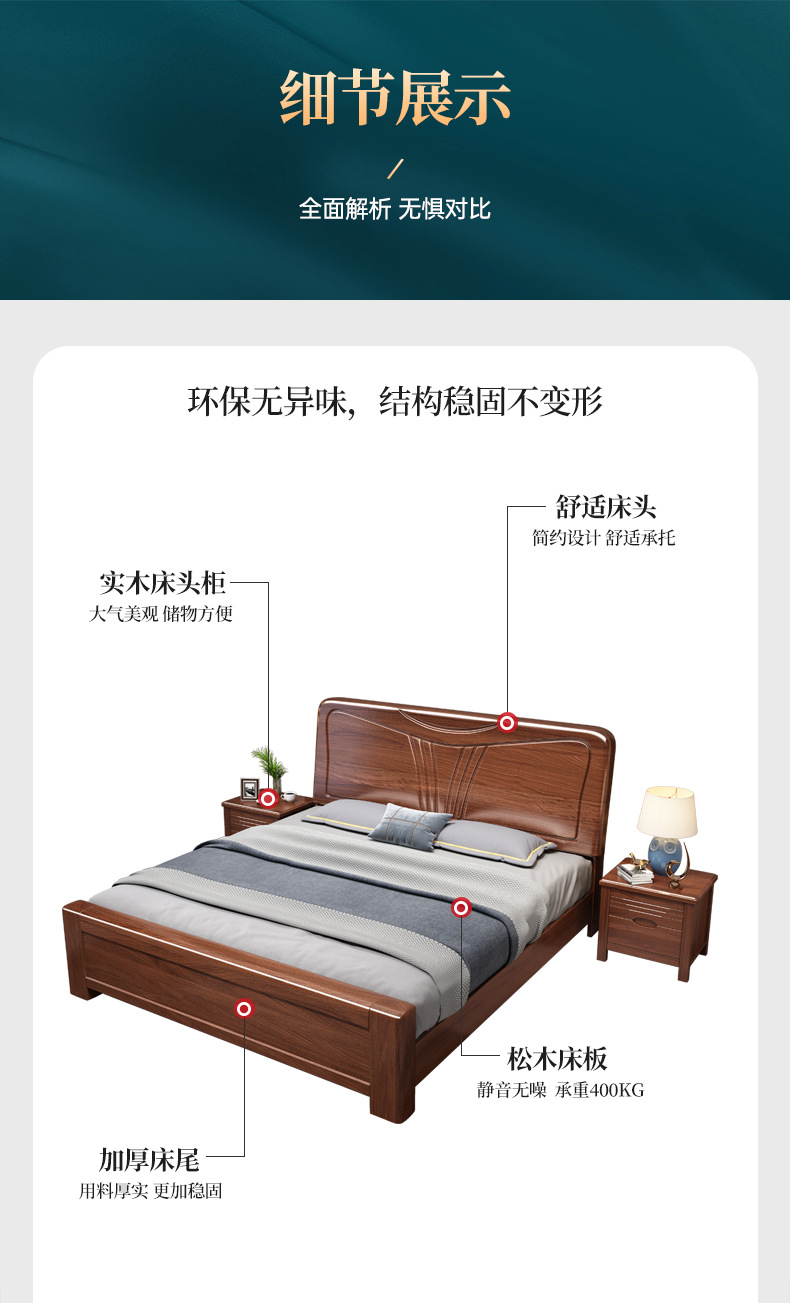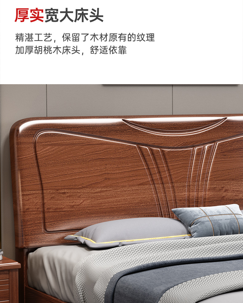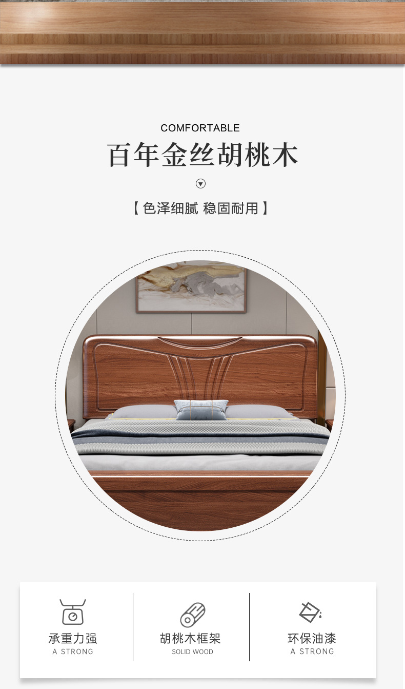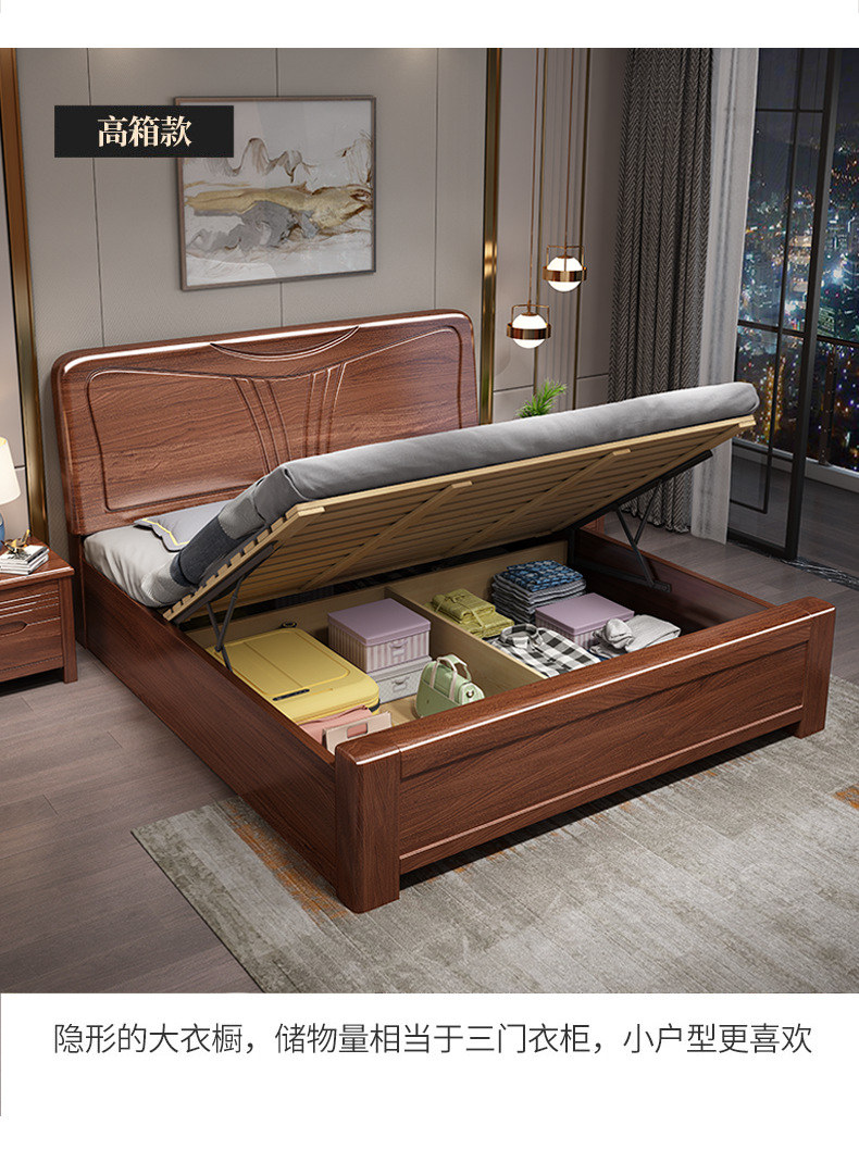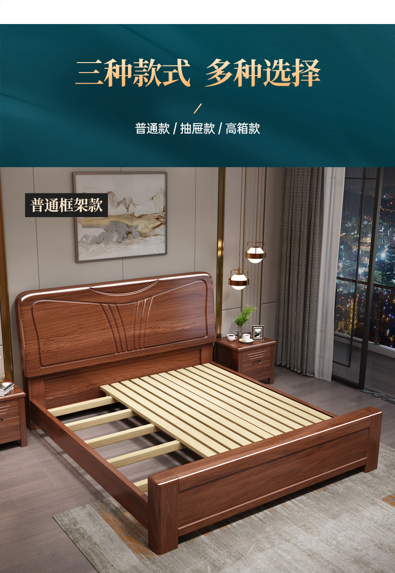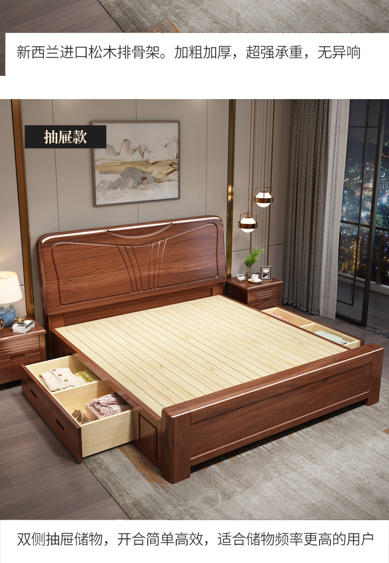 Giường gỗ nguyên khối kiểu Trung Quốc Giường đôi 1,8m hiện đại kiểu Trung Quốc 1,5m có ngăn kéo hộp đựng đồ giường chính nhà máy bán hàng trực tiếp