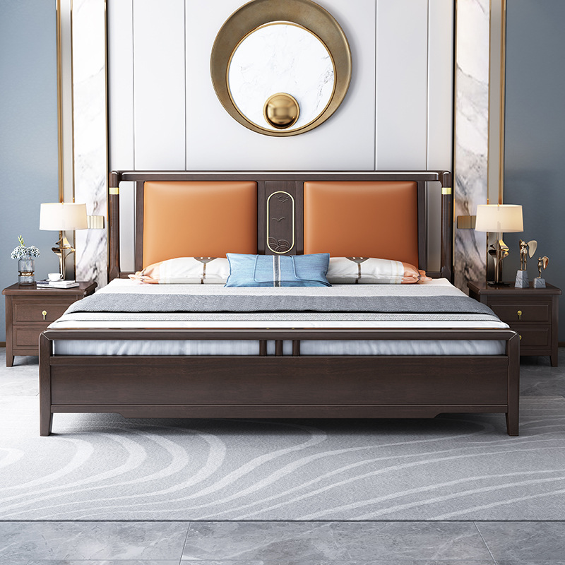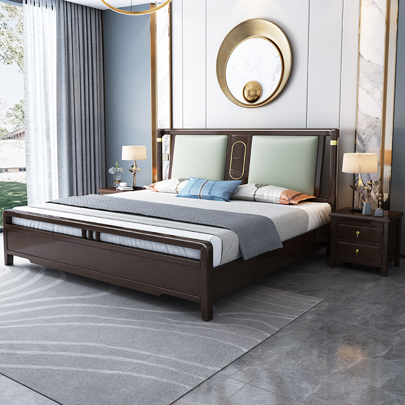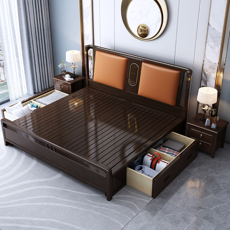 Giường gỗ nguyên khối kiểu Trung Quốc mới Giường đôi 1,8m Giường đôi 1,5m hiện đại nội thất phòng ngủ tối giản Giường hôn nhân lưu trữ phong cách Trung Quốc
