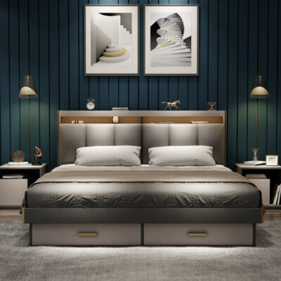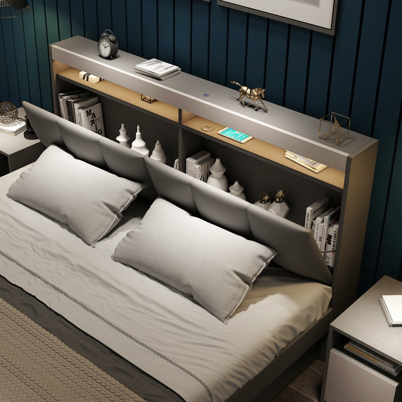 Giường gỗ nguyên khối tối giản hiện đại Phòng ngủ chính nhẹ nhàng Giường đôi sang trọng Cao 1,2m Hộp lưu trữ Giường bán trực tiếp tại nhà máy Giường cưới 2m