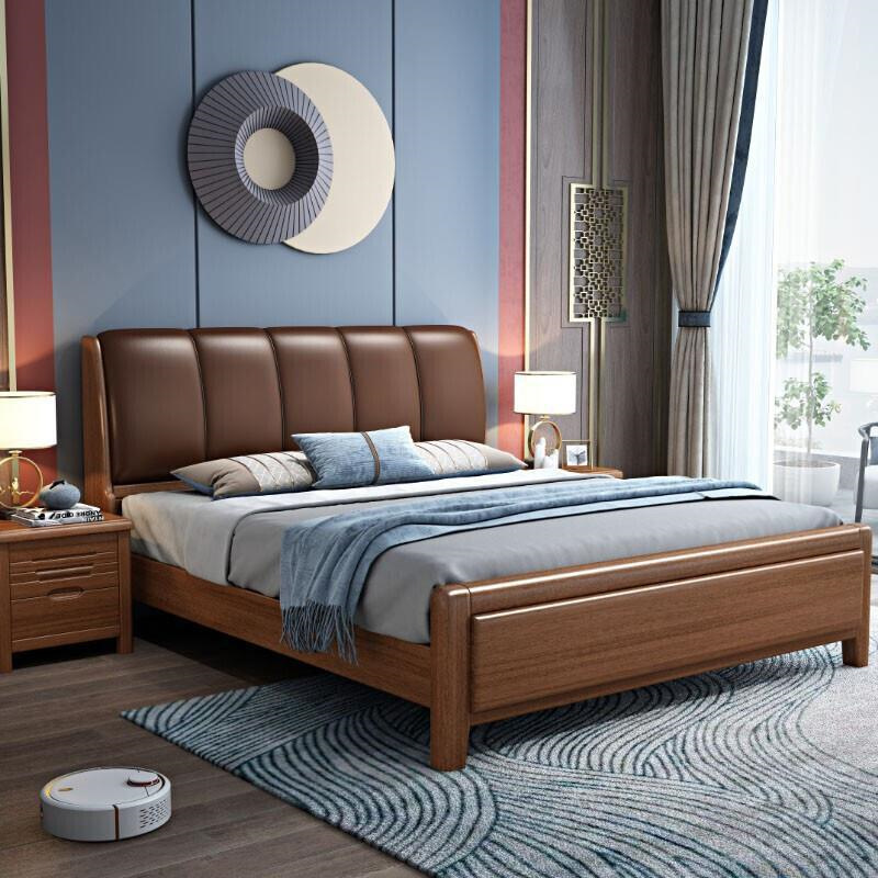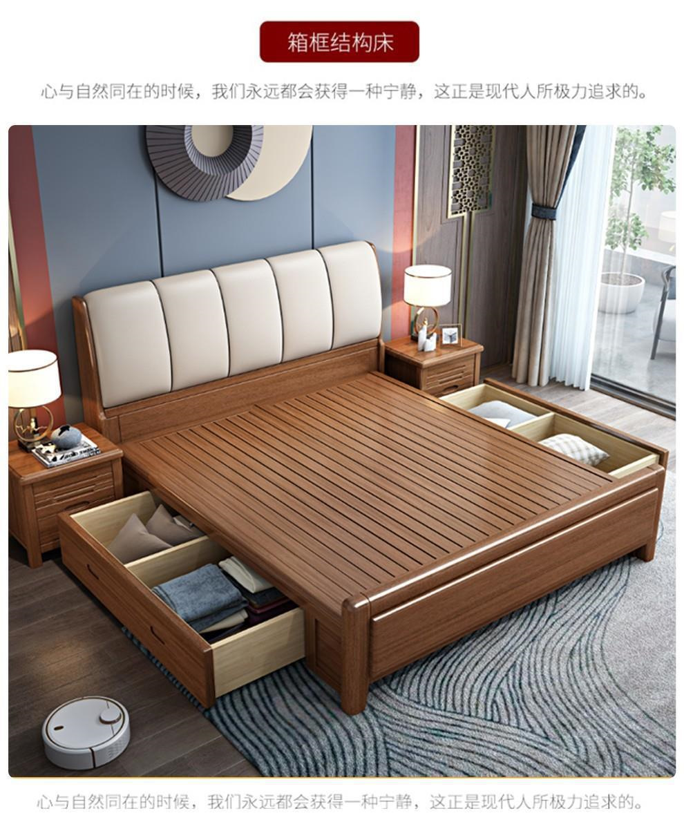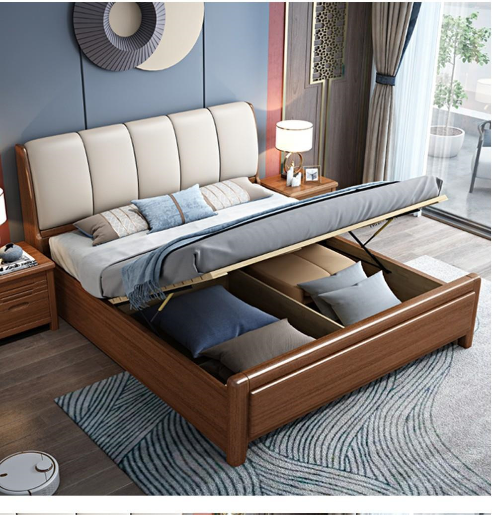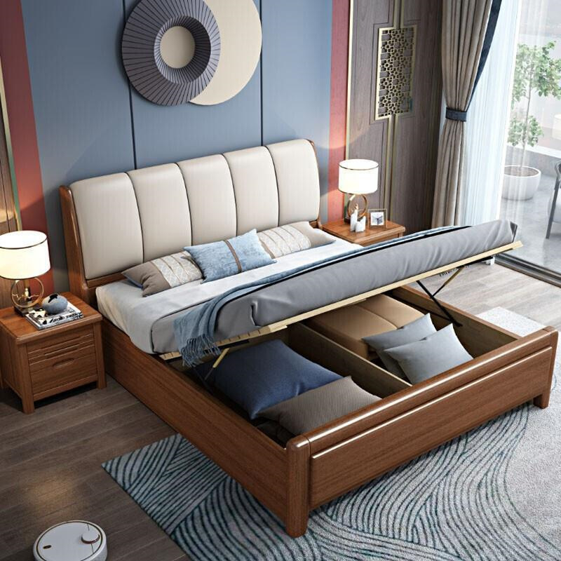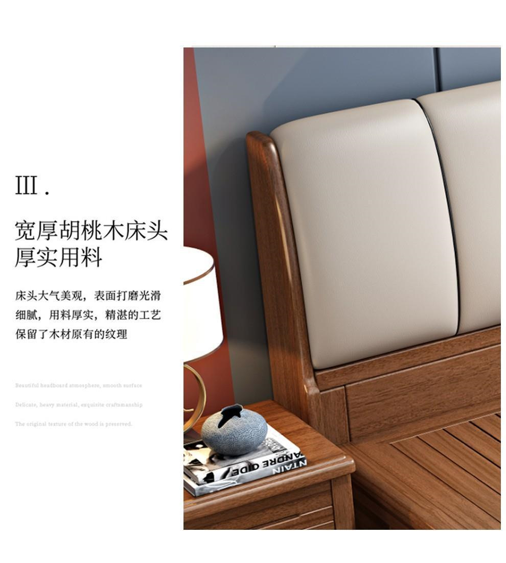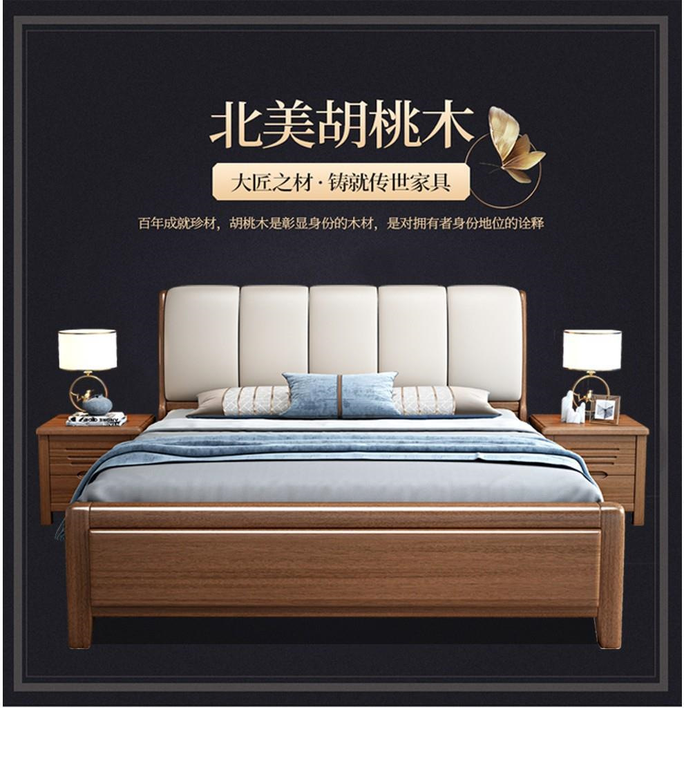 Giường gỗ óc chó kiểu Trung Quốc hiện đại đơn giản Giường đôi 1,5m 1,8m lưng mềm cao hộp đựng Giường gỗ nguyên khối