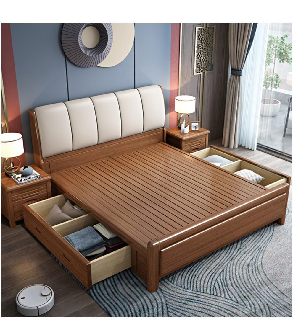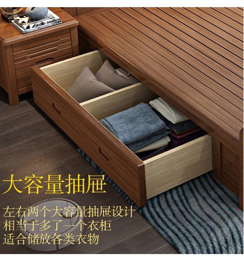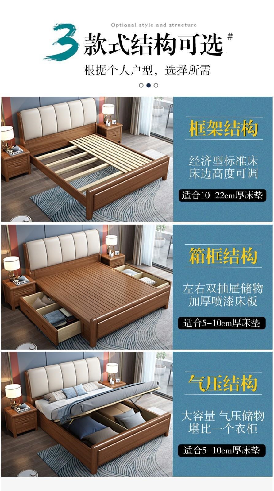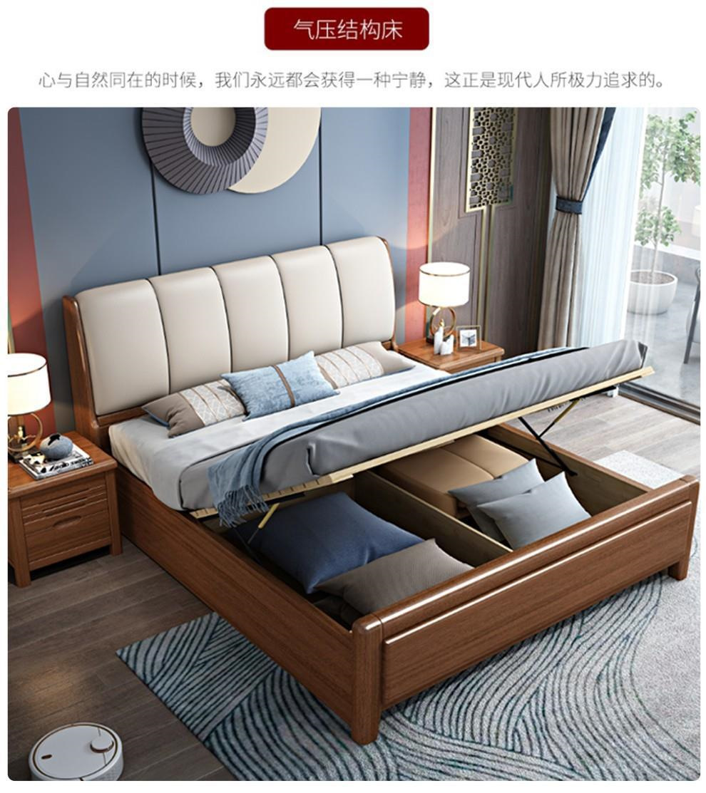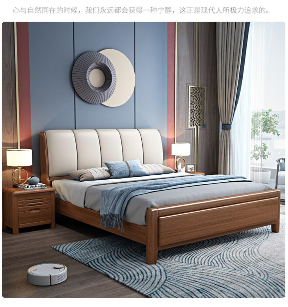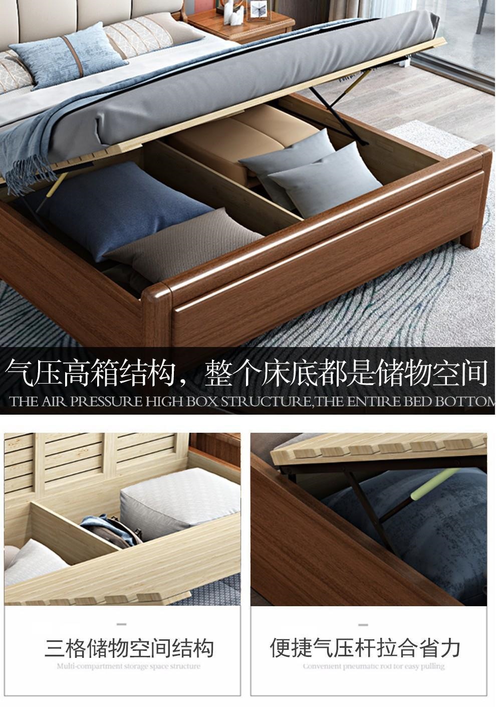 Giường gỗ óc chó kiểu Trung Quốc hiện đại đơn giản Giường đôi 1,5m 1,8m lưng mềm cao hộp đựng Giường gỗ nguyên khối