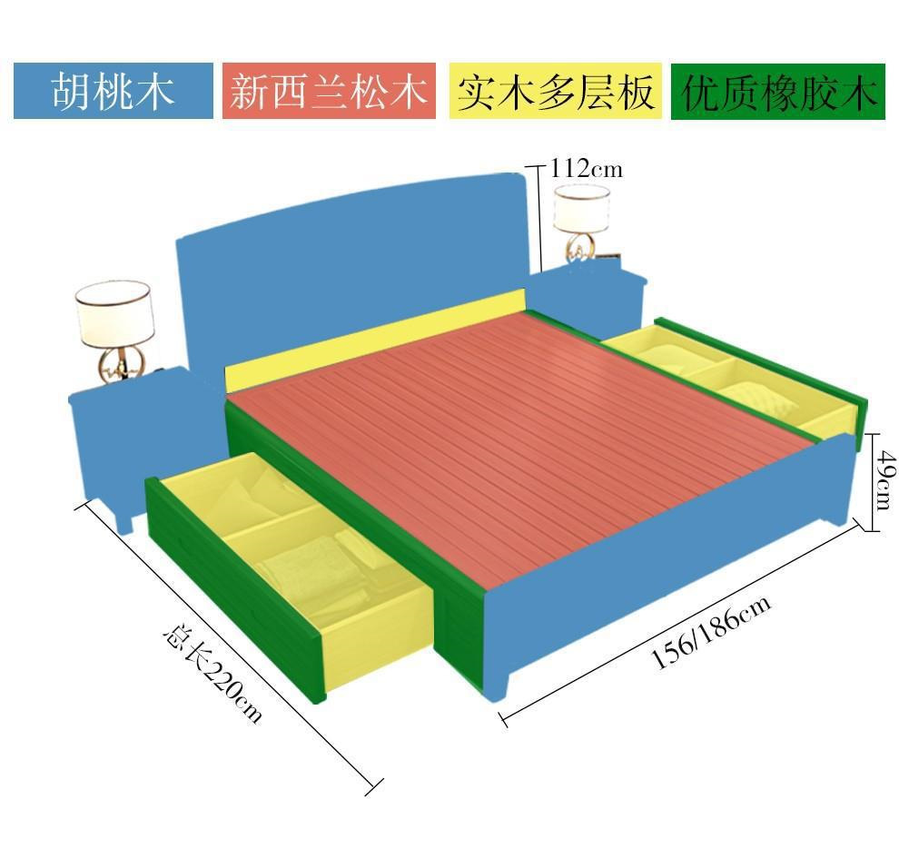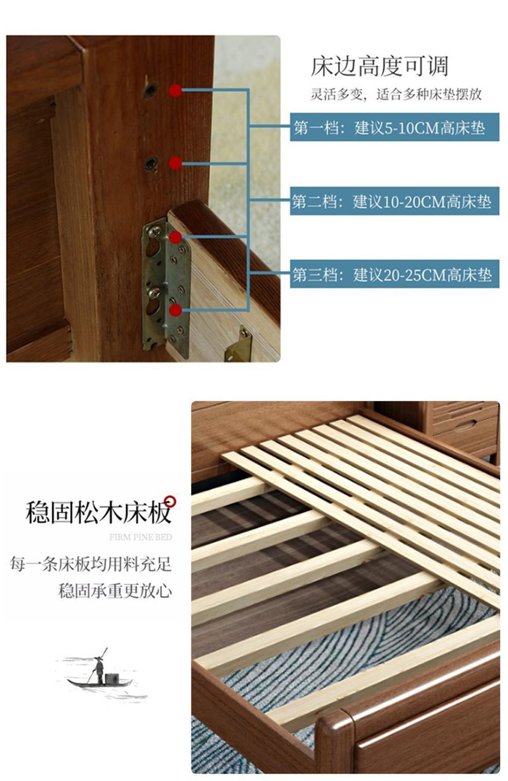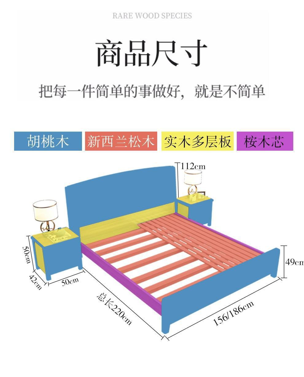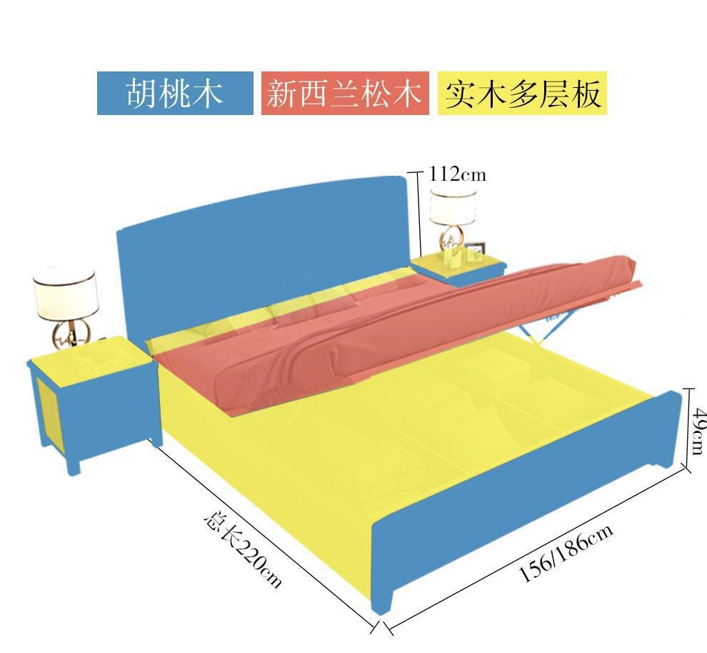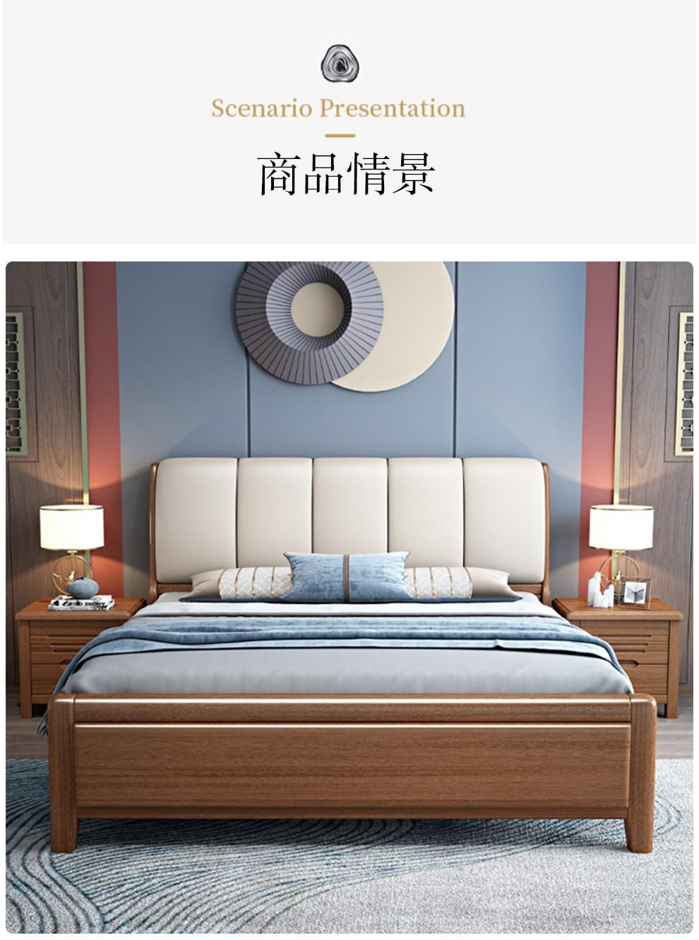 Giường gỗ óc chó kiểu Trung Quốc hiện đại đơn giản Giường đôi 1,5m 1,8m lưng mềm cao hộp đựng Giường gỗ nguyên khối