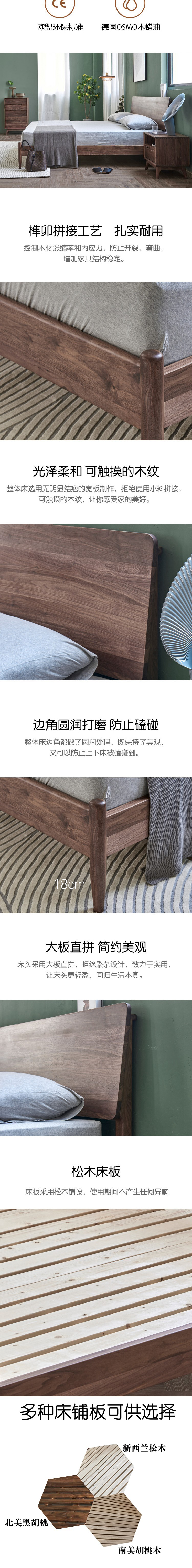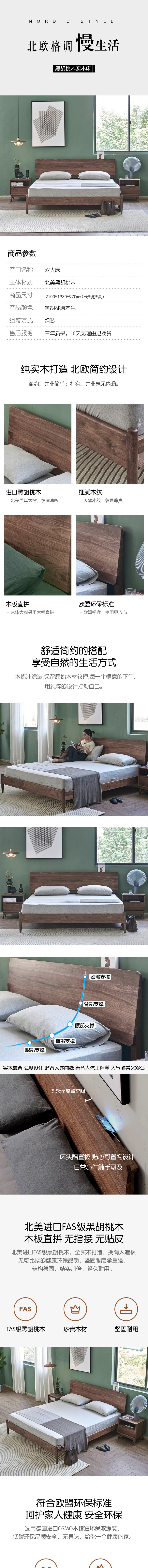 Giường gỗ óc chó màu đen Bắc Mỹ Đồ nội thất bằng gỗ rắn kiểu Bắc Âu tối giản hiện đại giường cưới đôi phòng ngủ kiểu Trung Quốc mới 1,8m