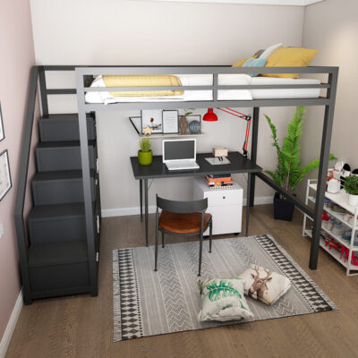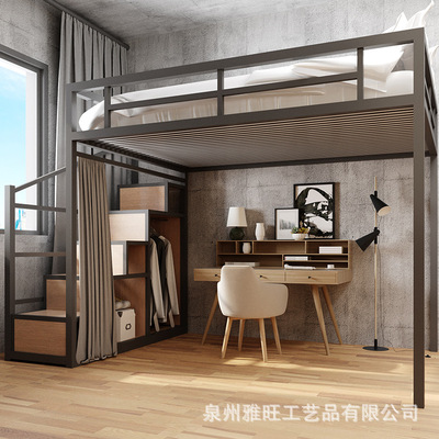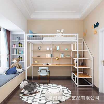 Giường nâng đa năng bằng sắt rèn kiểu Bắc Âu, phòng ngủ căn hộ nhỏ, giường trên và bàn dưới, khung giường gác mái tiết kiệm không gian cho căn hộ đơn