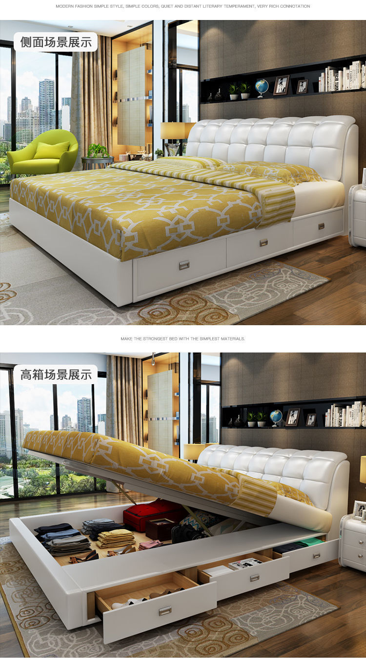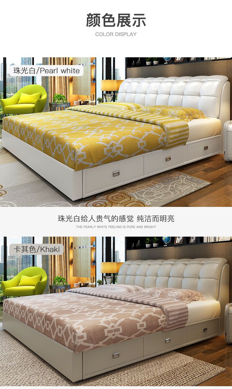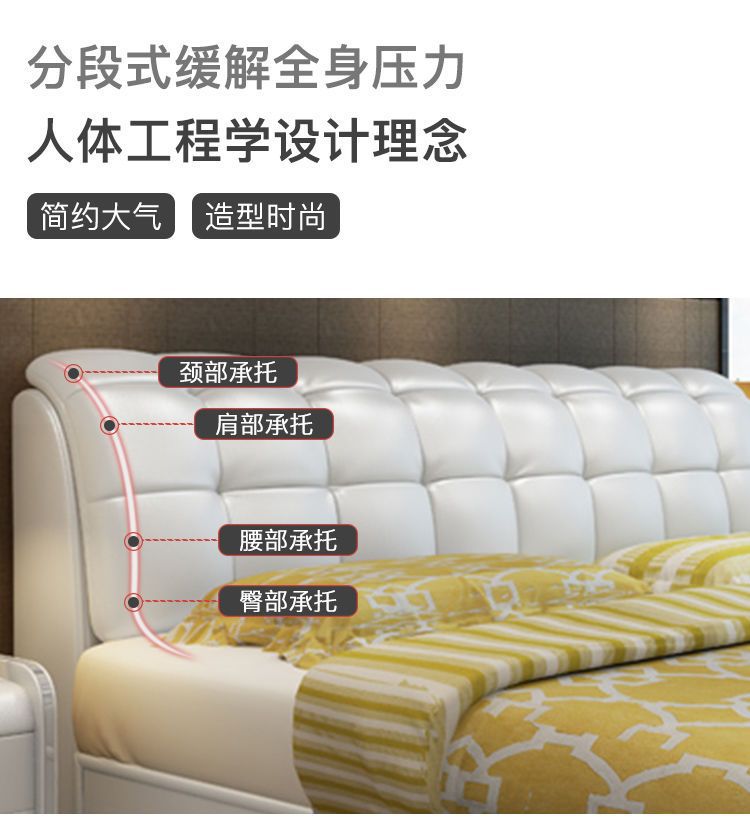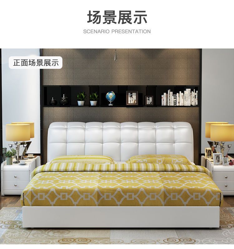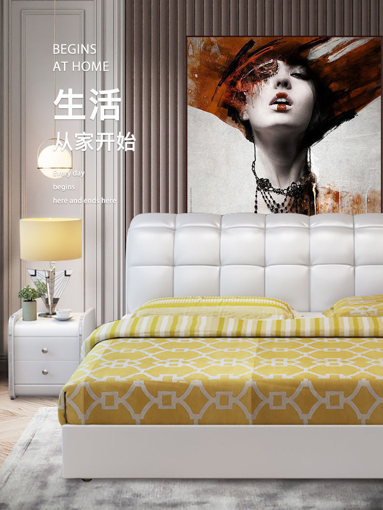 Giường ngủ bọc da đơn giản hiện đại Giường đôi Giường ngủ bọc da Phòng ngủ Giường ngủ bọc da sang trọng Tựa lưng nghệ thuật Nội thất phòng ngủ