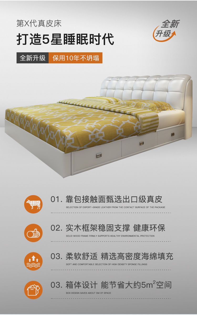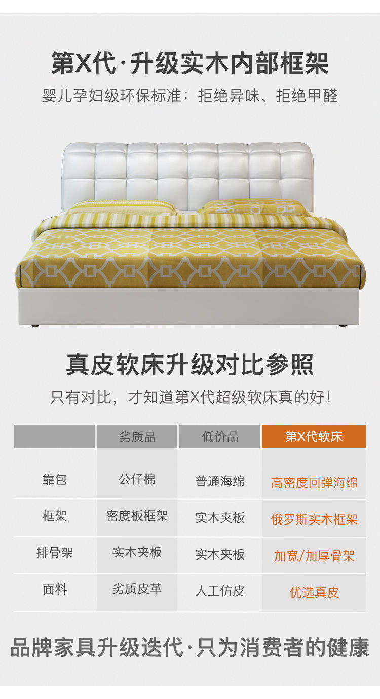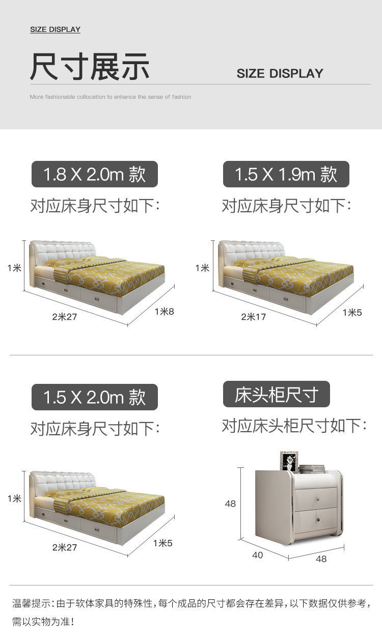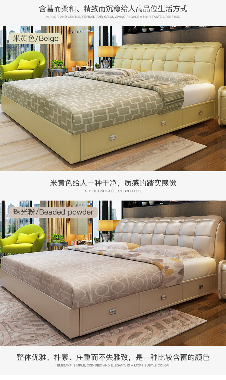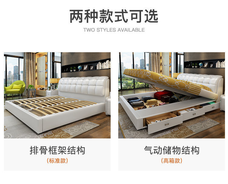 Giường ngủ bọc da đơn giản hiện đại Giường đôi Giường ngủ bọc da Phòng ngủ Giường ngủ bọc da sang trọng Tựa lưng nghệ thuật Nội thất phòng ngủ