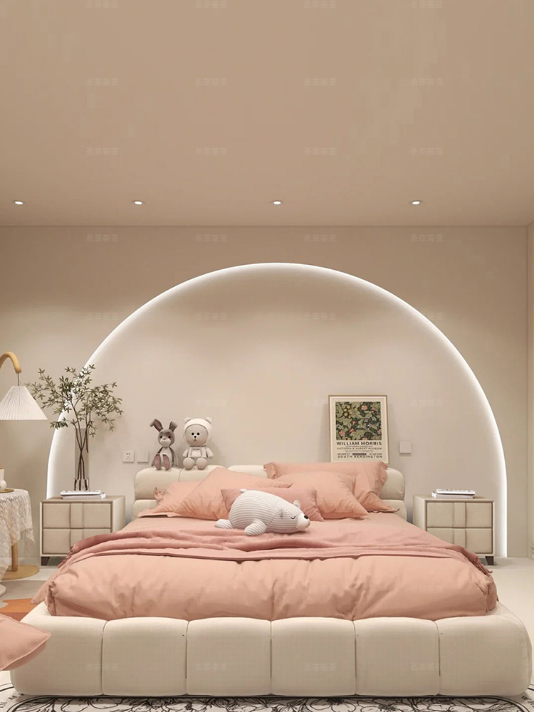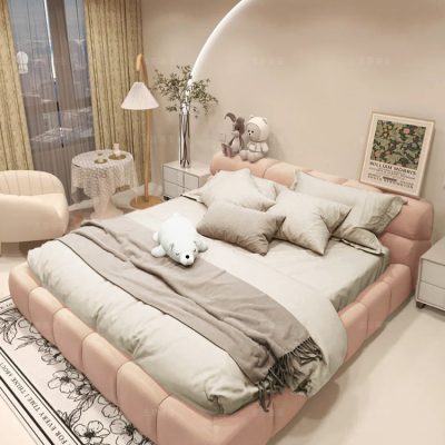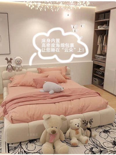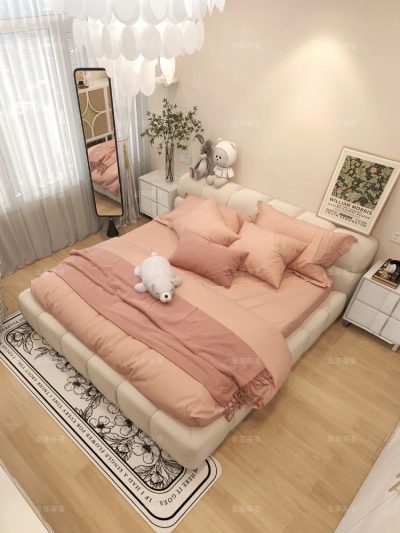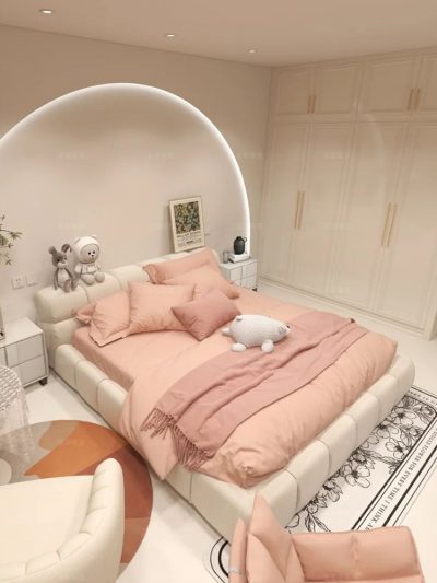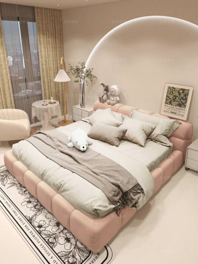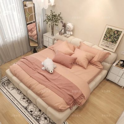 Giường ngủ bọc vải êm ái, cỡ lớn, màu sắc đơn giản , đep mắt.