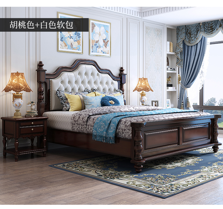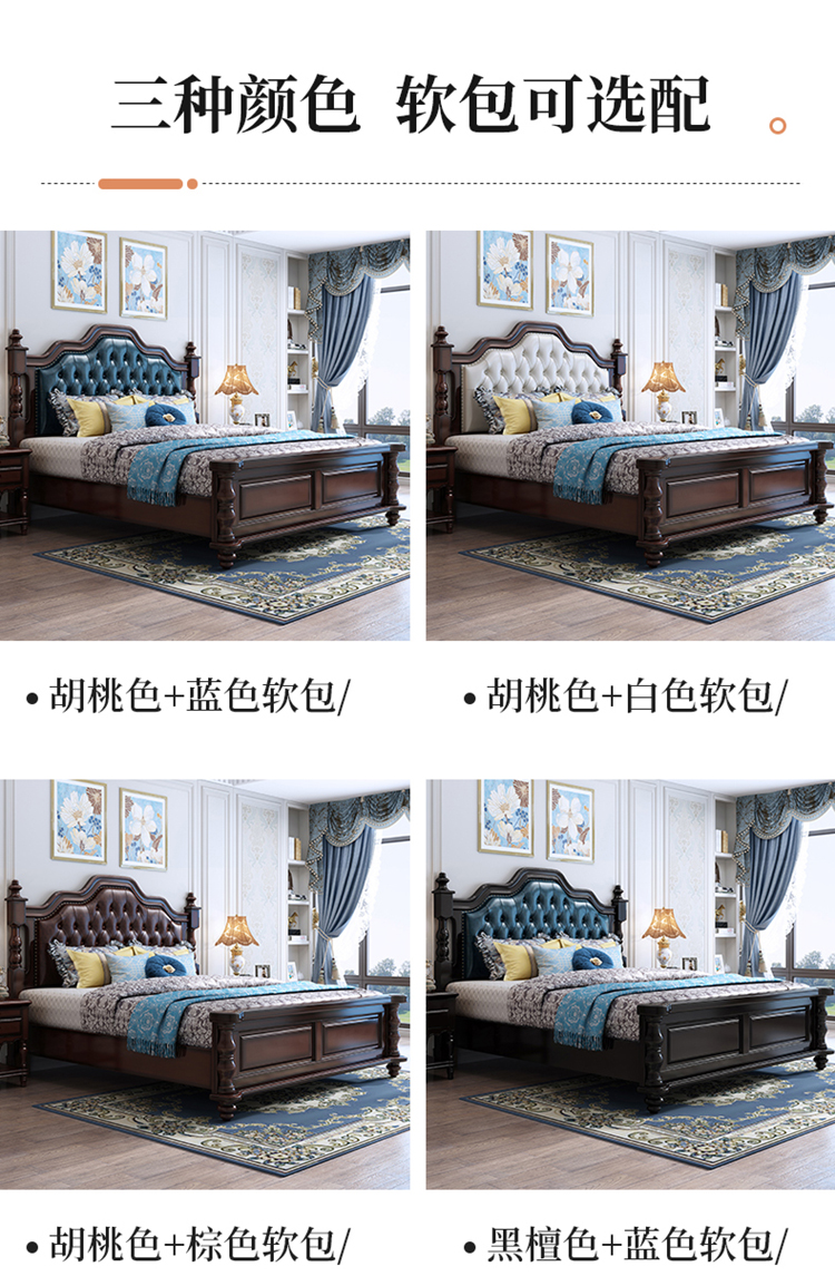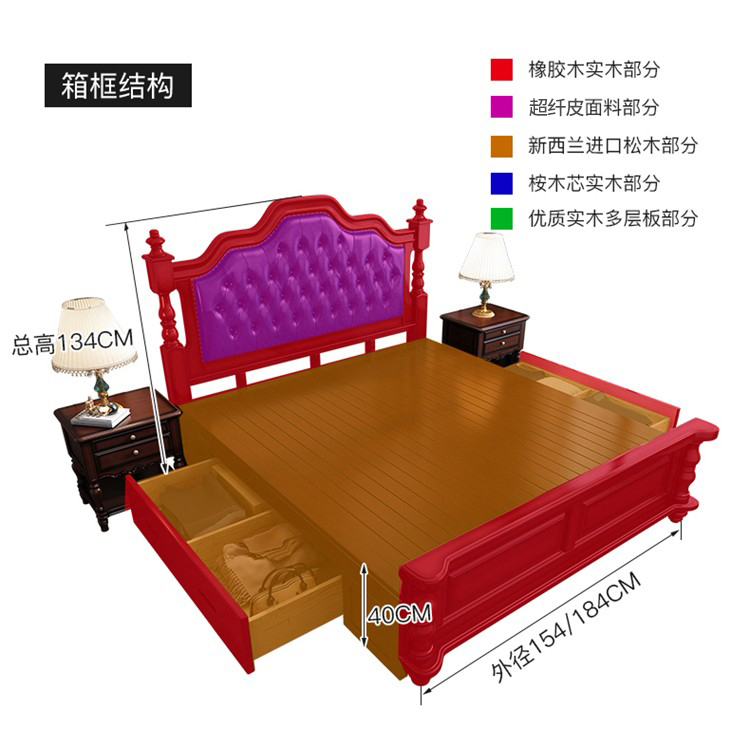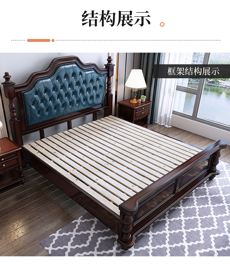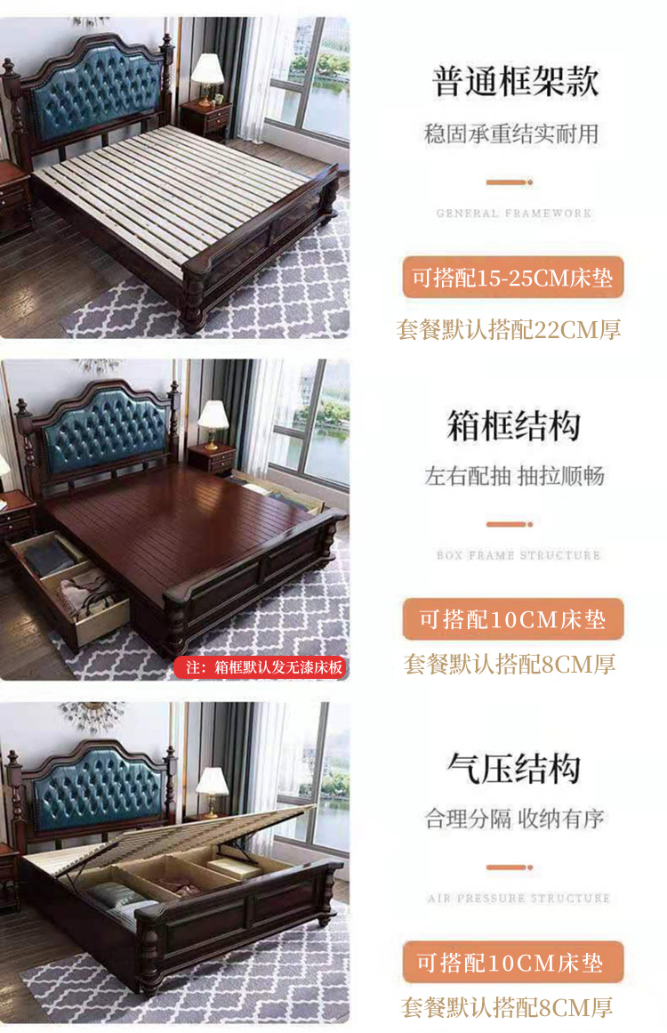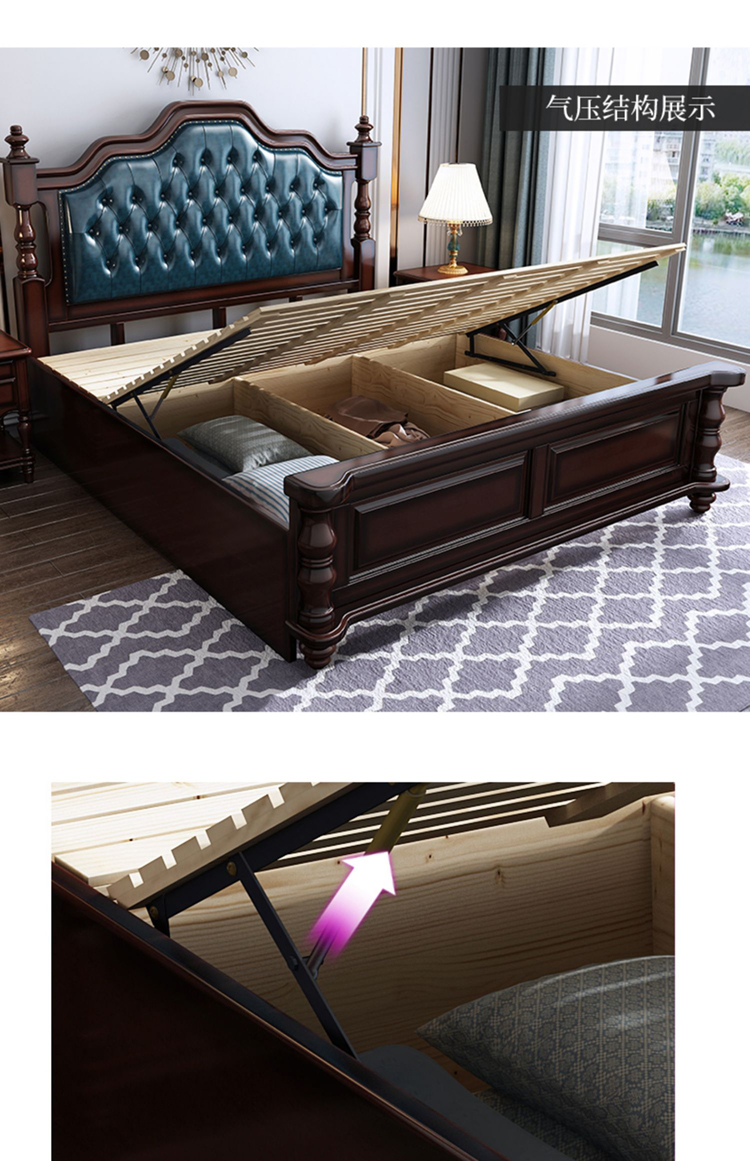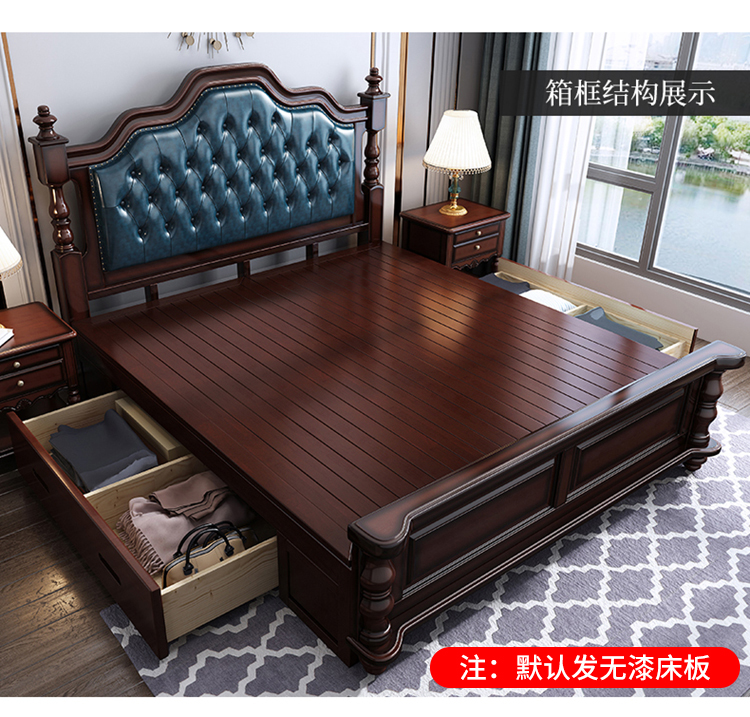 Giường ngủ gỗ nguyên khối kiểu Trung Quốc mới 1,8 mét Giường đôi đồng quê kiểu Mỹ giường đôi hiện đại lưu trữ tối giản đồ nội thất phòng ngủ giường cưới