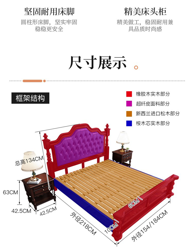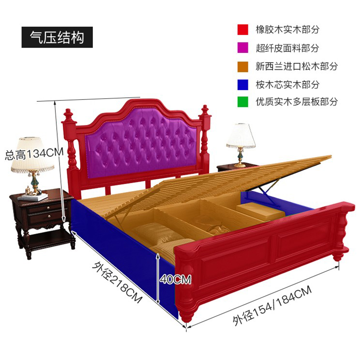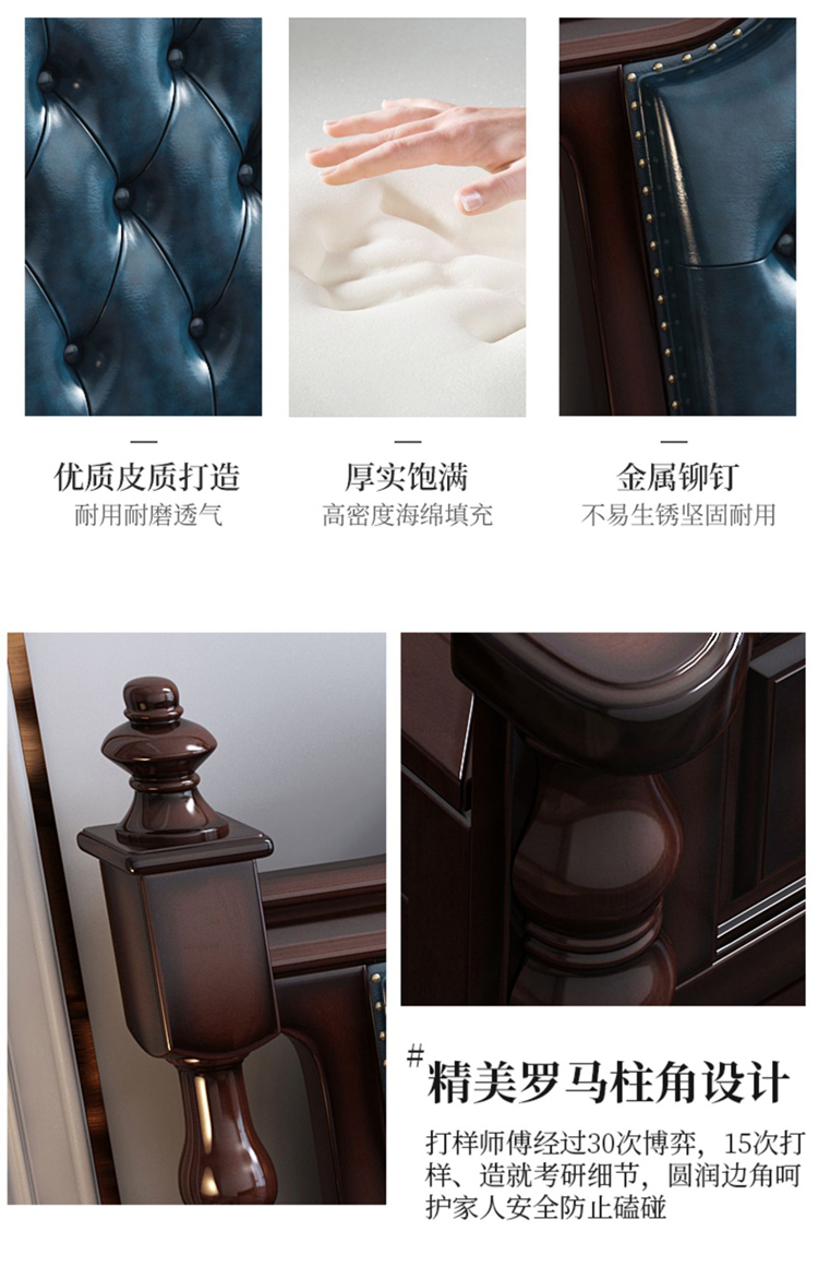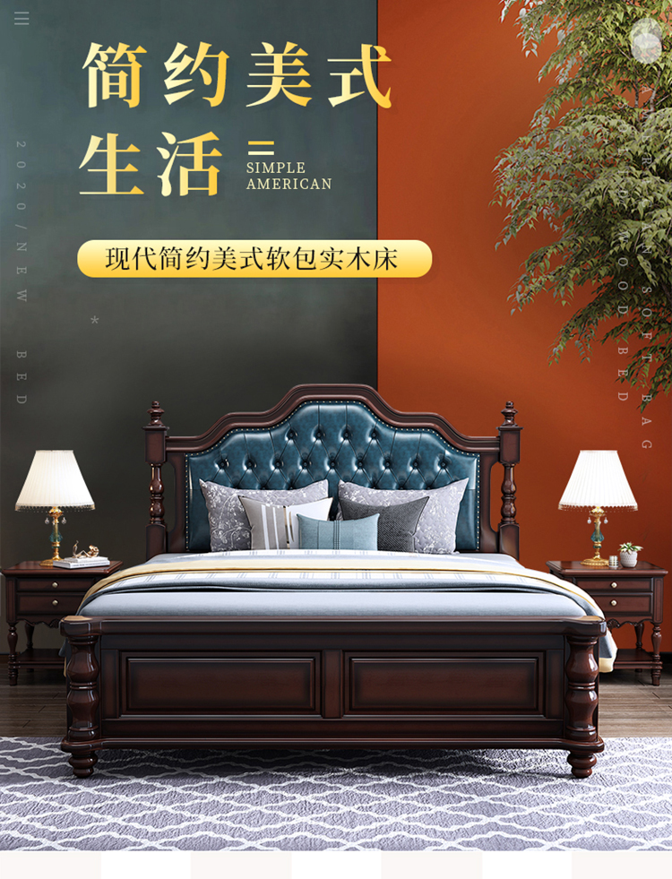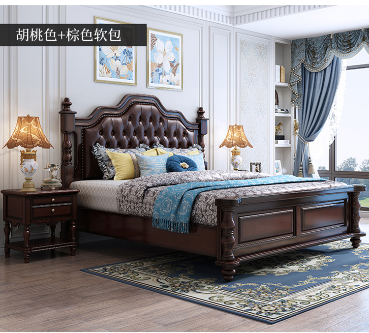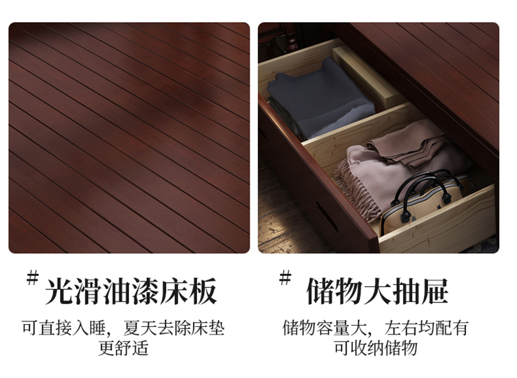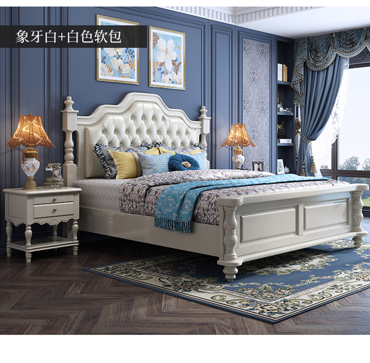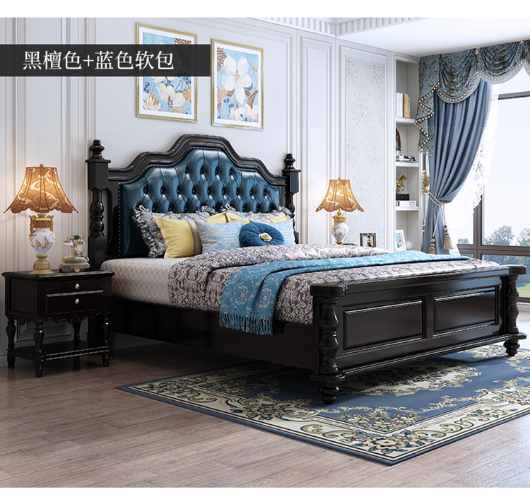 Giường ngủ gỗ nguyên khối kiểu Trung Quốc mới 1,8 mét Giường đôi đồng quê kiểu Mỹ giường đôi hiện đại lưu trữ tối giản đồ nội thất phòng ngủ giường cưới