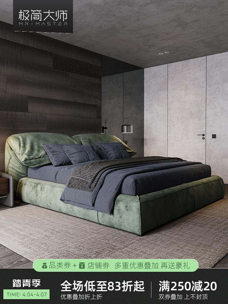 Giường ngủ nhập khẩu , khung gỗ , bọc vải , phong cách kiểu Ý tối giản.