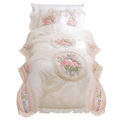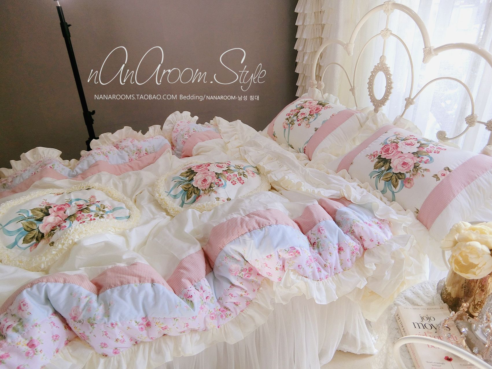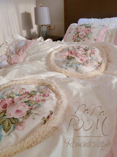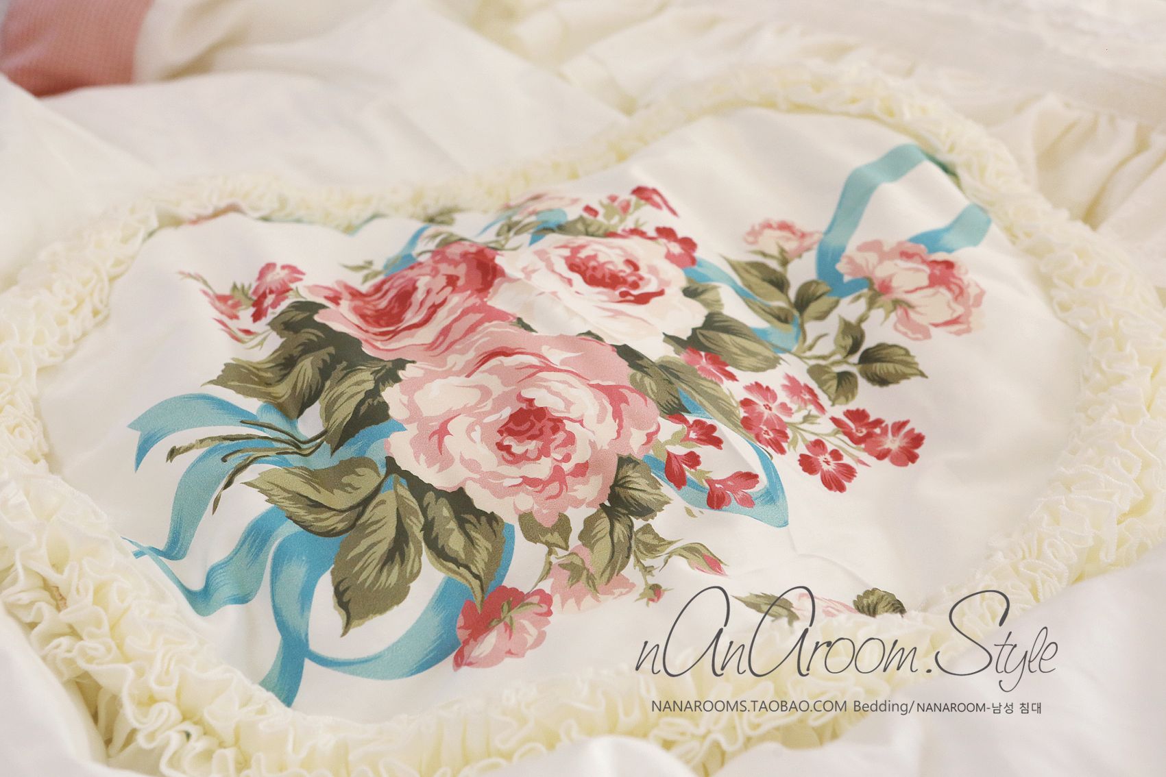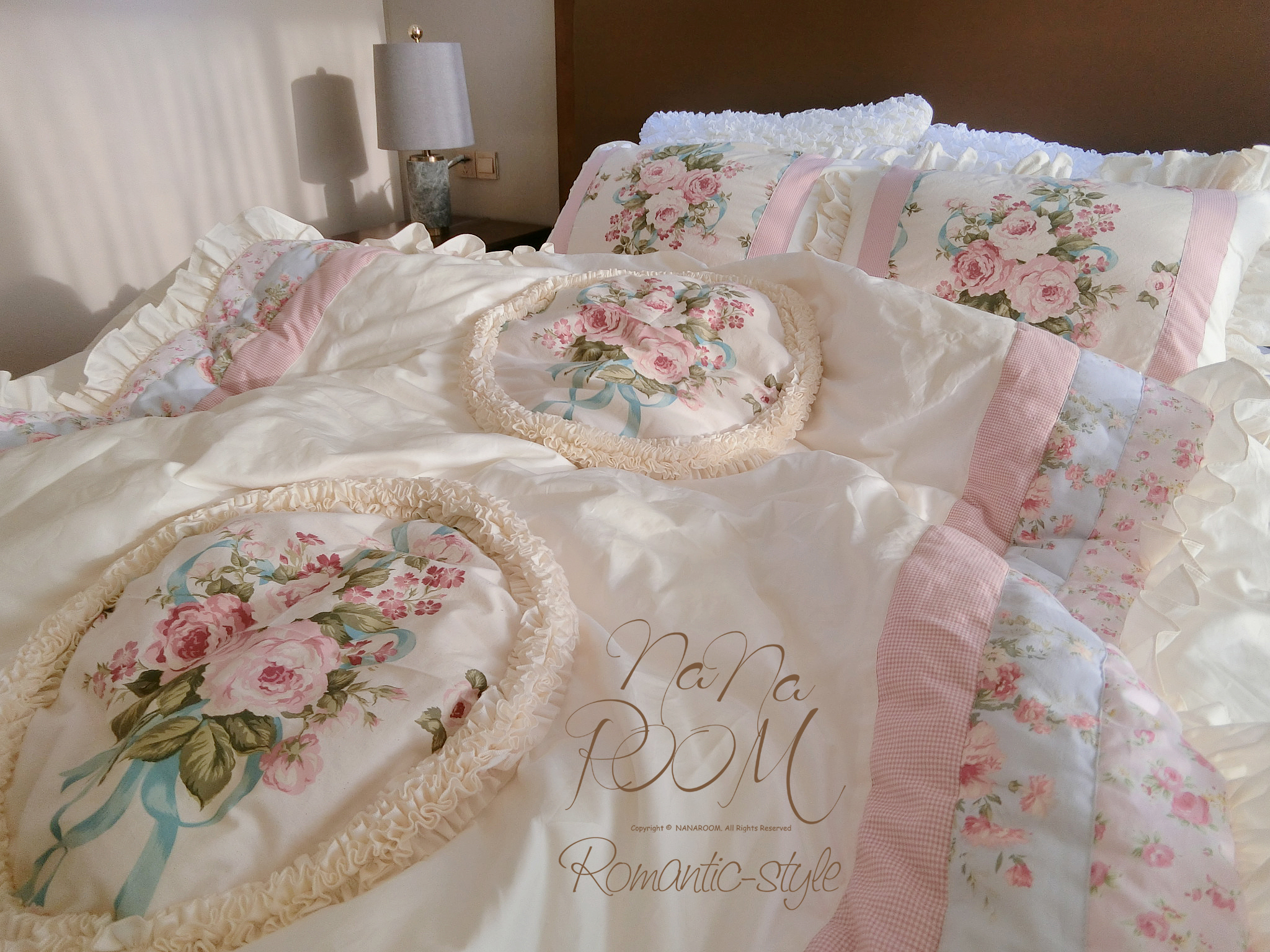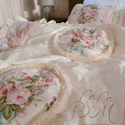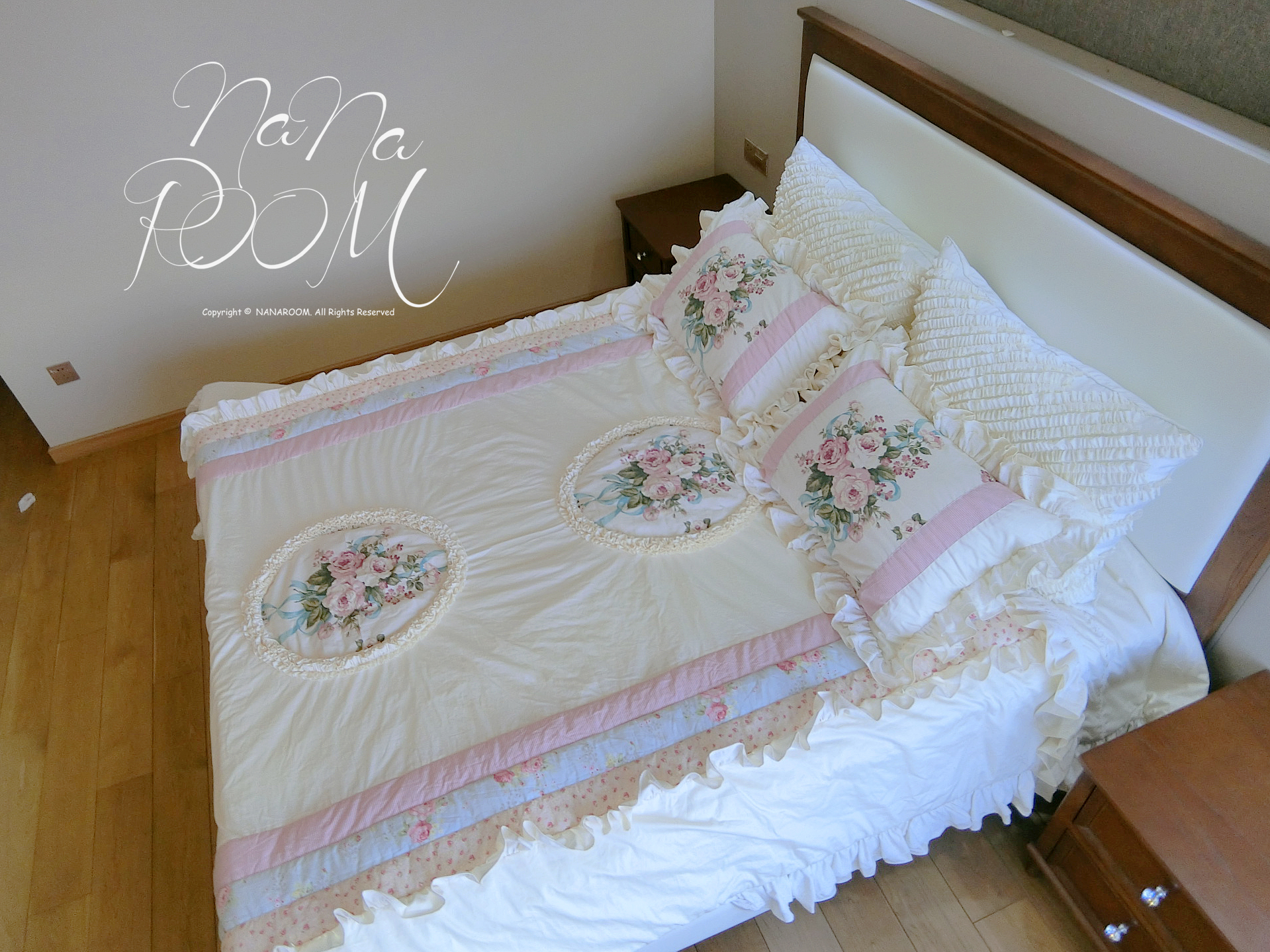 Giường ngủ nhập khẩu, màu be Provence hoa hồng, phong cách công chúa.