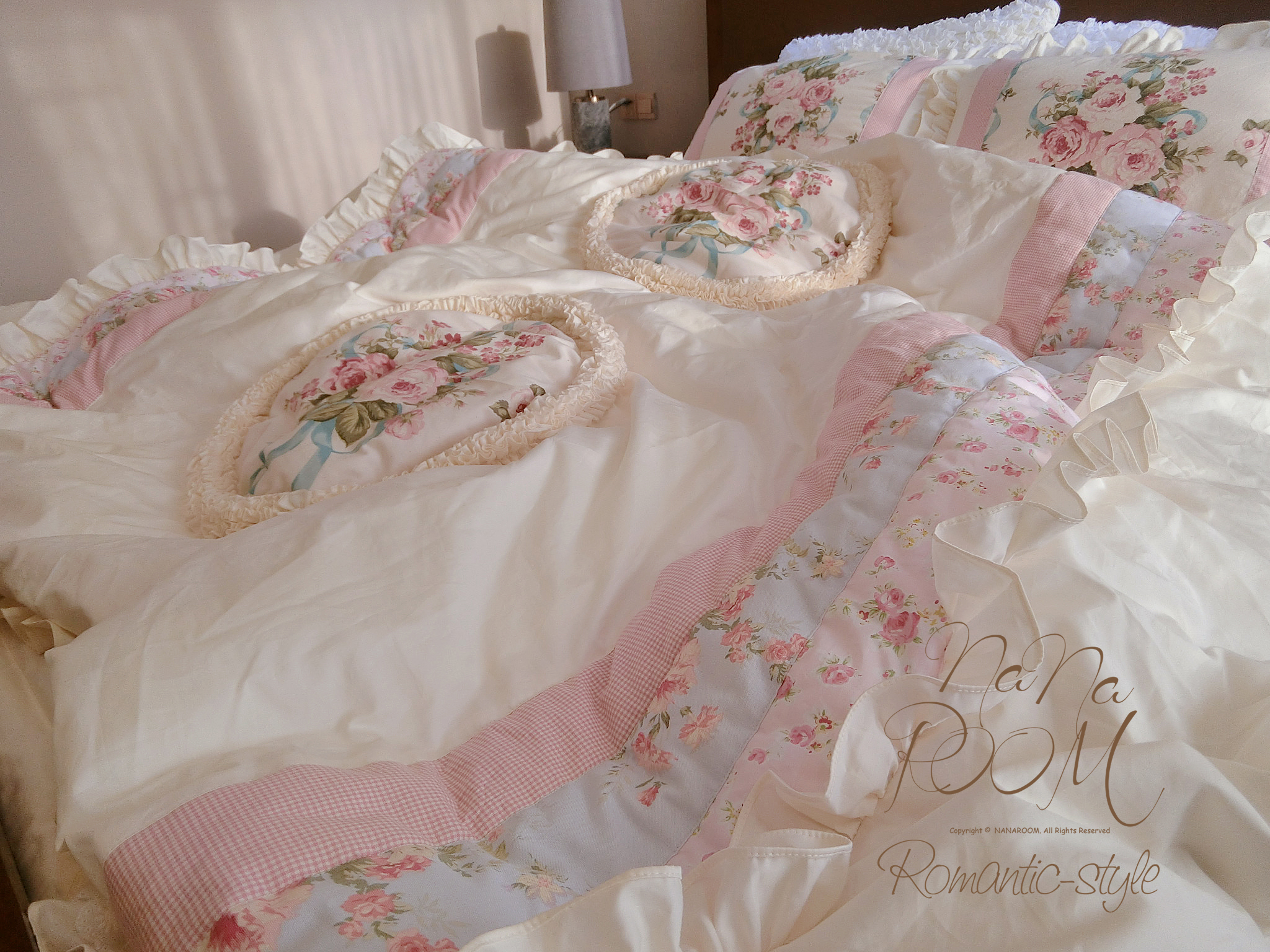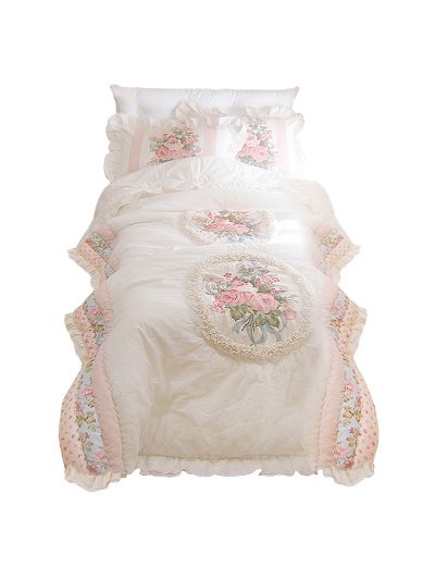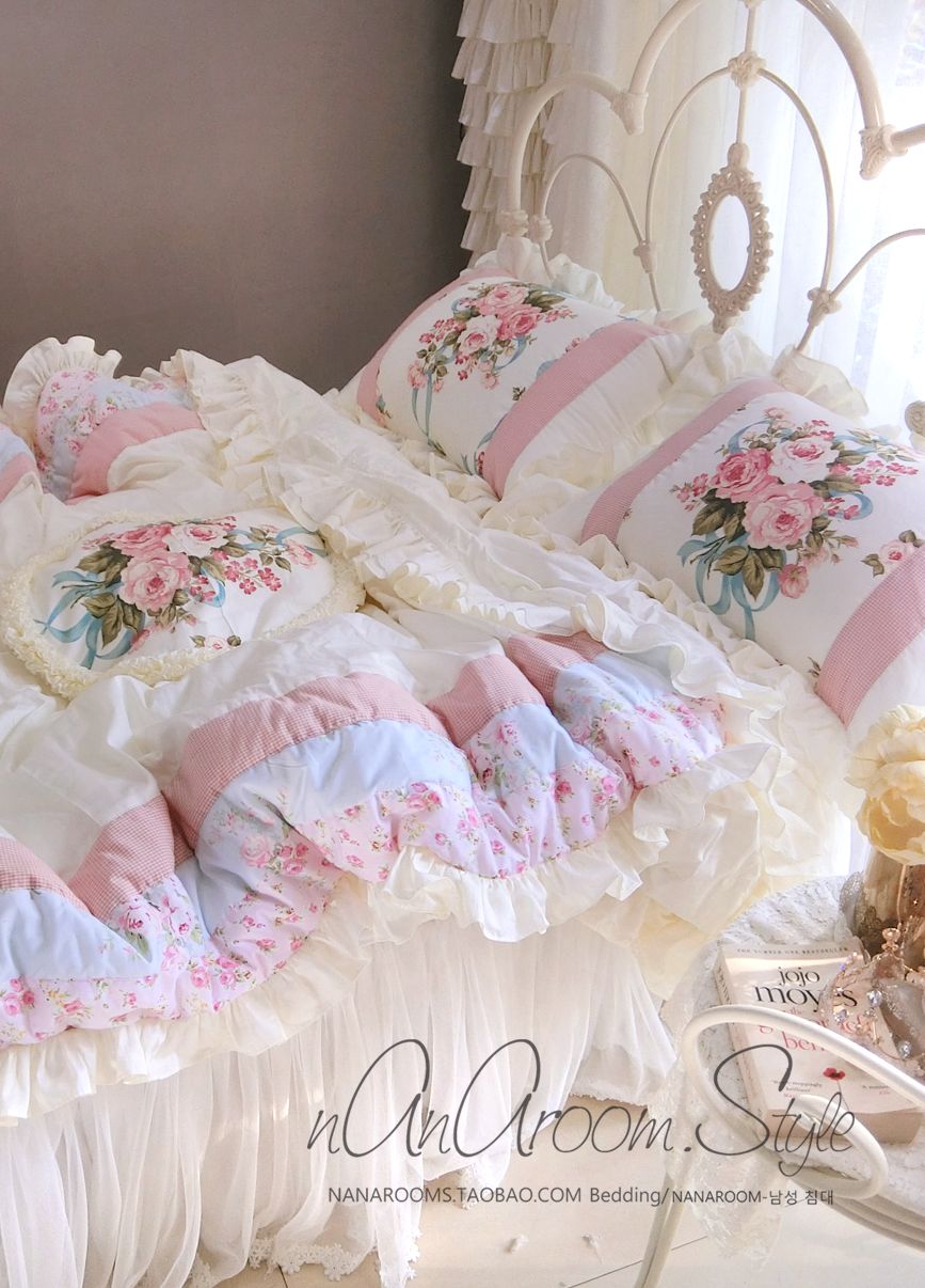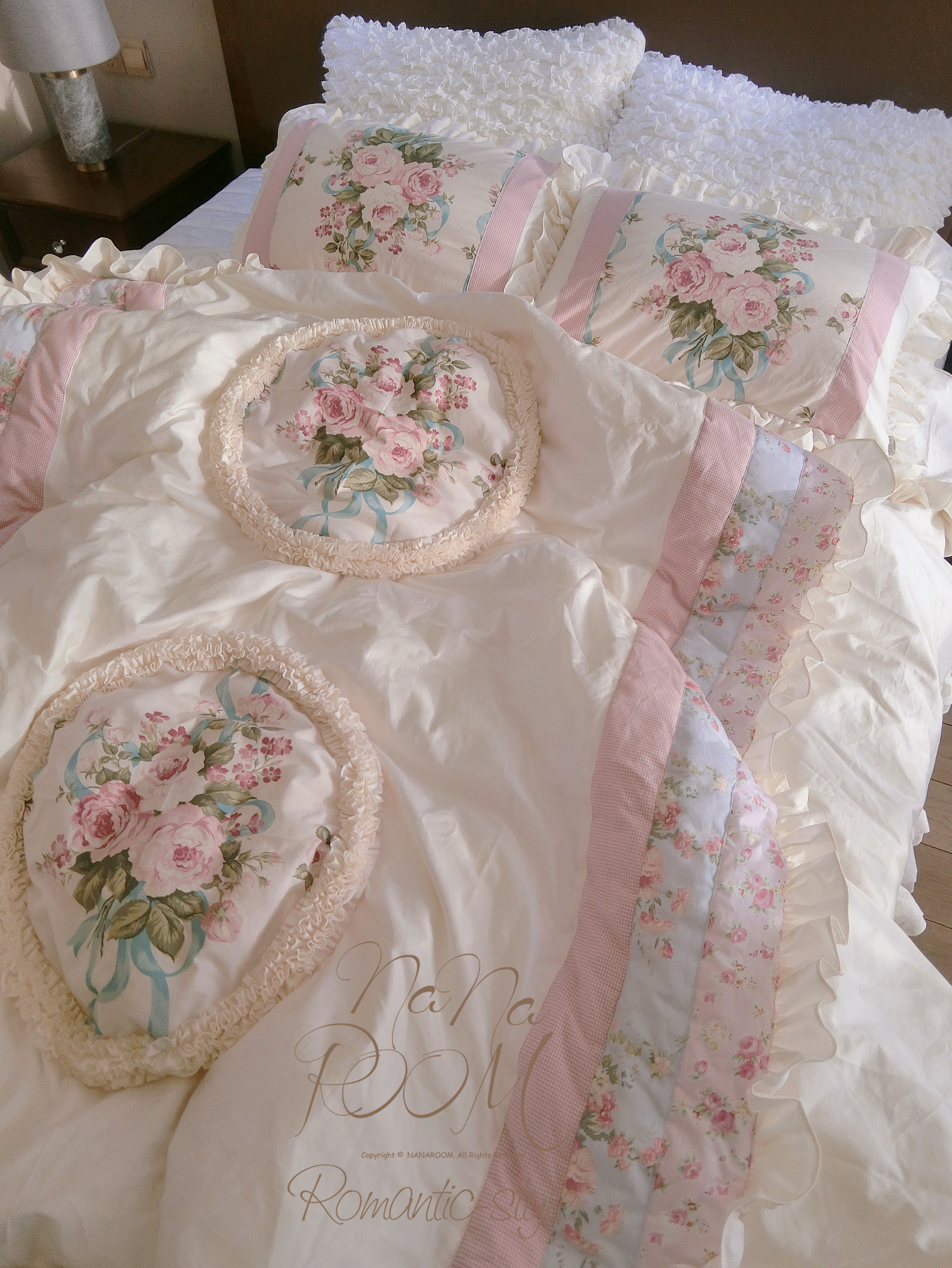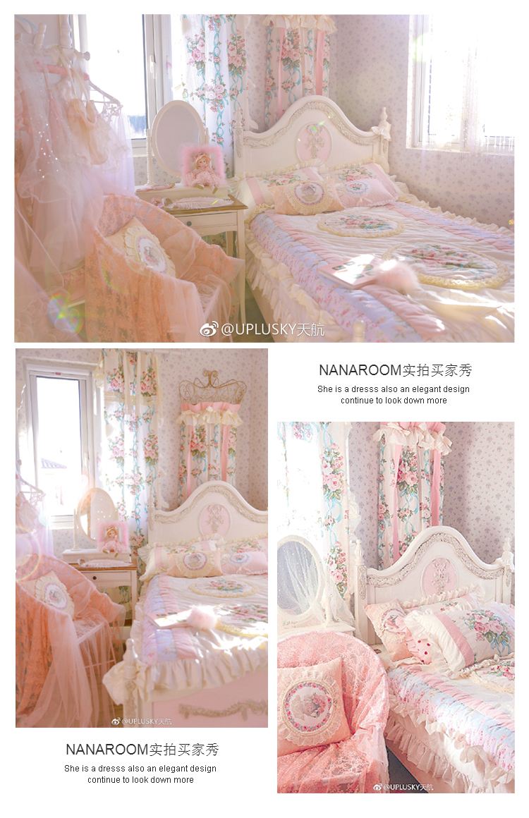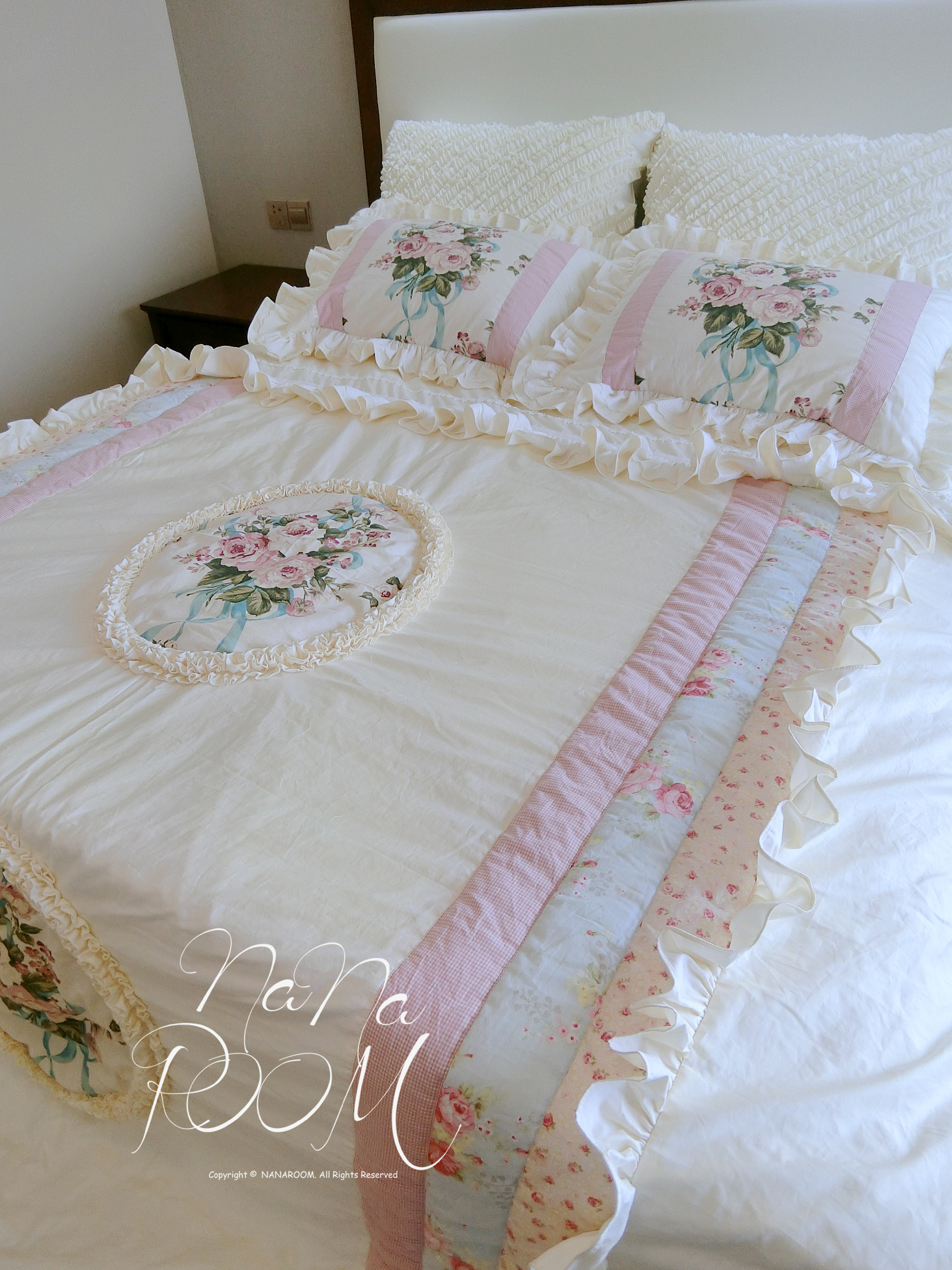 Giường ngủ nhập khẩu, màu be Provence hoa hồng, phong cách công chúa.