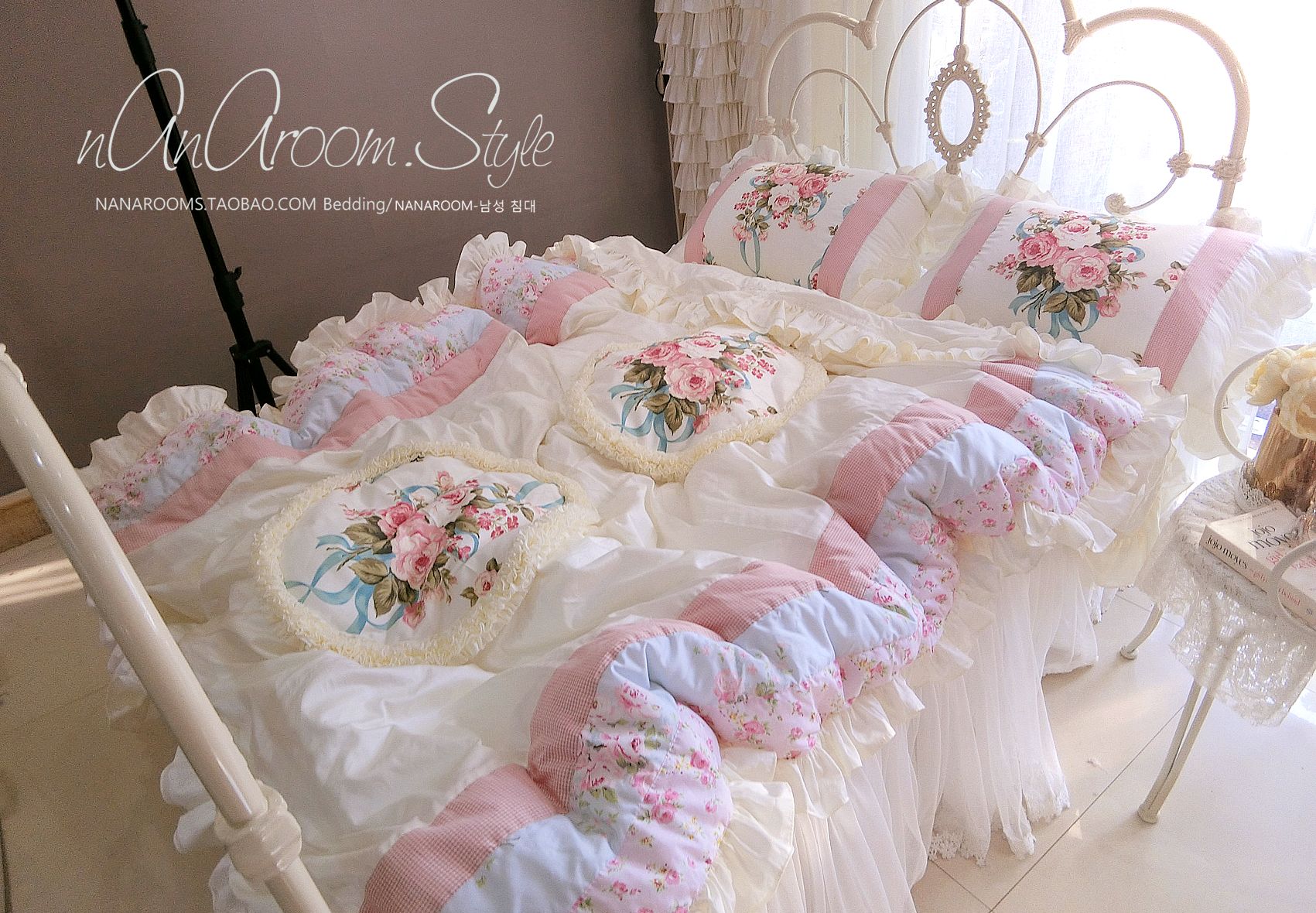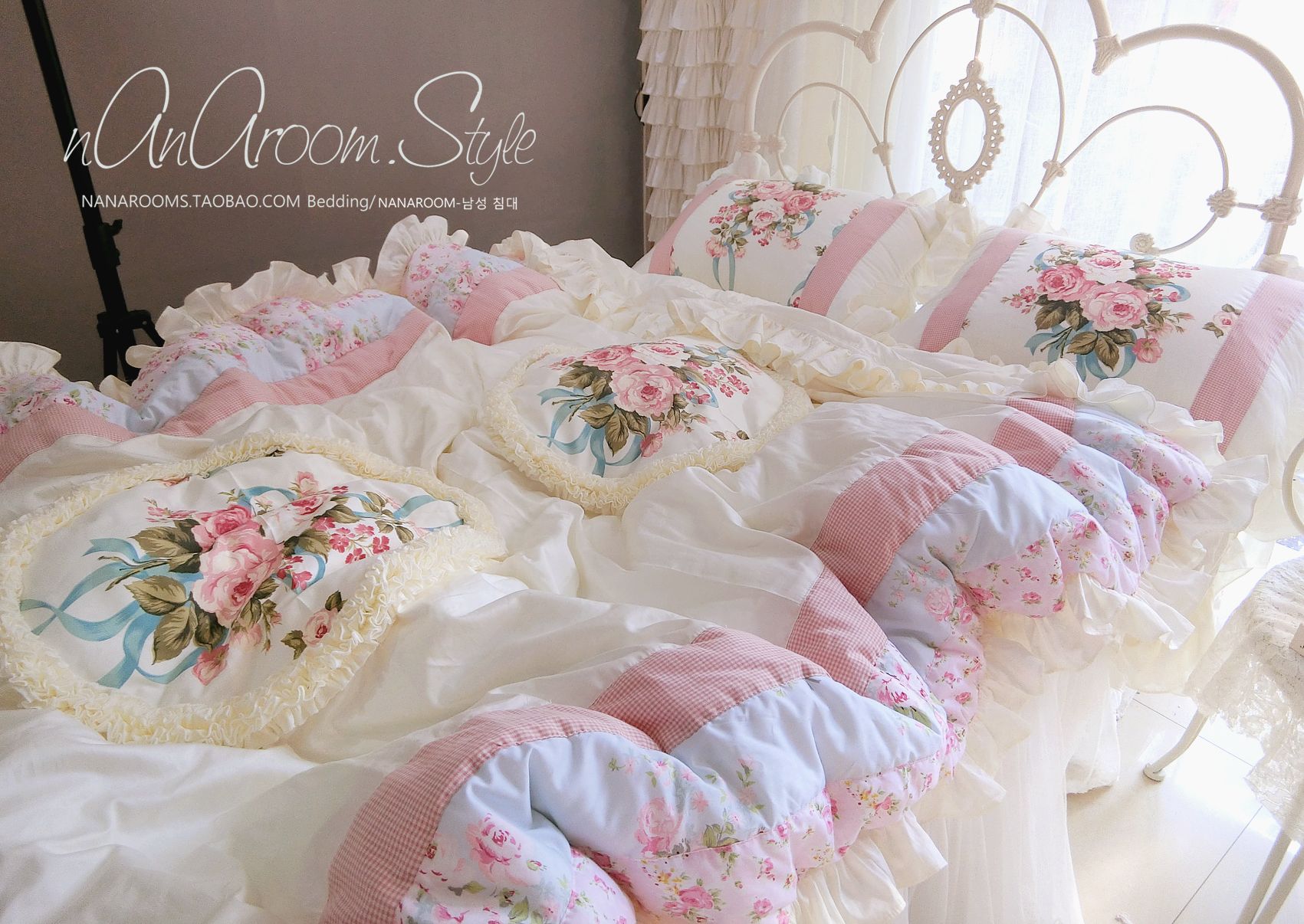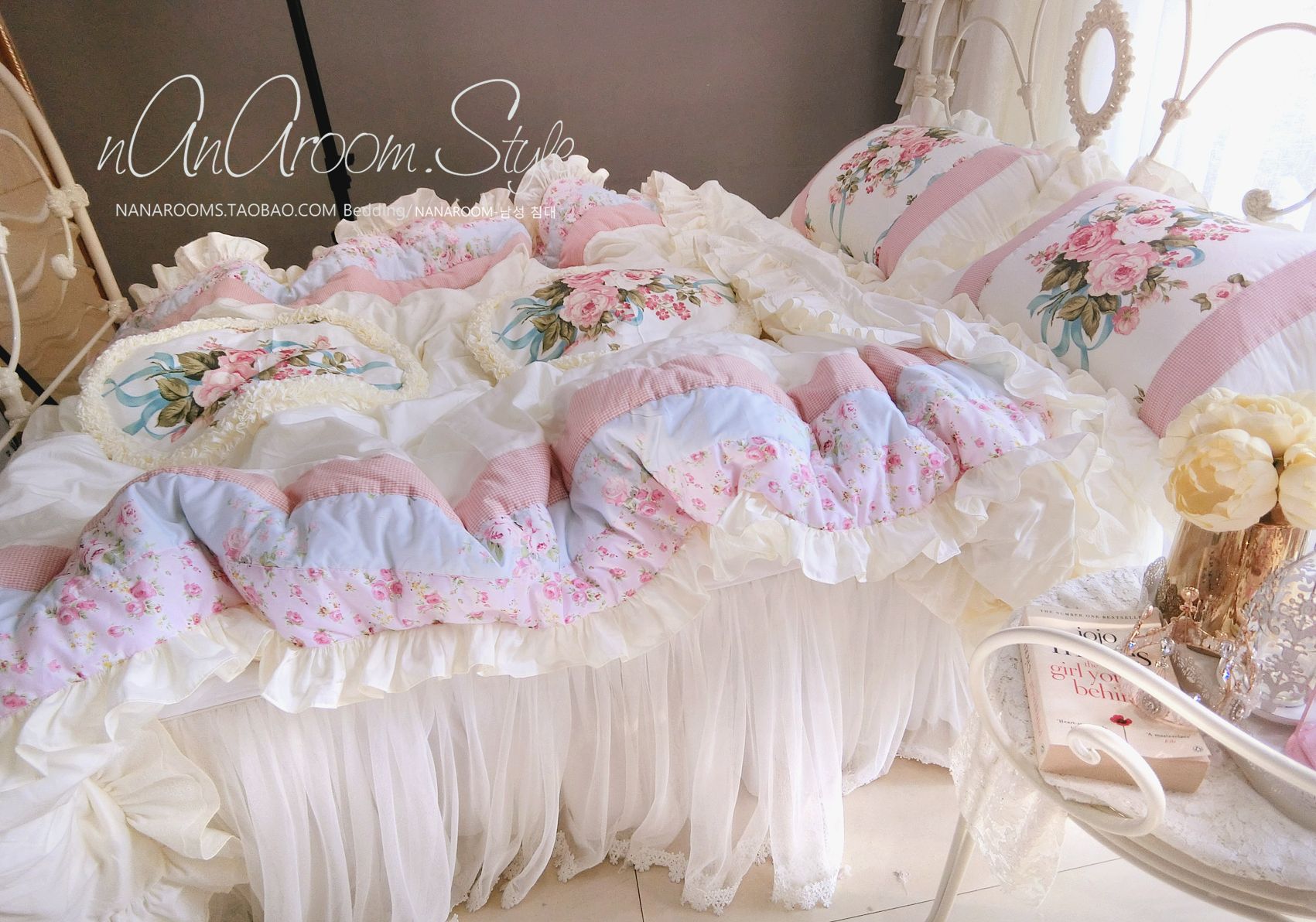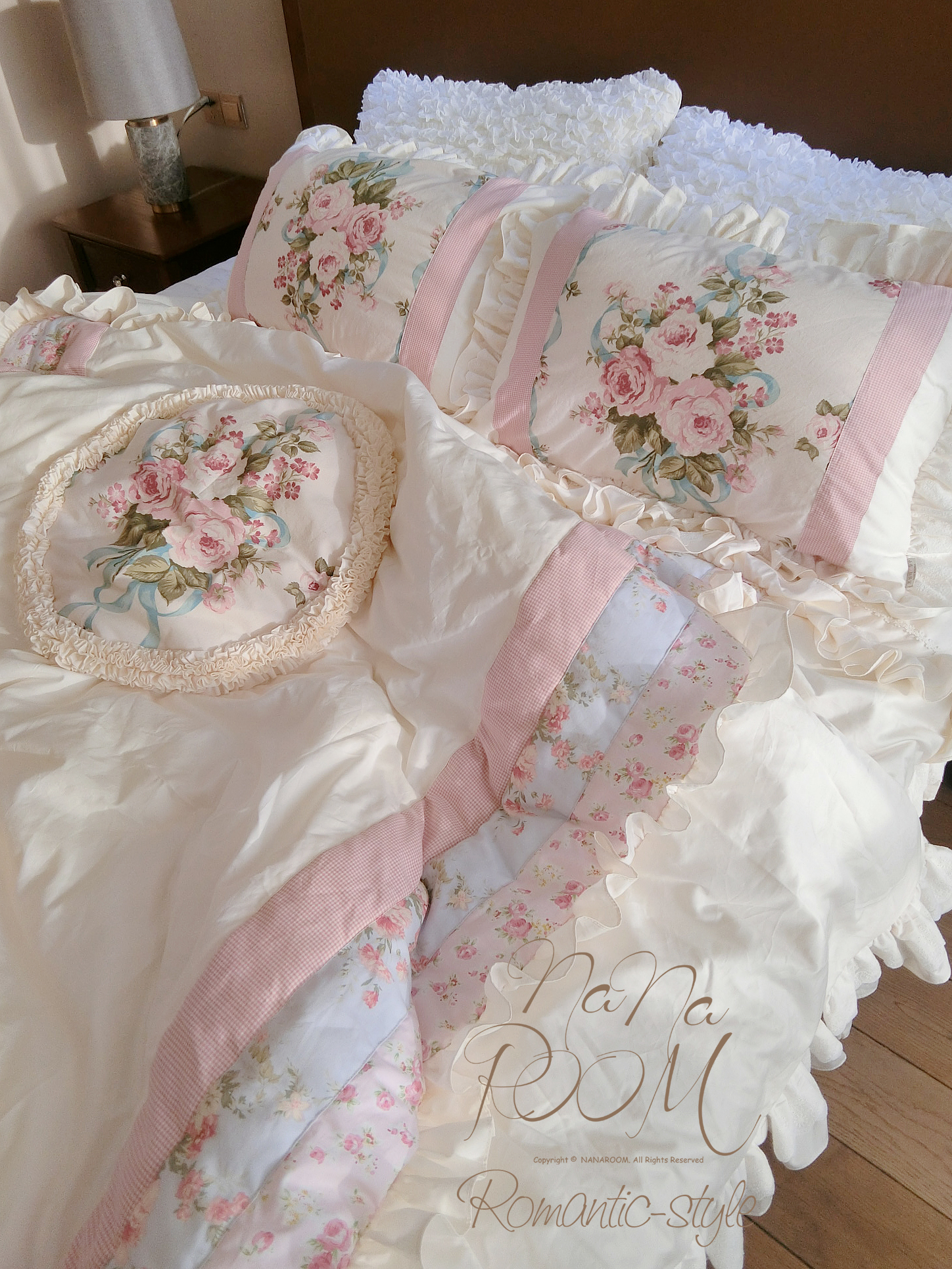 Giường ngủ nhập khẩu, màu be Provence hoa hồng, phong cách công chúa.
