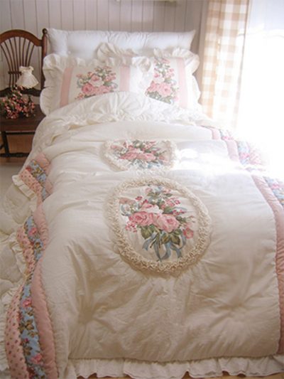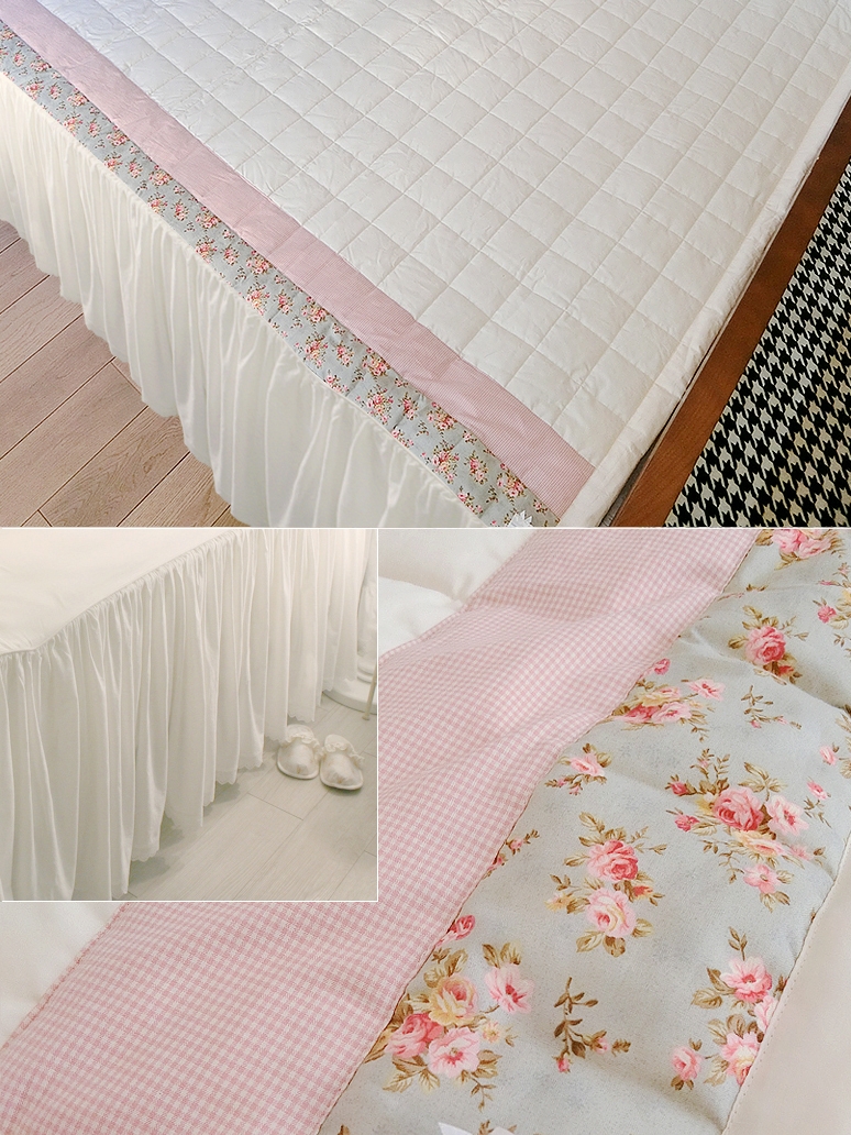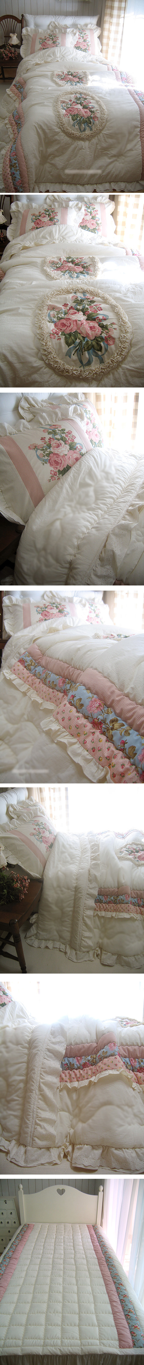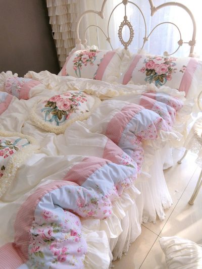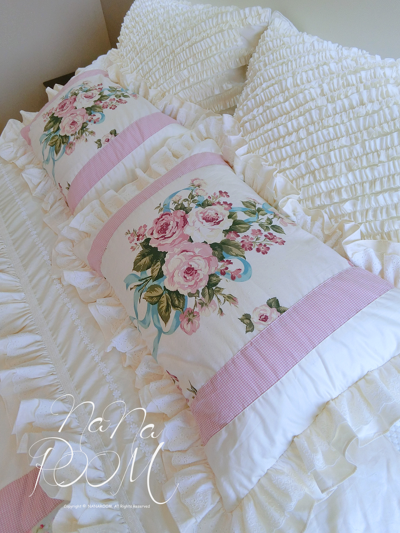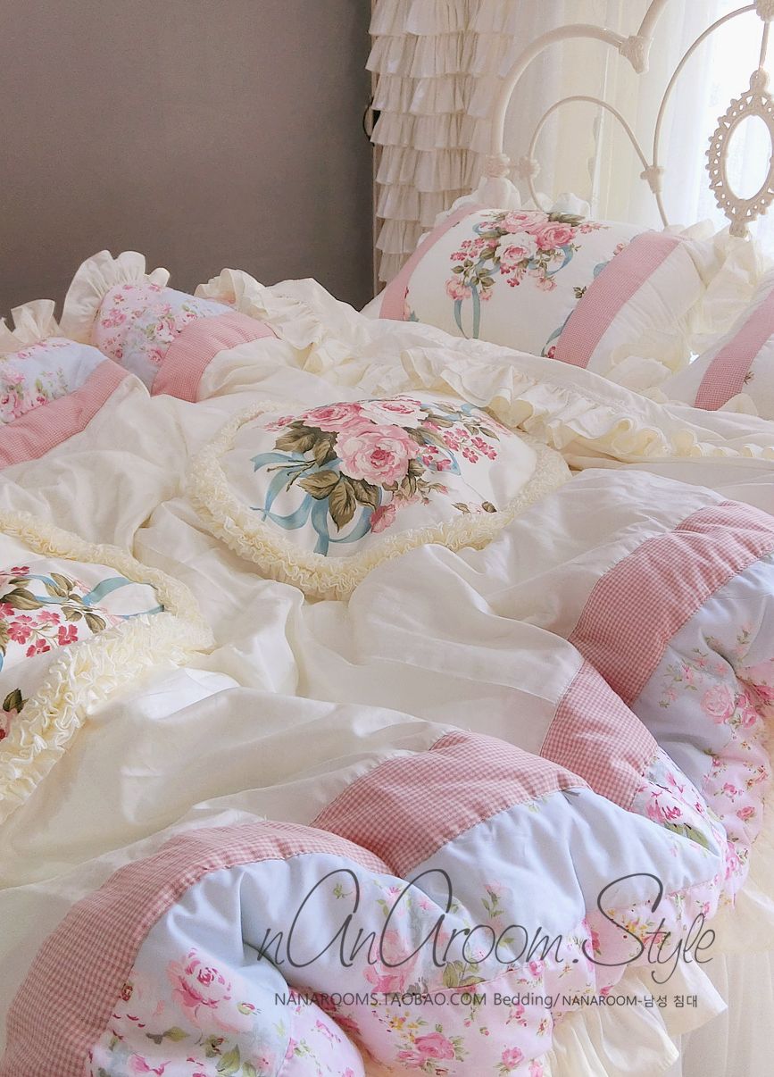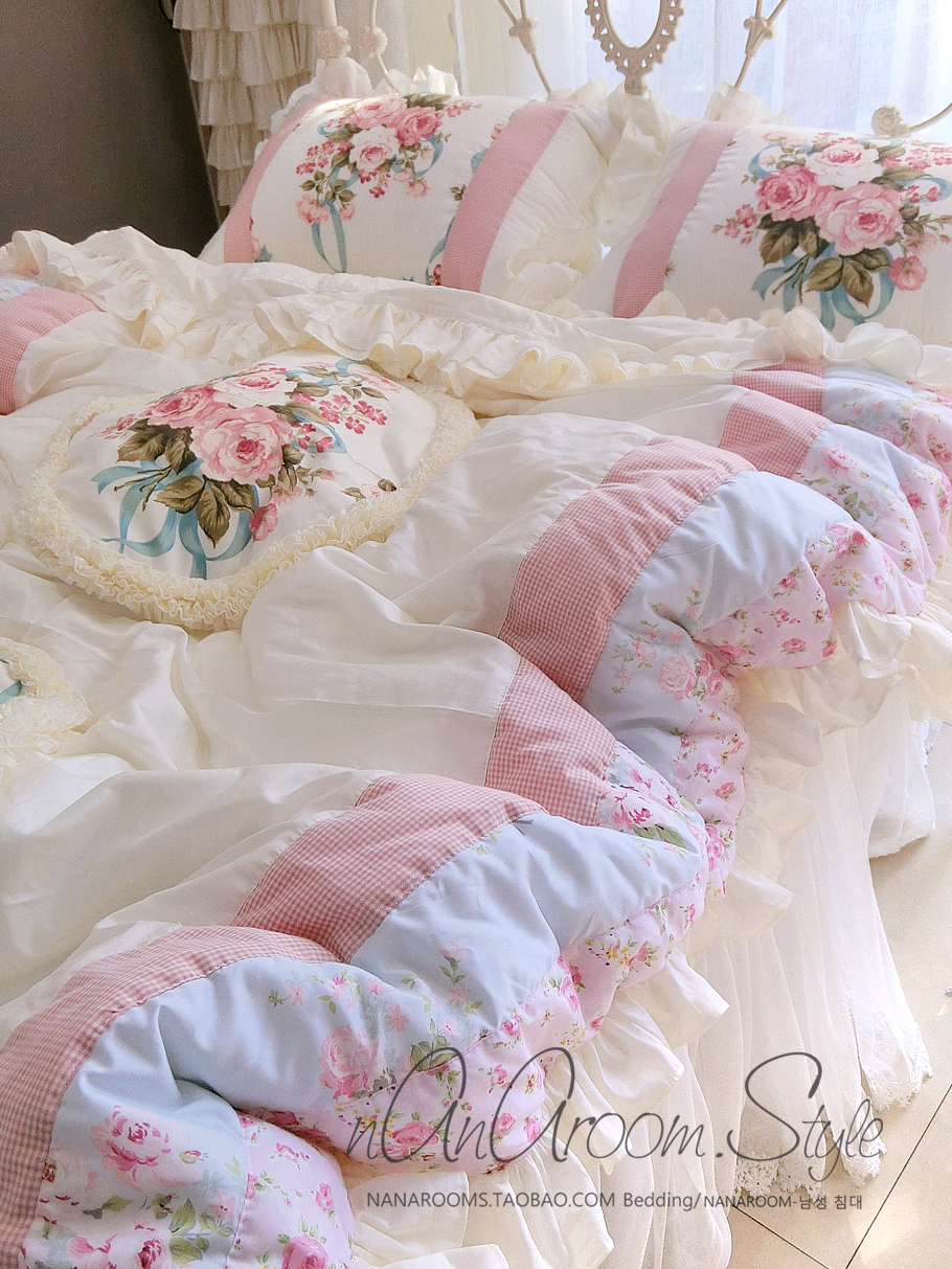 Giường ngủ nhập khẩu, màu be Provence hoa hồng, phong cách công chúa.